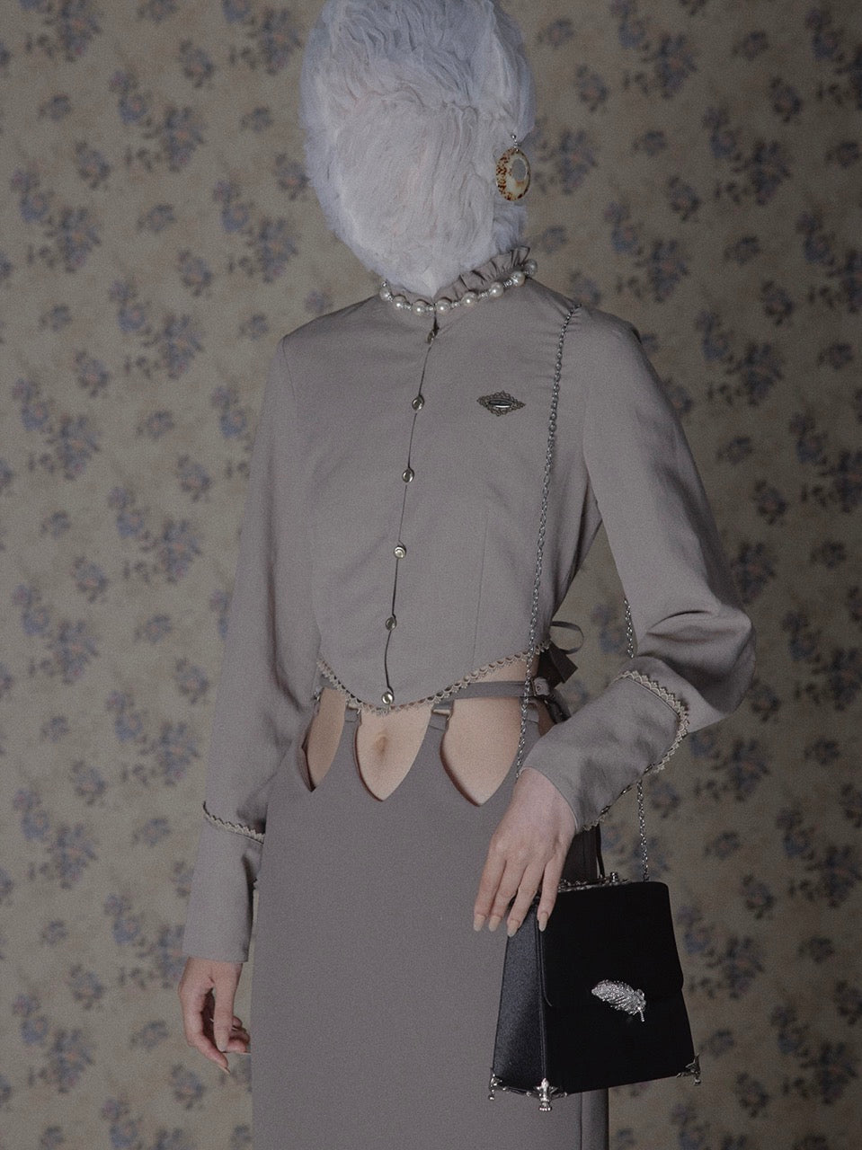 back curtain cropped blouse/ Olive brown