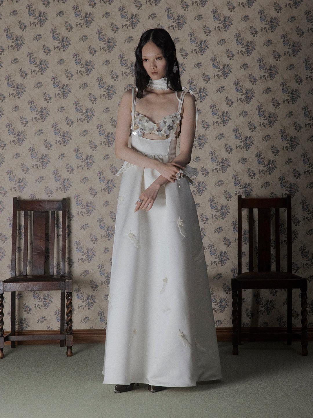 feather chiffon long skirt