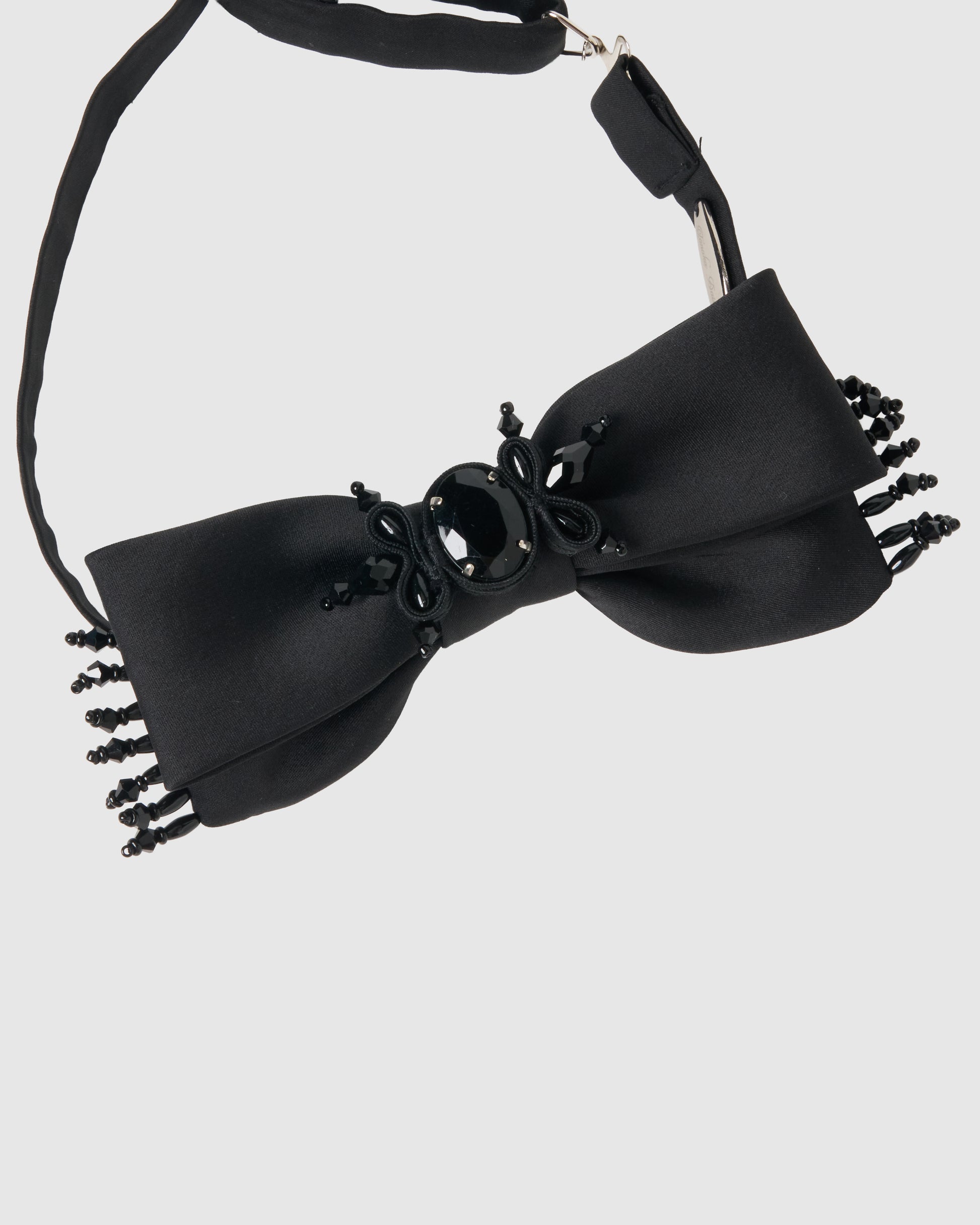 ・サテン素材にブラックのビジューが控えめに煌めくボウタイ
