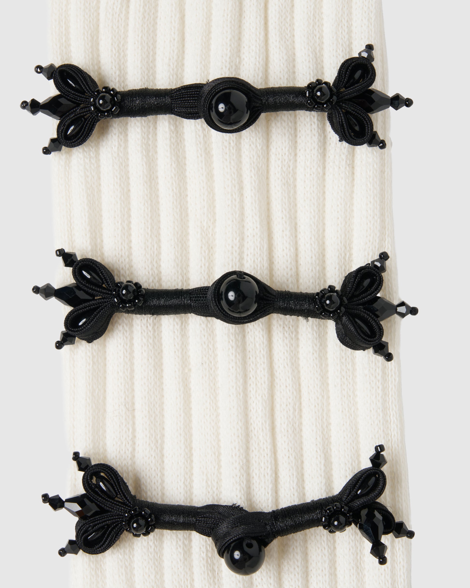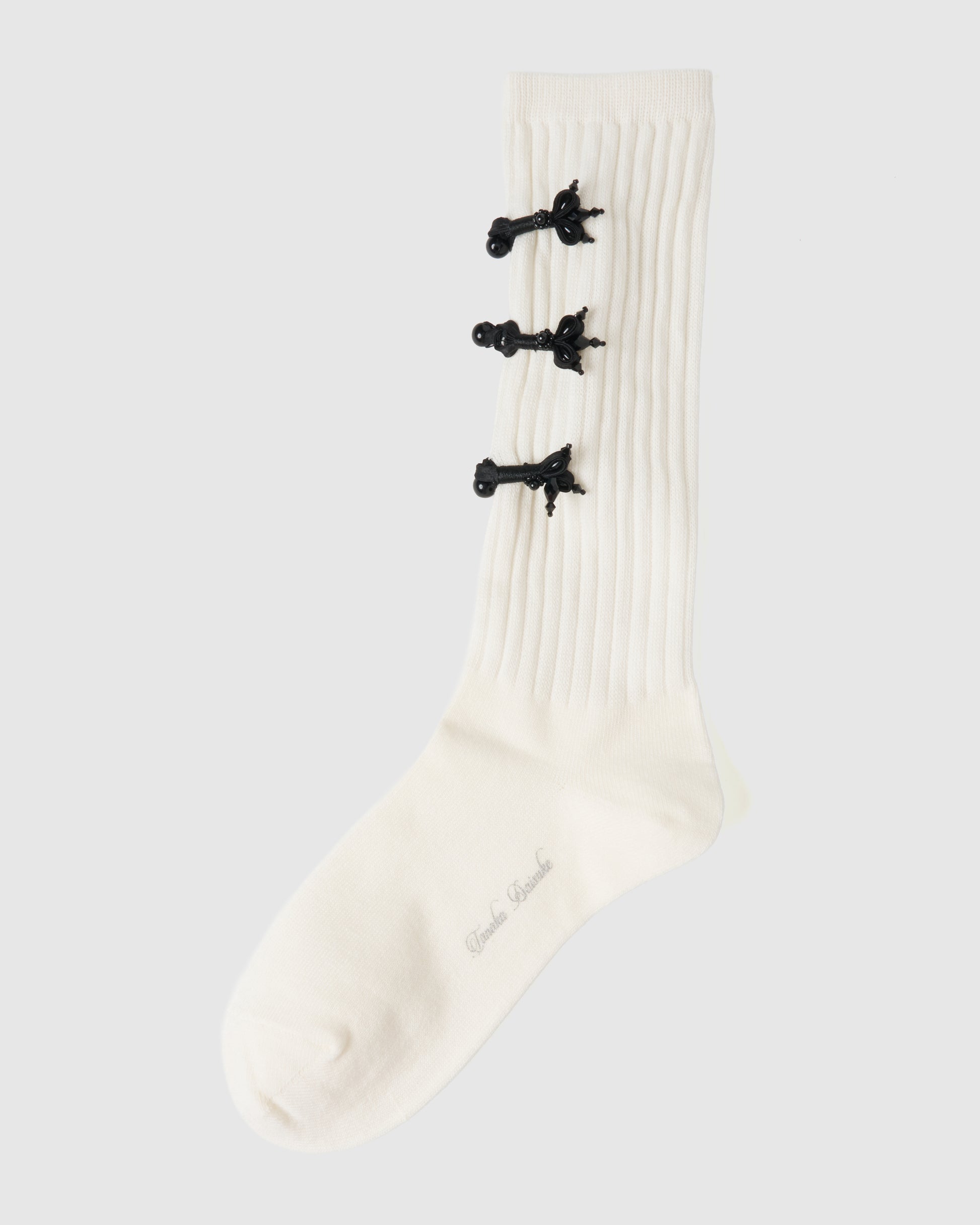 ・タナカダイスケらしいチャイナボタンモチーフをあしらった靴下
