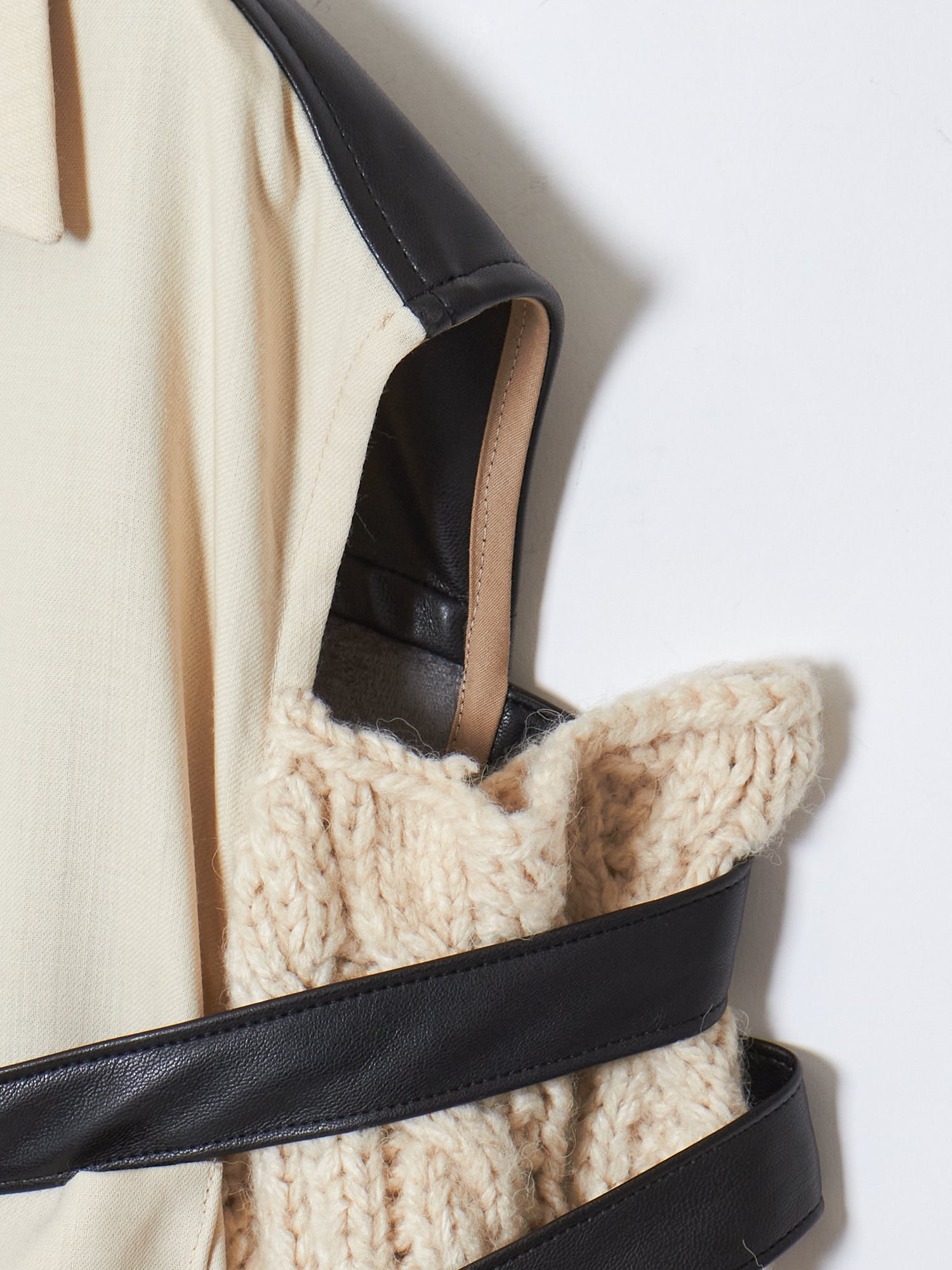 knit sleeve faux leather shirt【Delivery in February 2026】