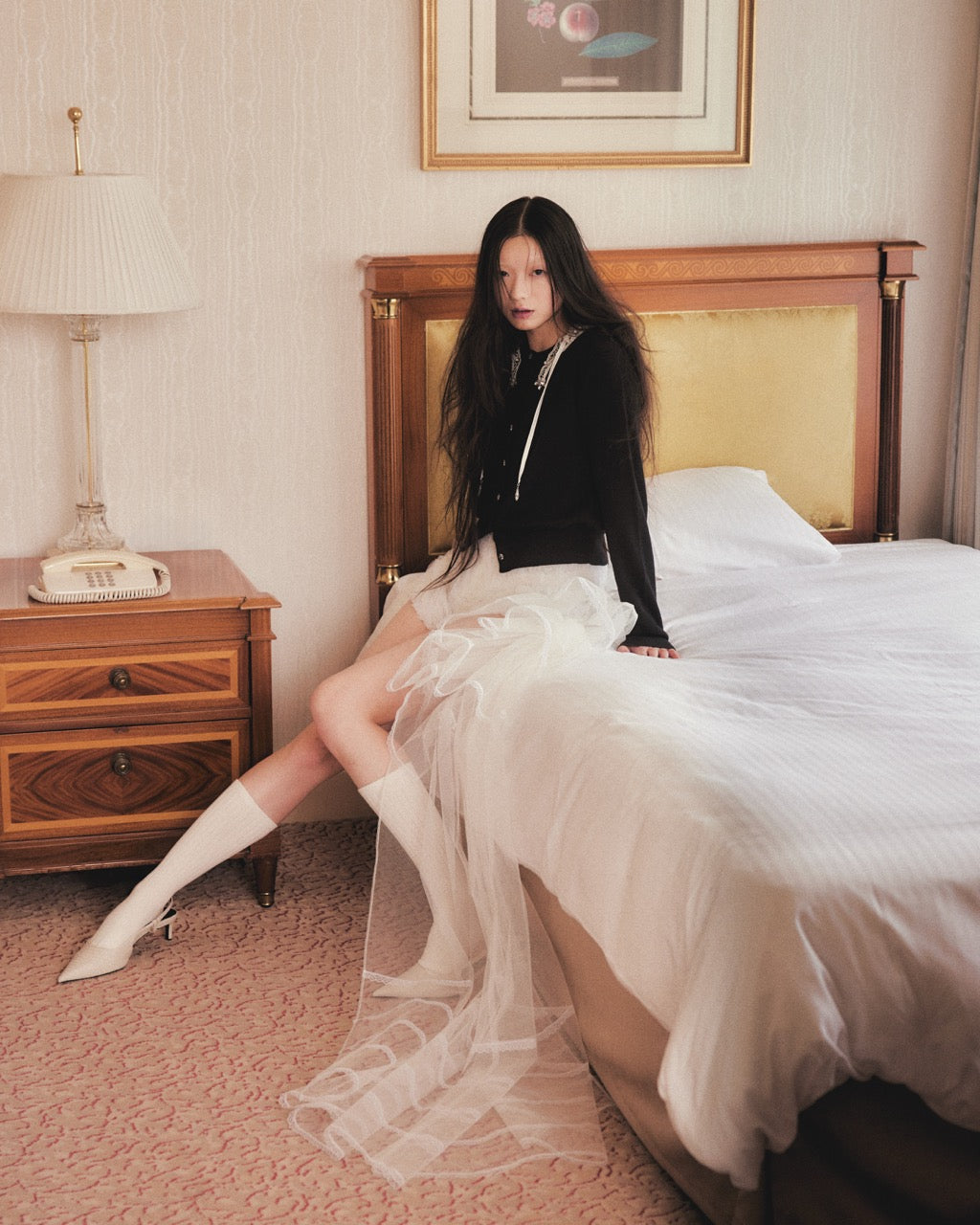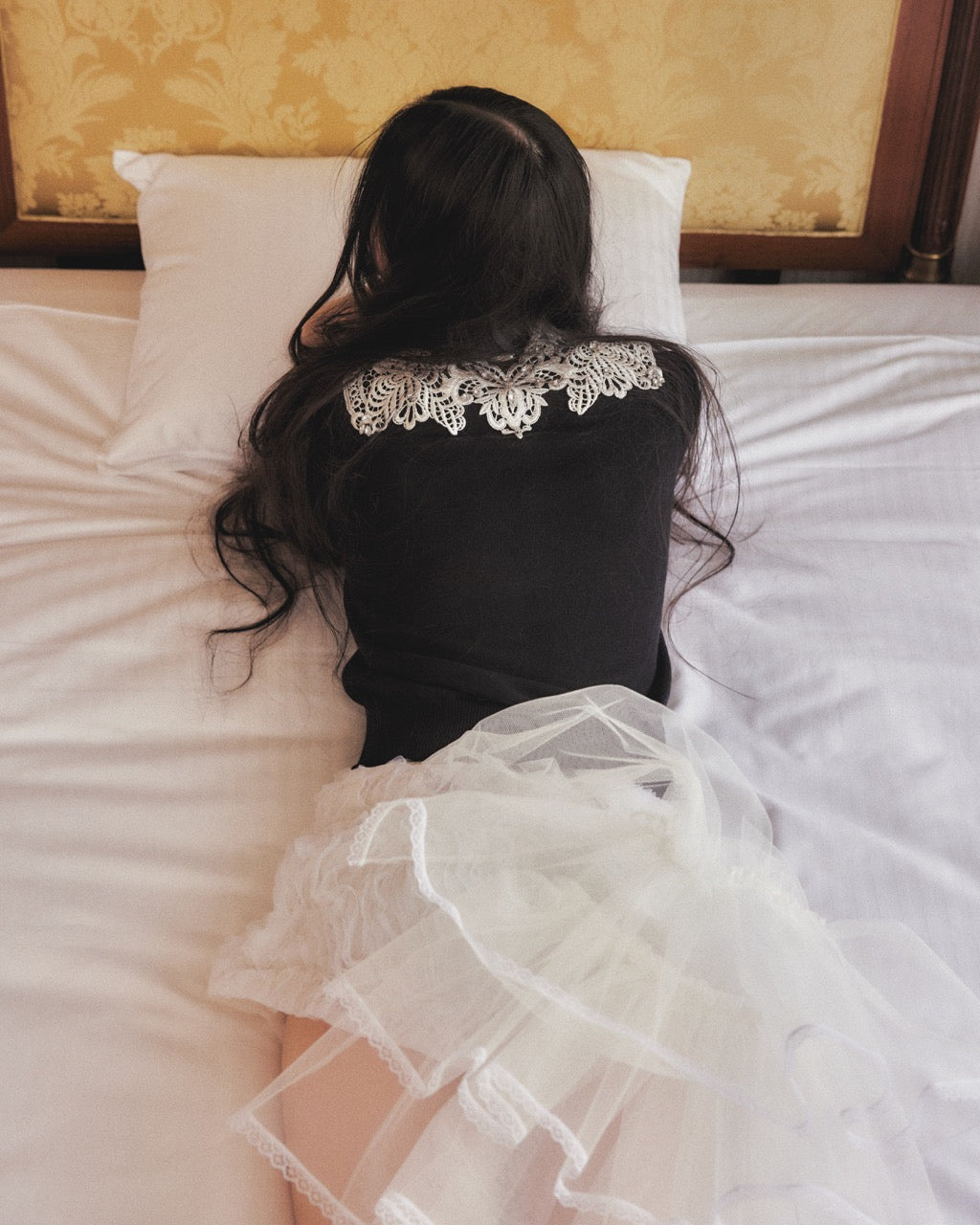 パリの街並みでインスピレーションを得た、繊細な レースをあしらったセーラー襟のカーディガン。