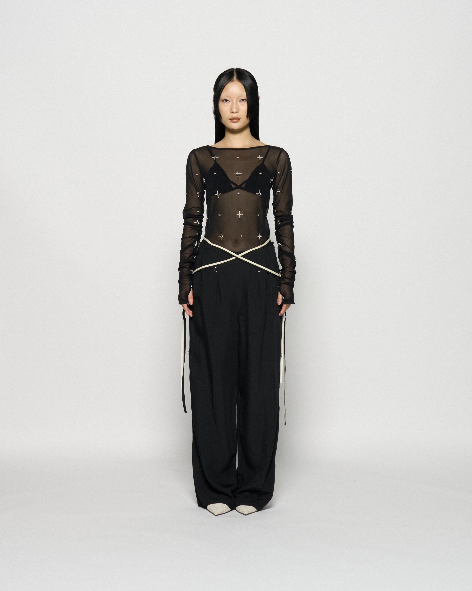 multi way ribbon tape pants Black【Delivery in March 2026】