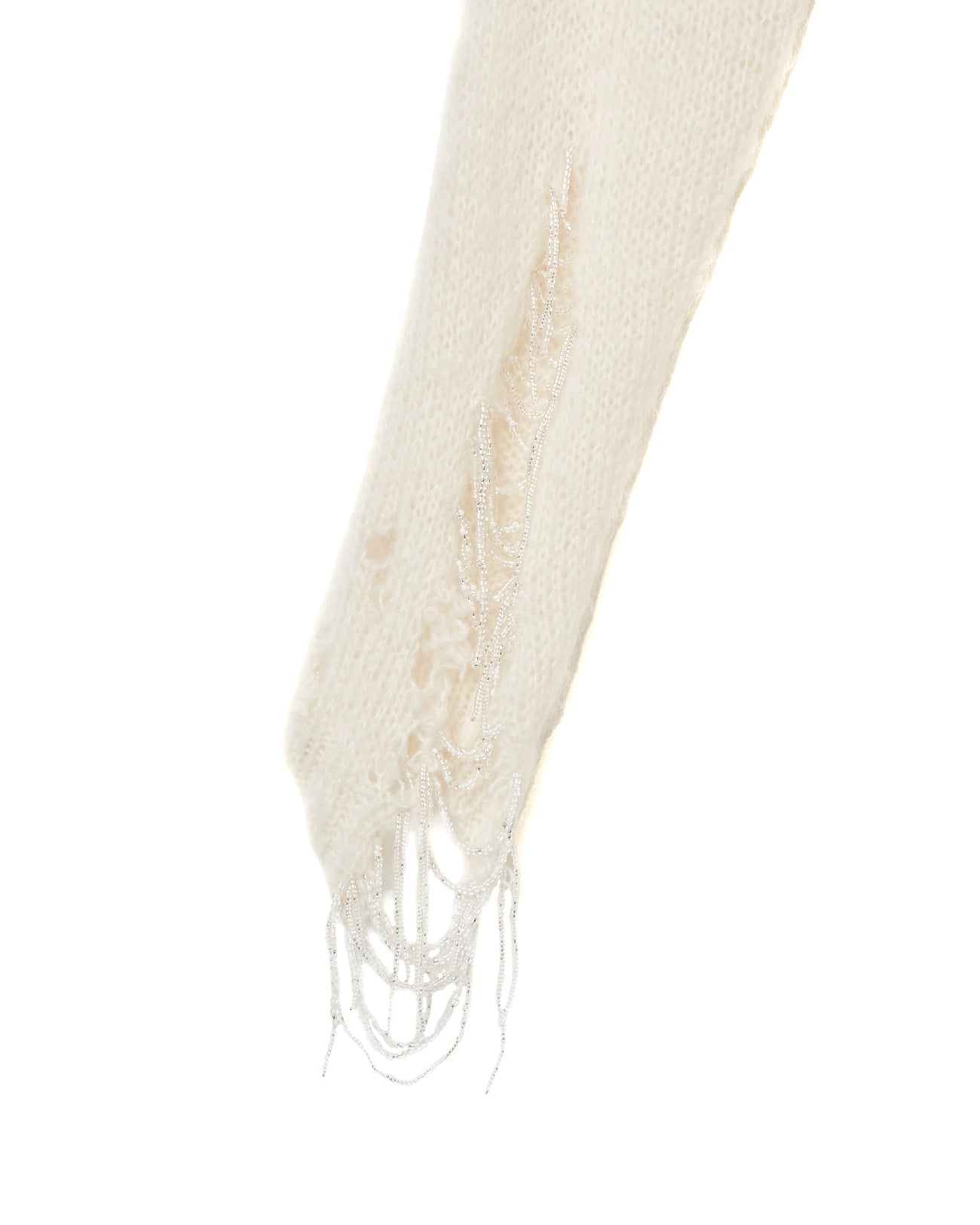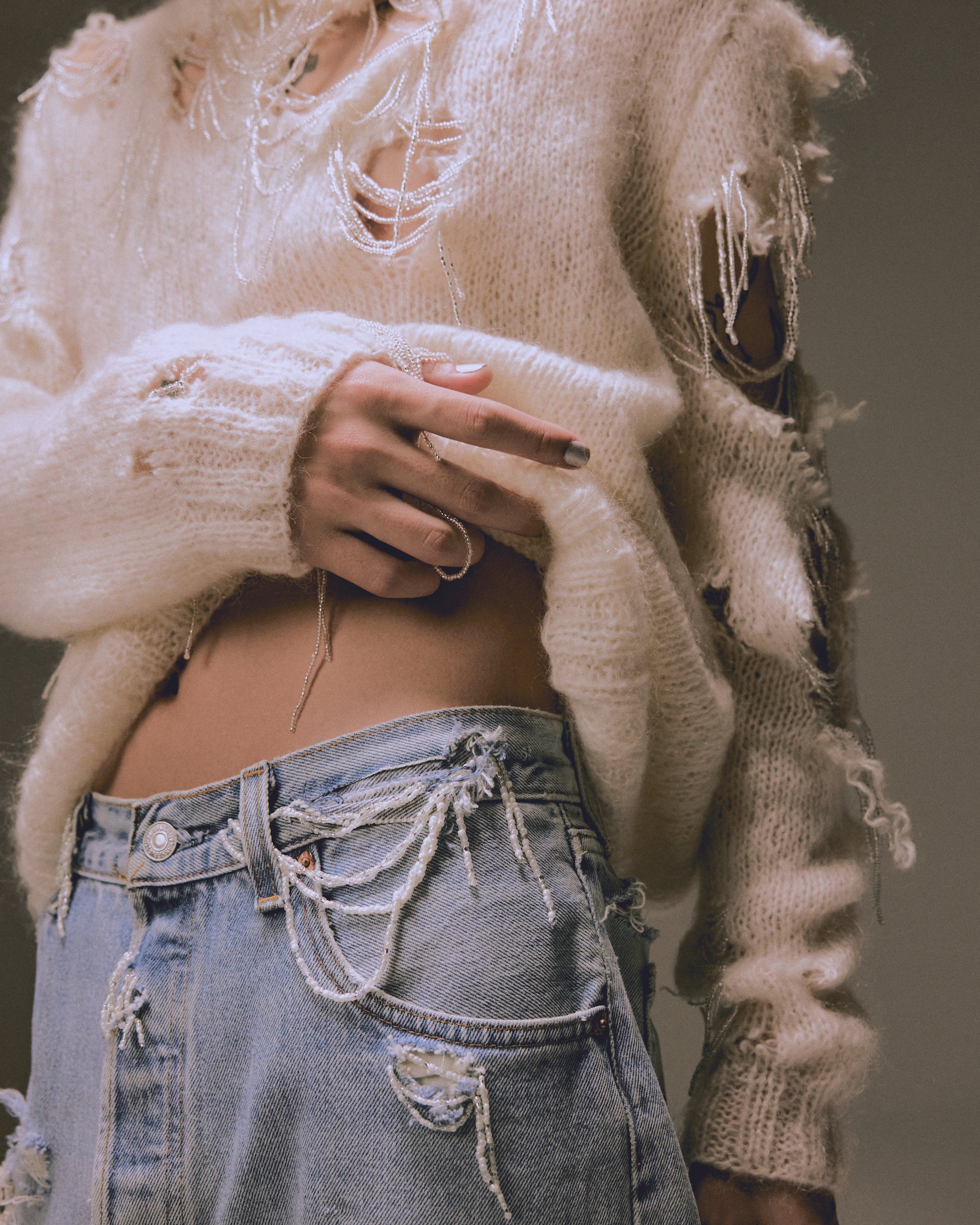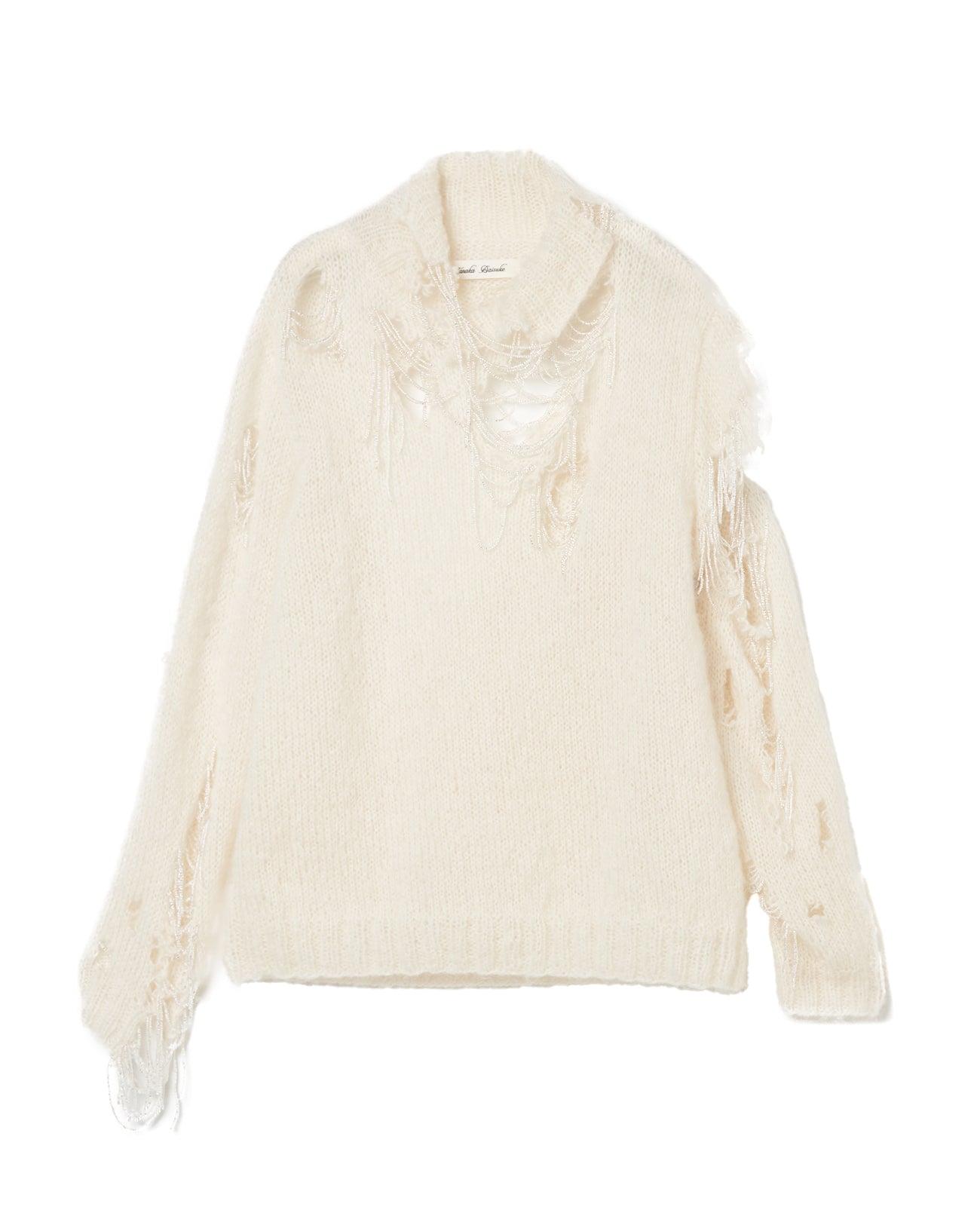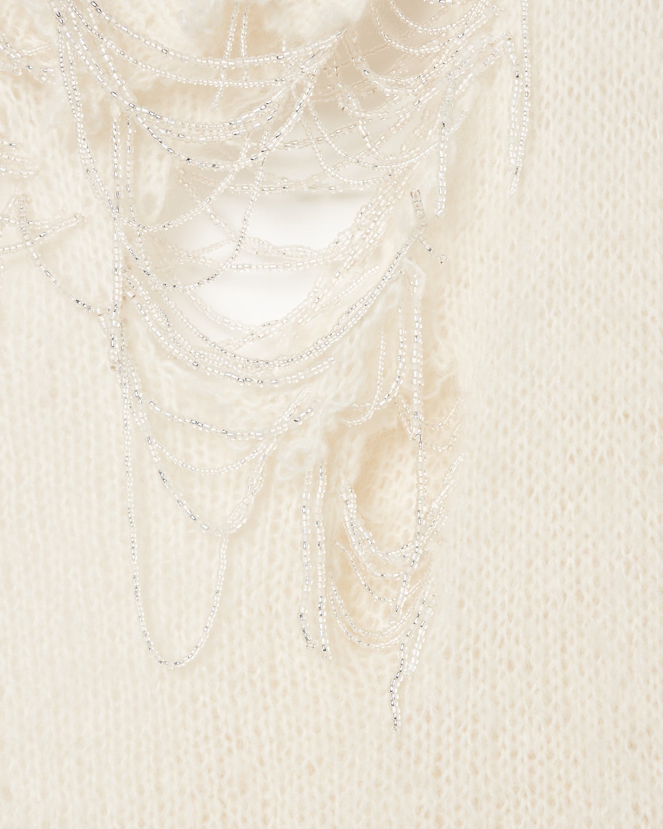 ・柔らかな風合いのモヘアニットにダメージを加え、ビジューのフリンジを紡ぎました。