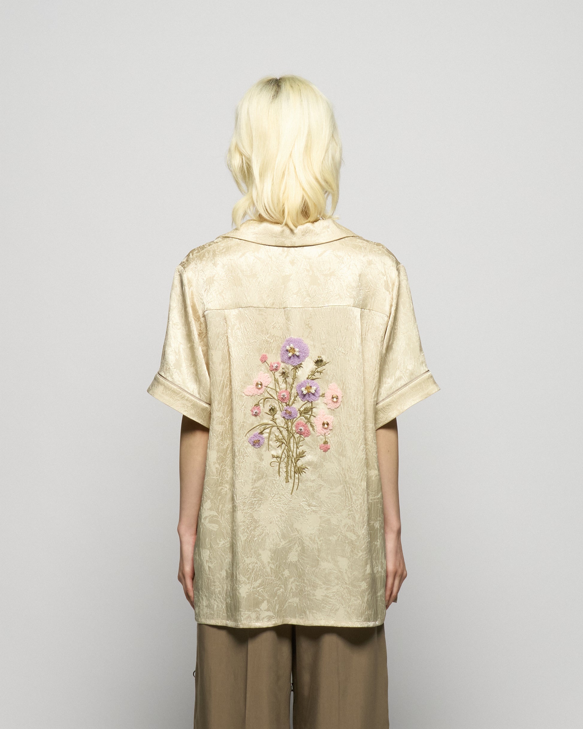 Wild bloom beads embroidery open collar shirt Champagne beige【Delivery in March 2026】