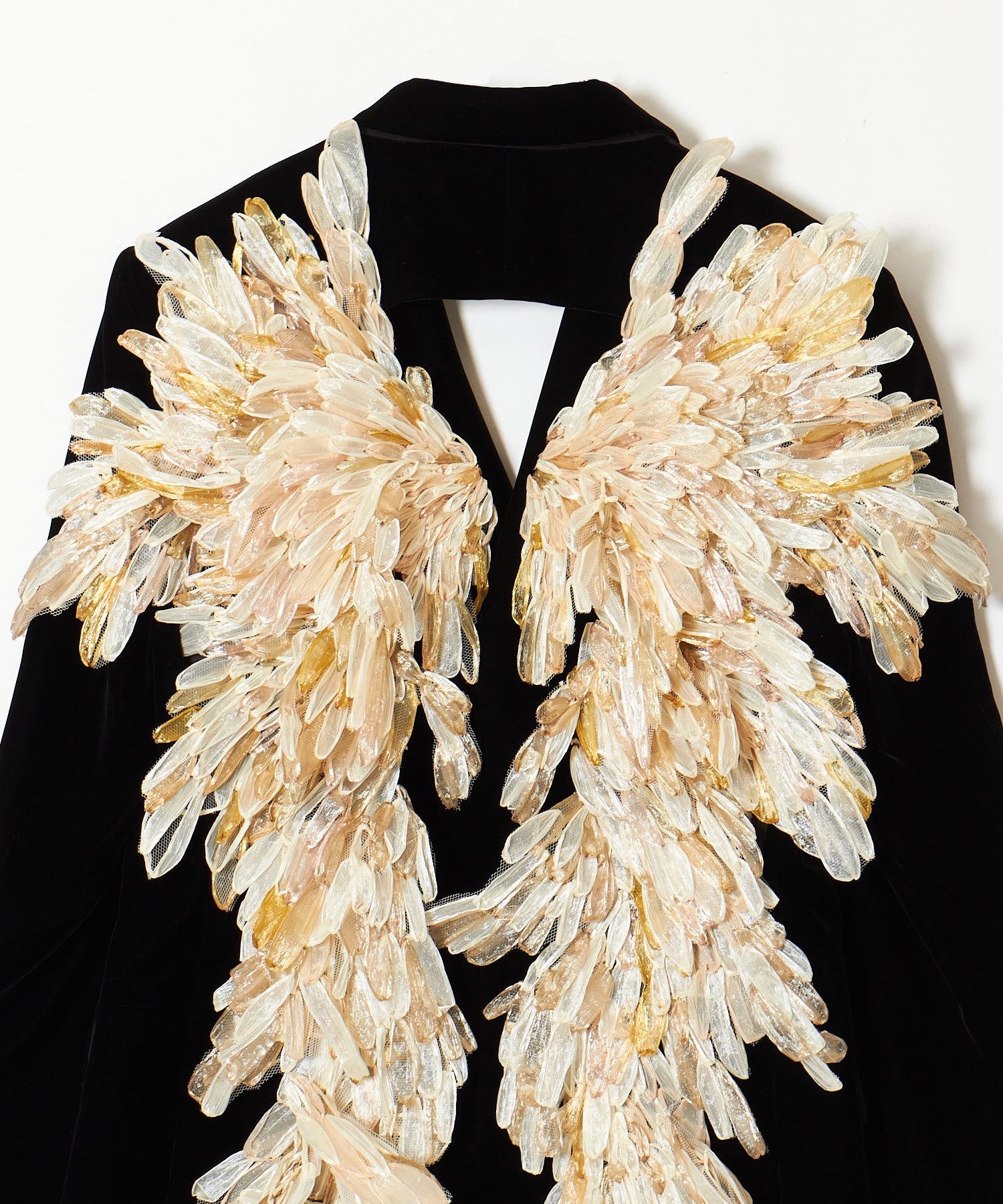 ・背中に大きな翼のモチーフが付きます。写真1枚目は後身です