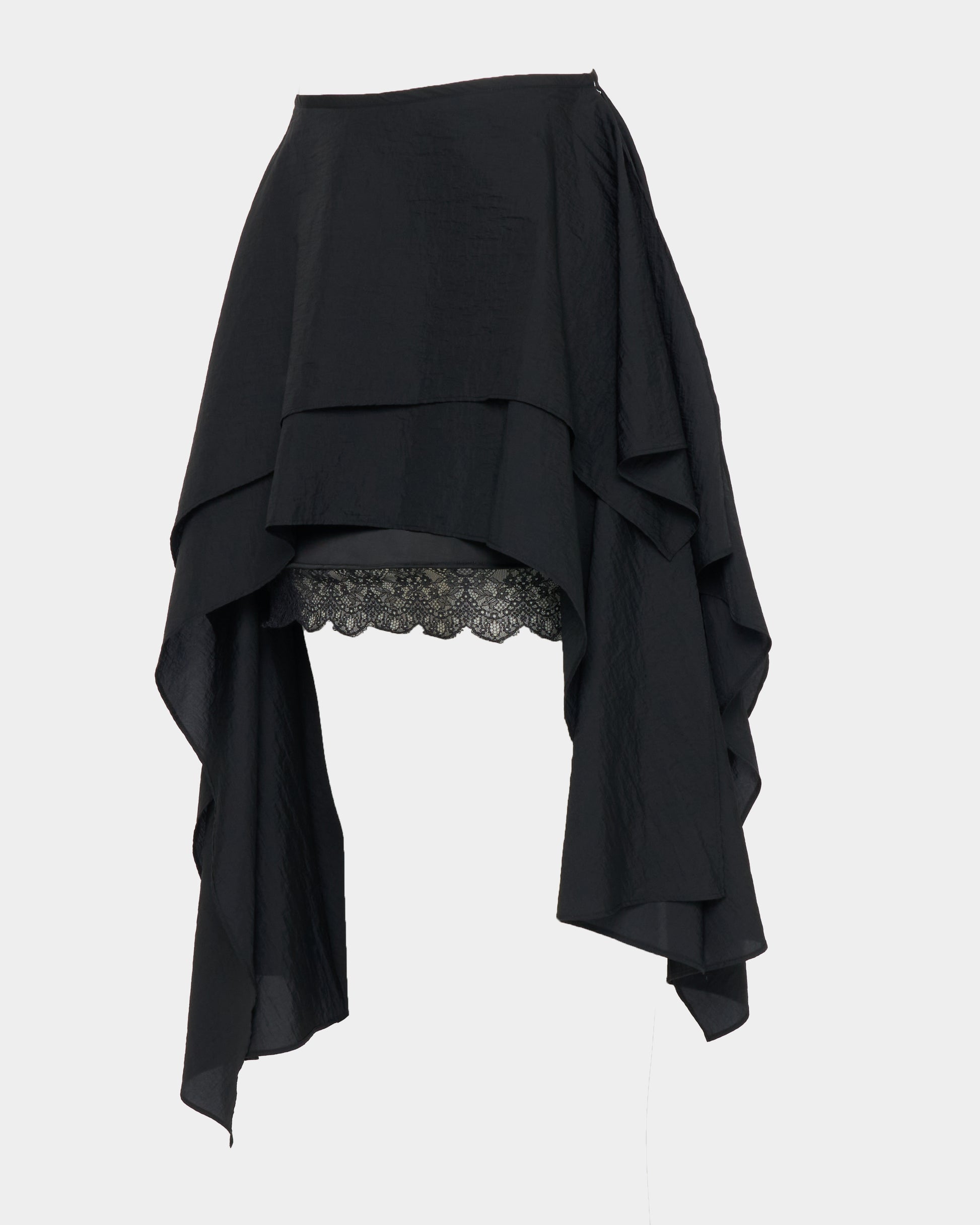 asymmetry hem layered skirt Black【Delivery in February 2026】