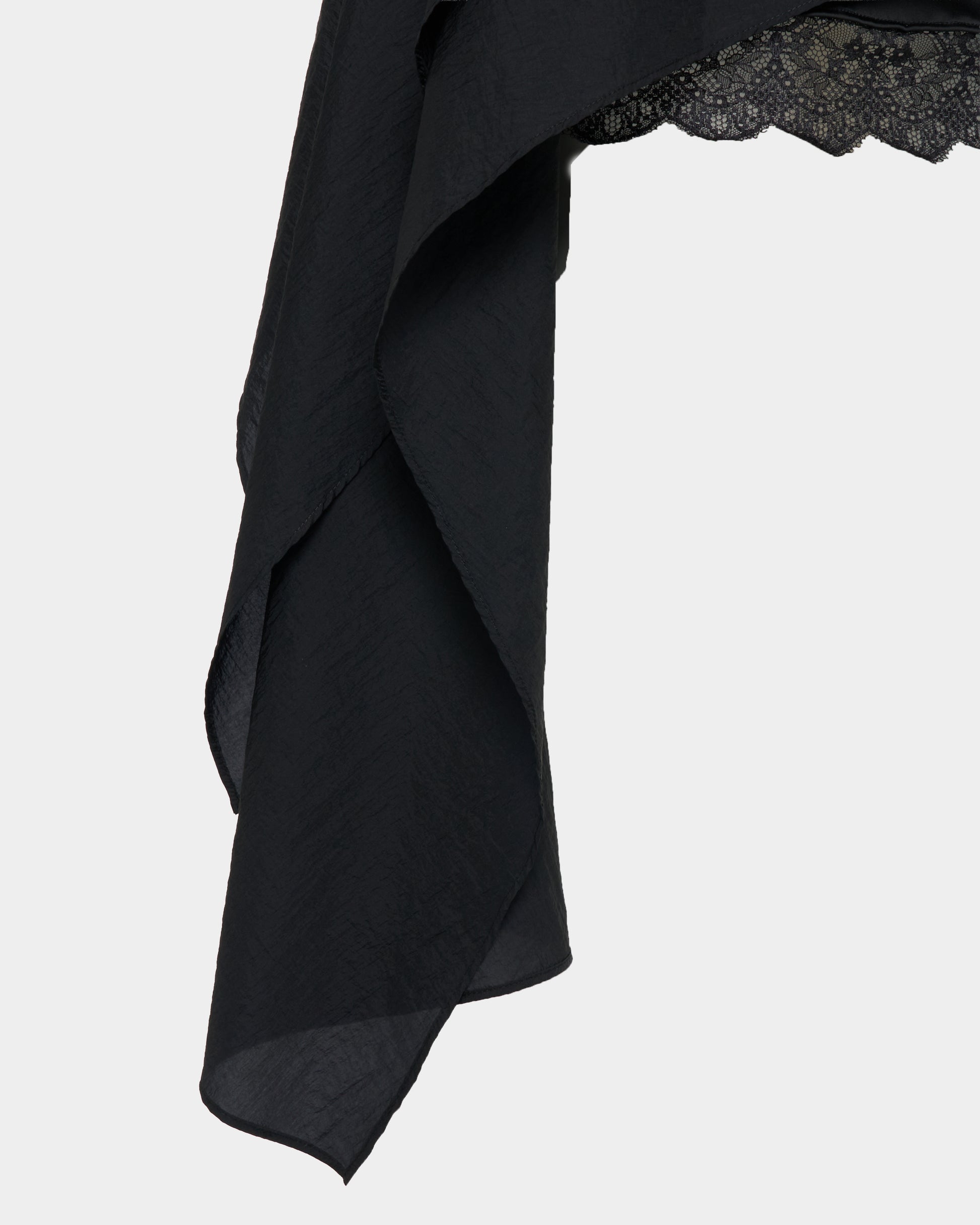 ・ミニスカートの土台にシアータフタを重ね、ランダムなヘムラインに仕上げました。