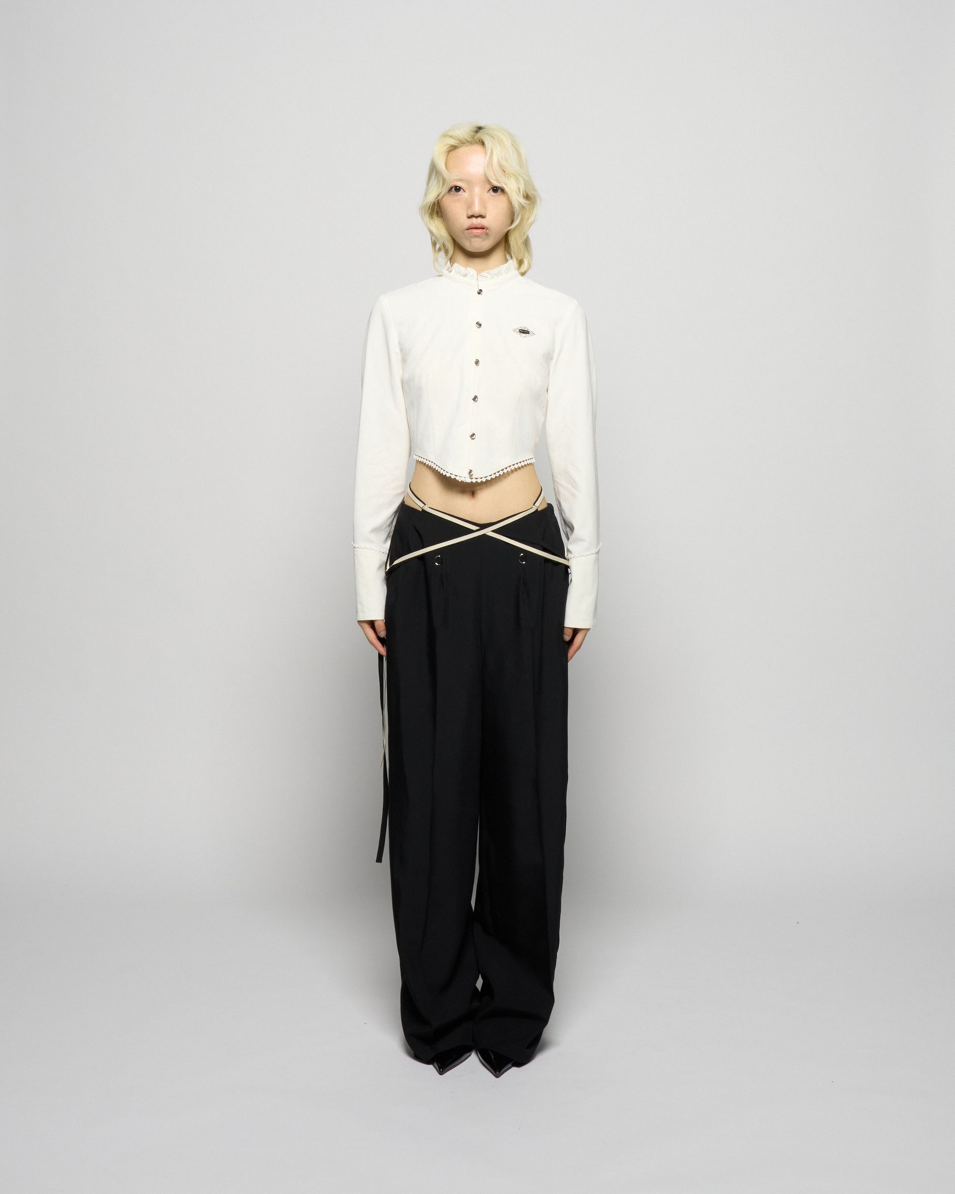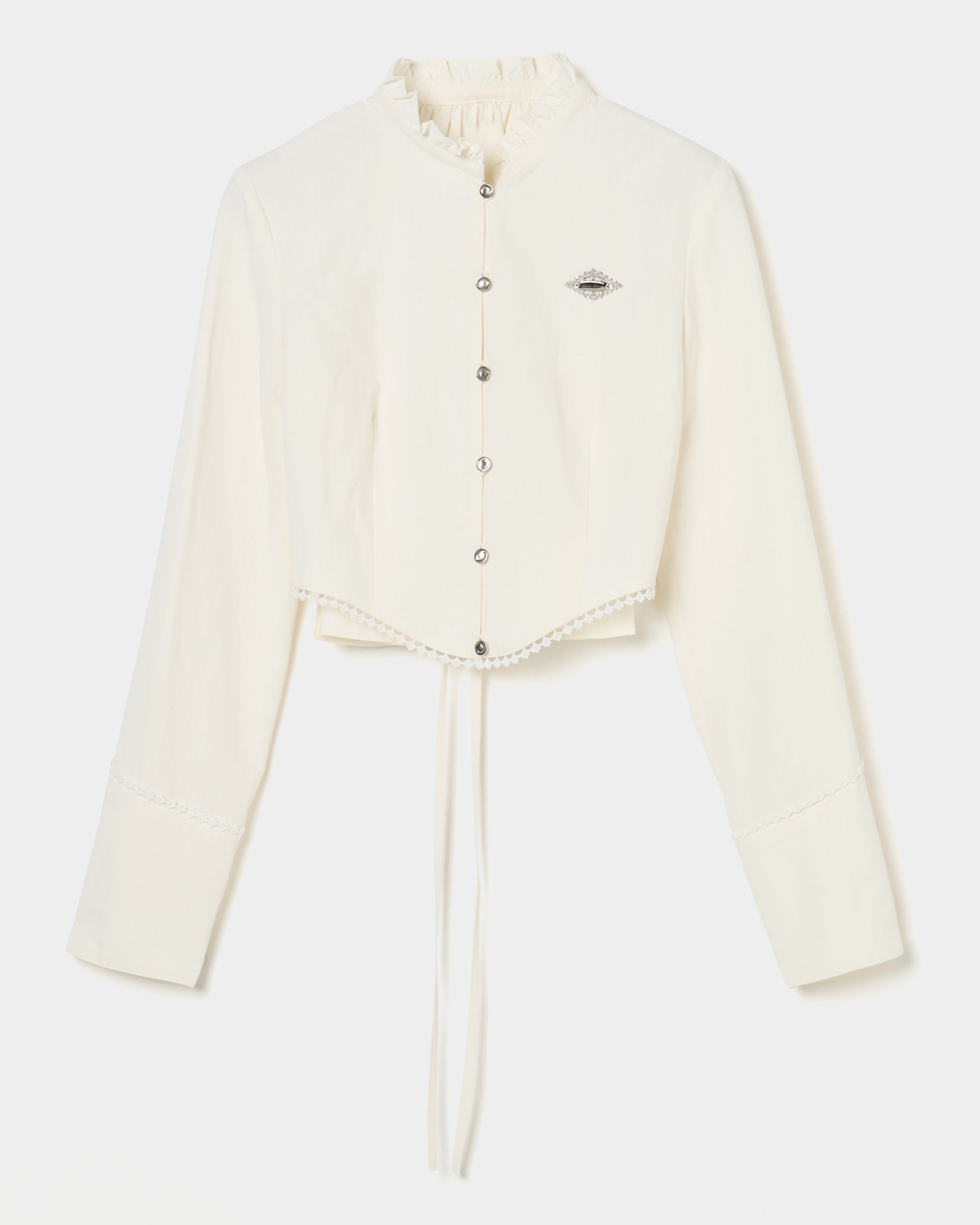 back curtain cropped blouse Off white【Delivery in January 2026】