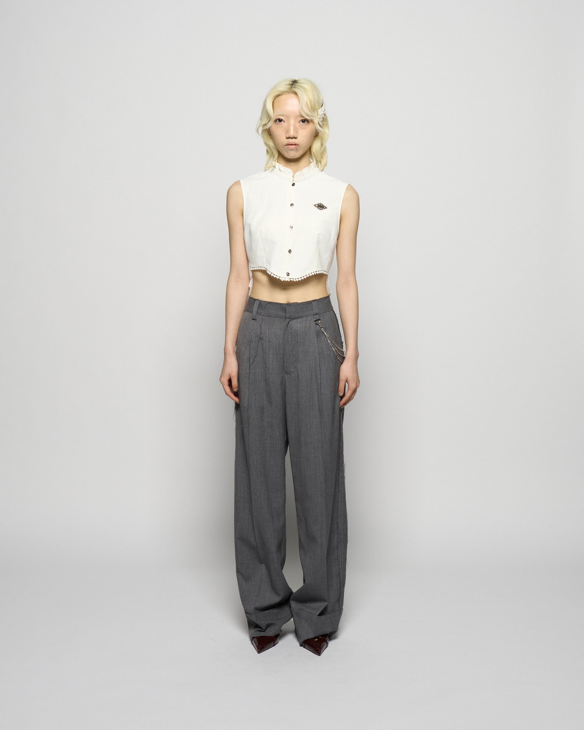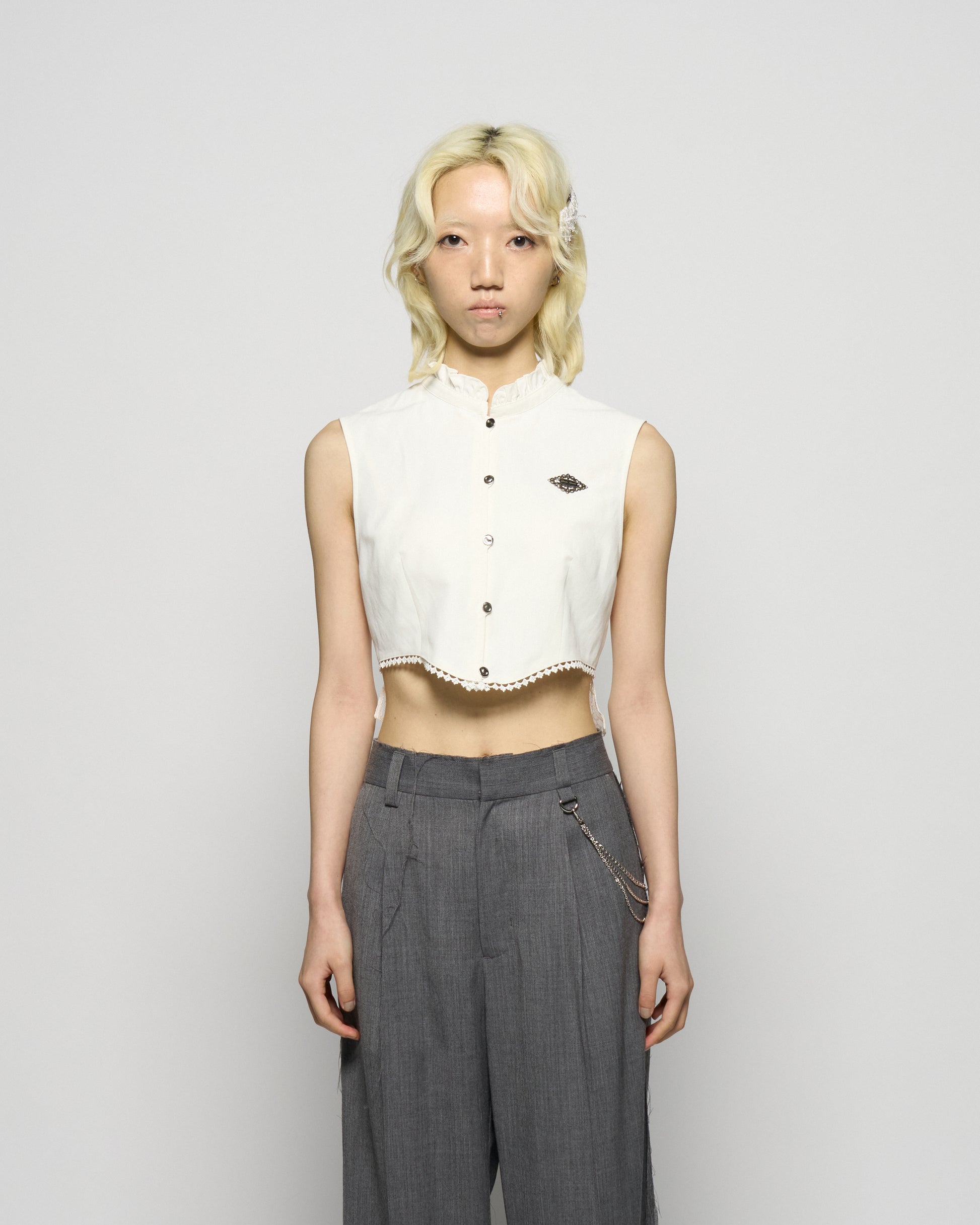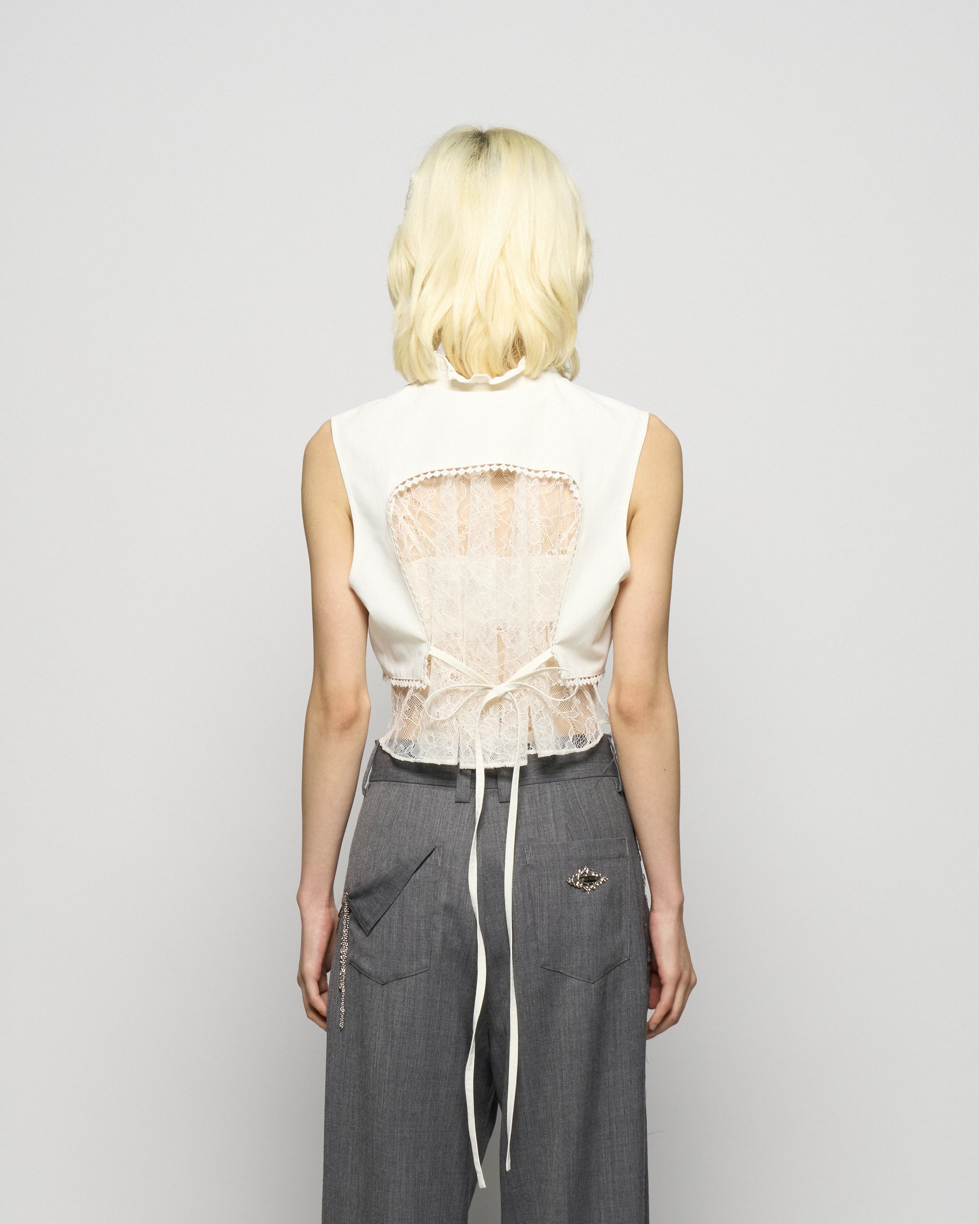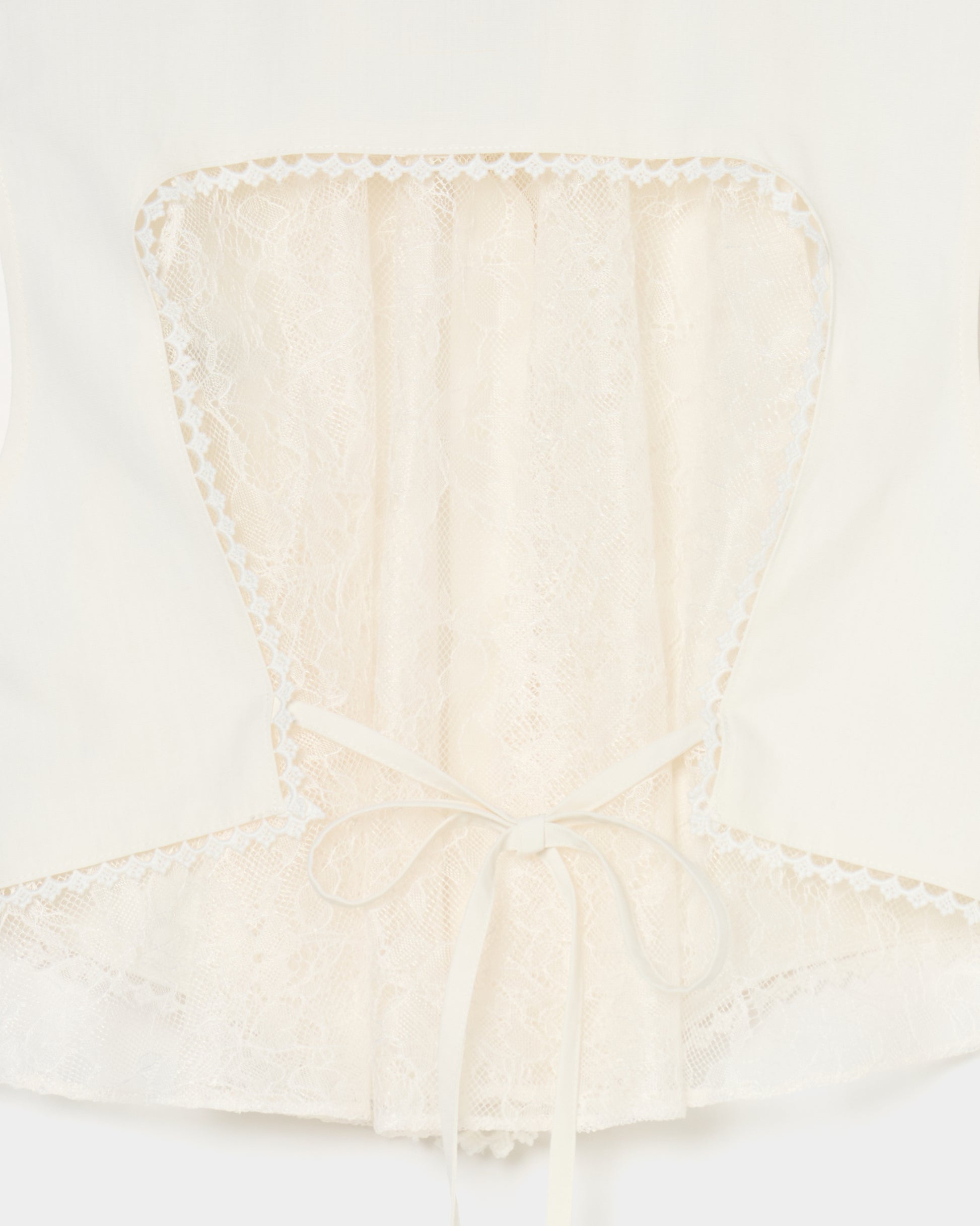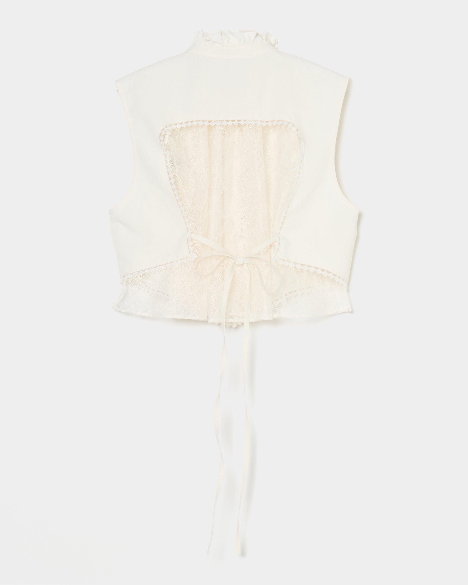 back lace curtain no sleeve blouse Off white【Delivery in January 2026】