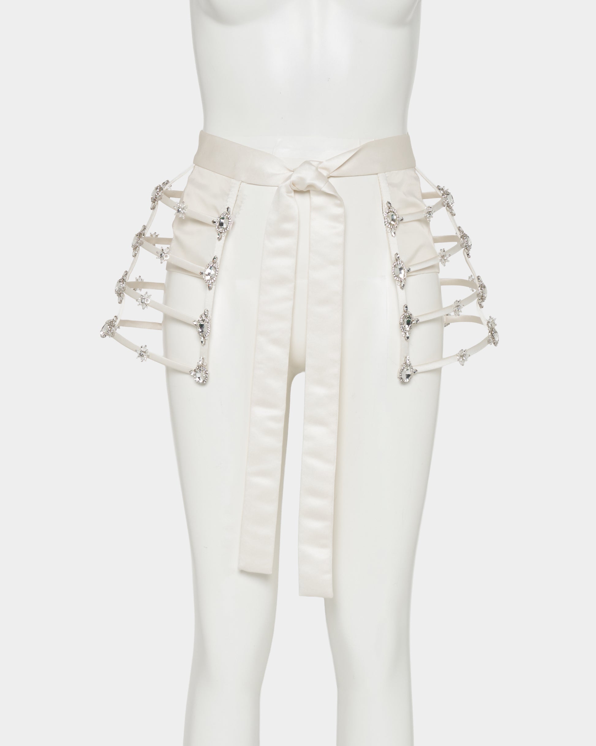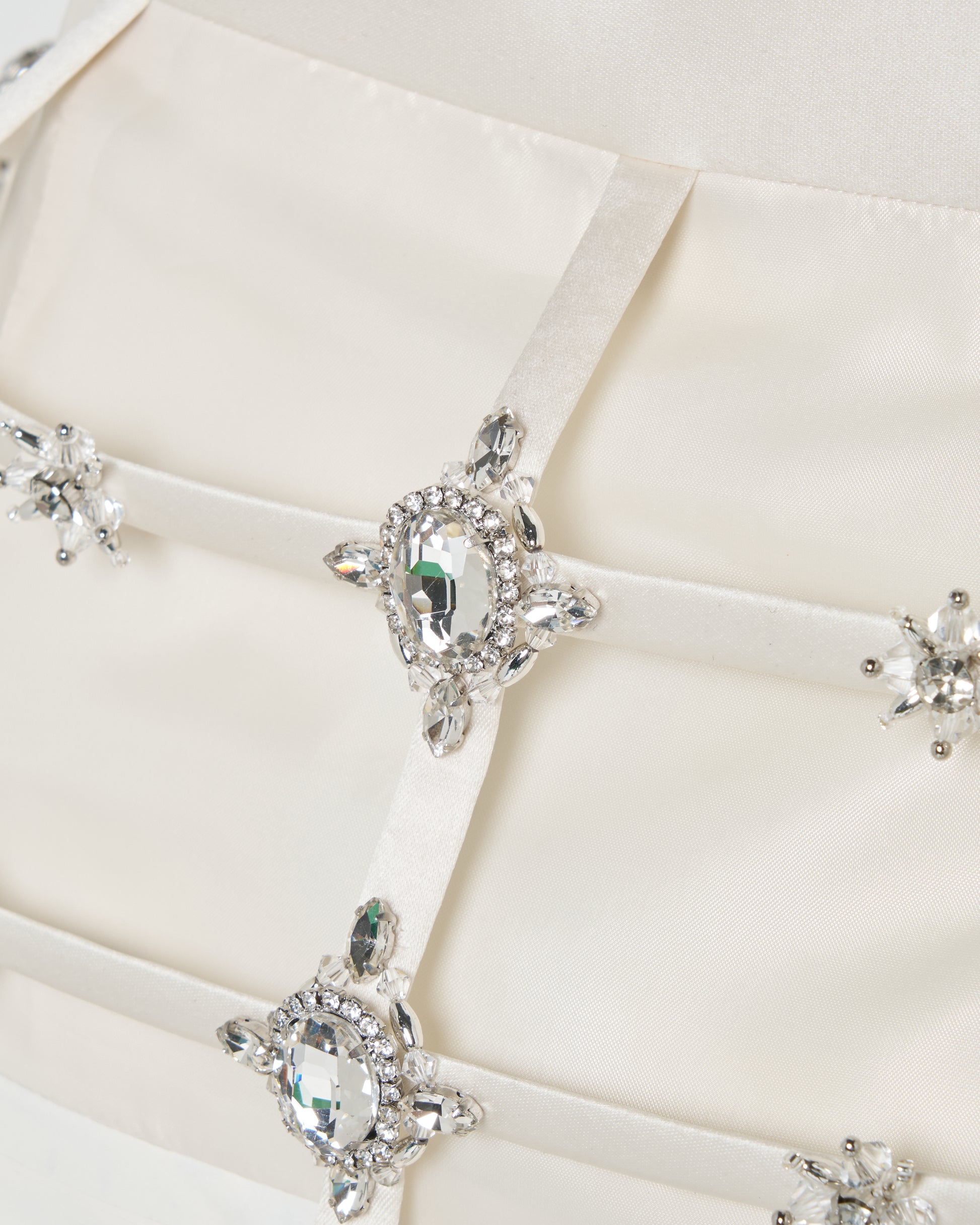 ・贅沢にビジューで彩ったクリノリンベルト。