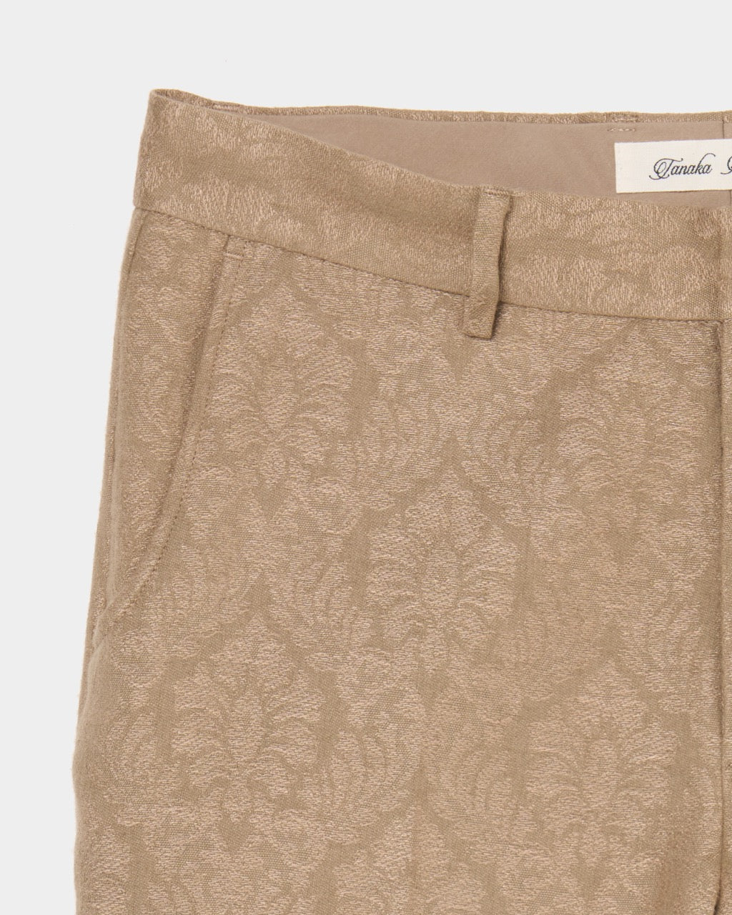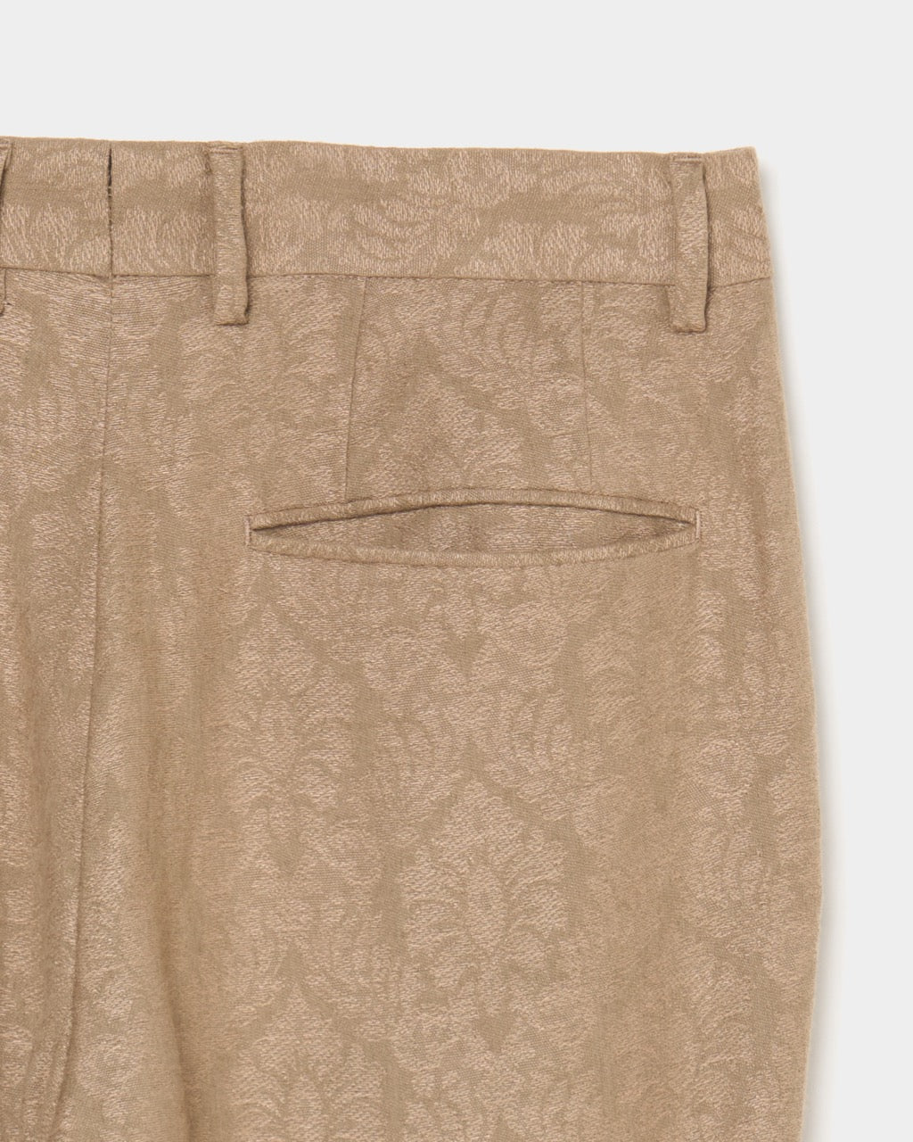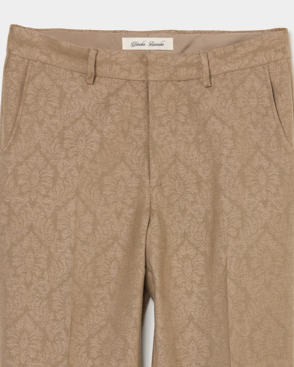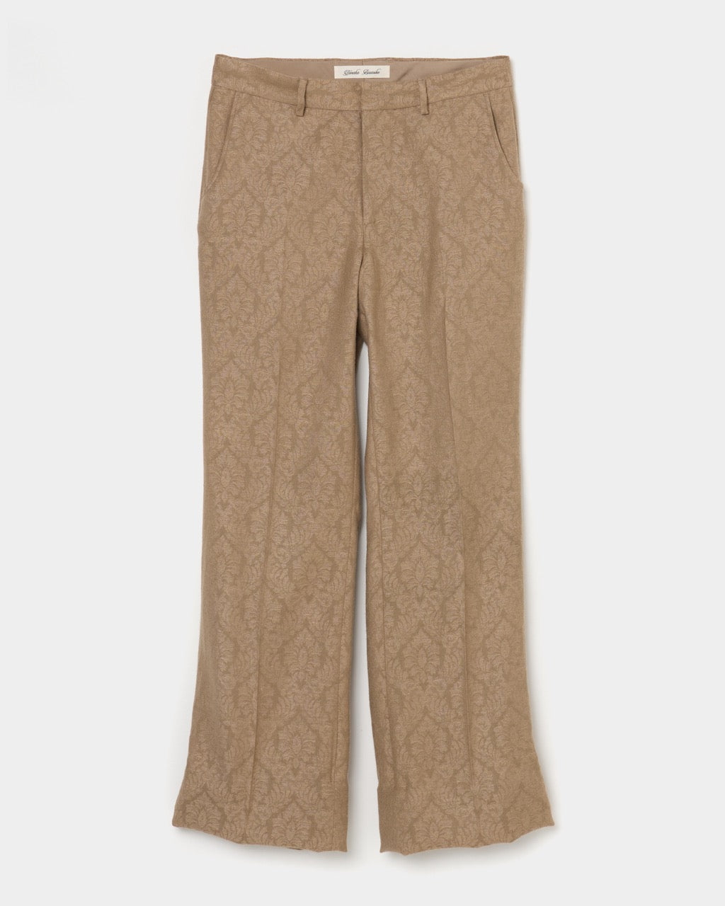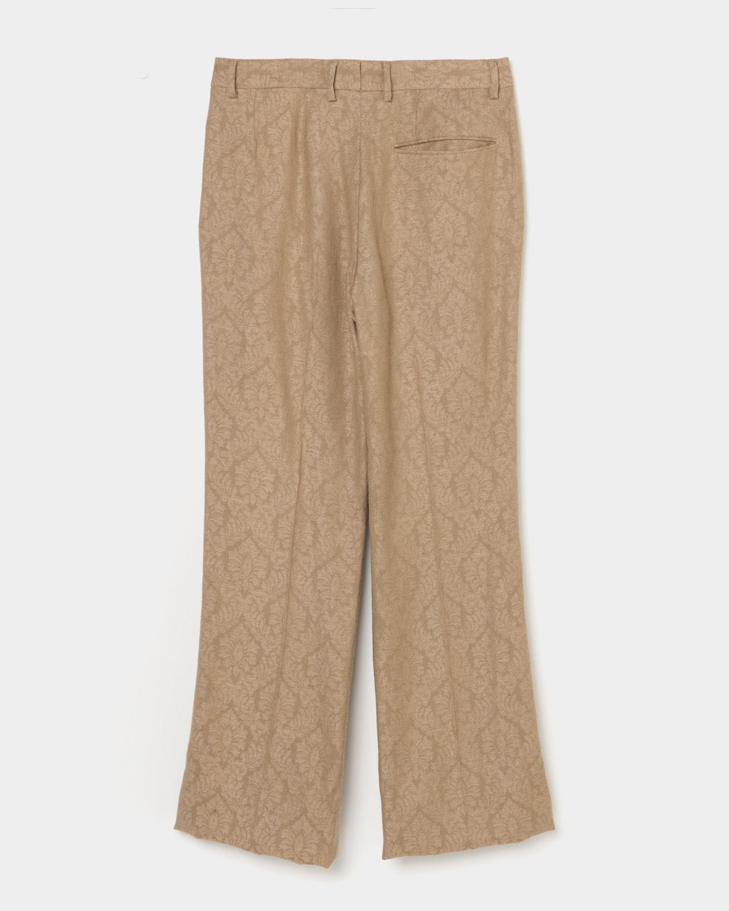 ・ダマスクパターンのデッドストック生地で仕立てられたストレートパンツ。