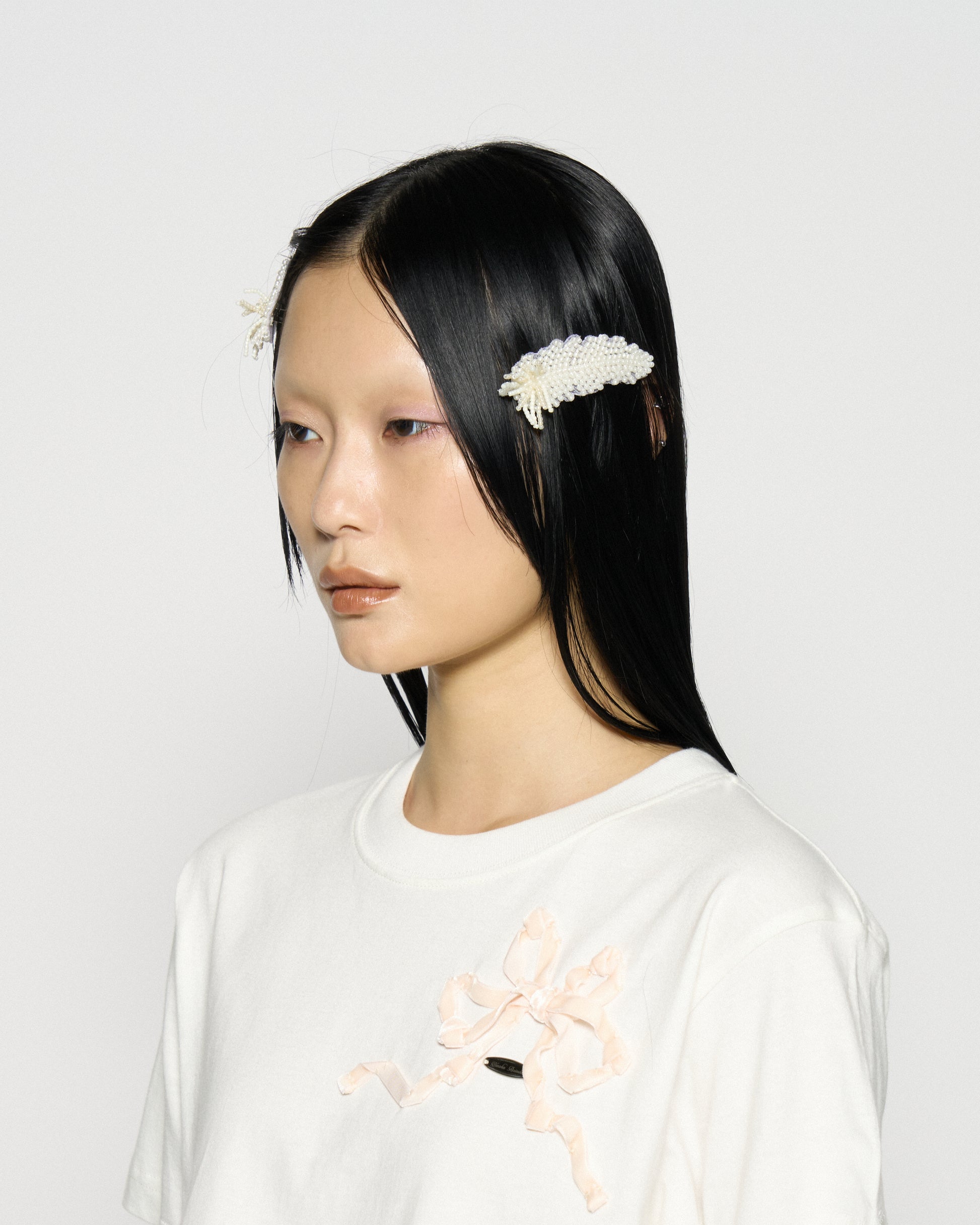 ・立体的なビーズを手刺繍で加え華やかな印象に。