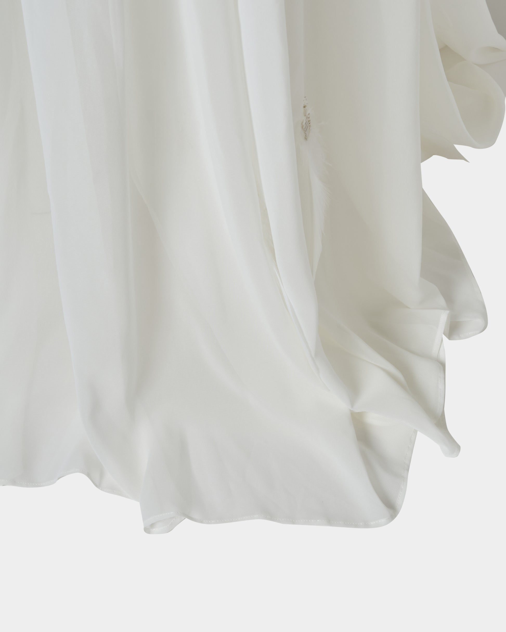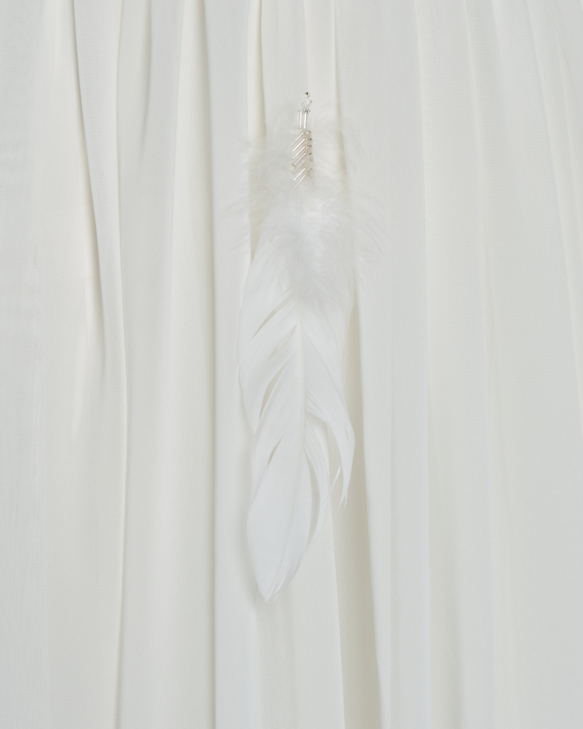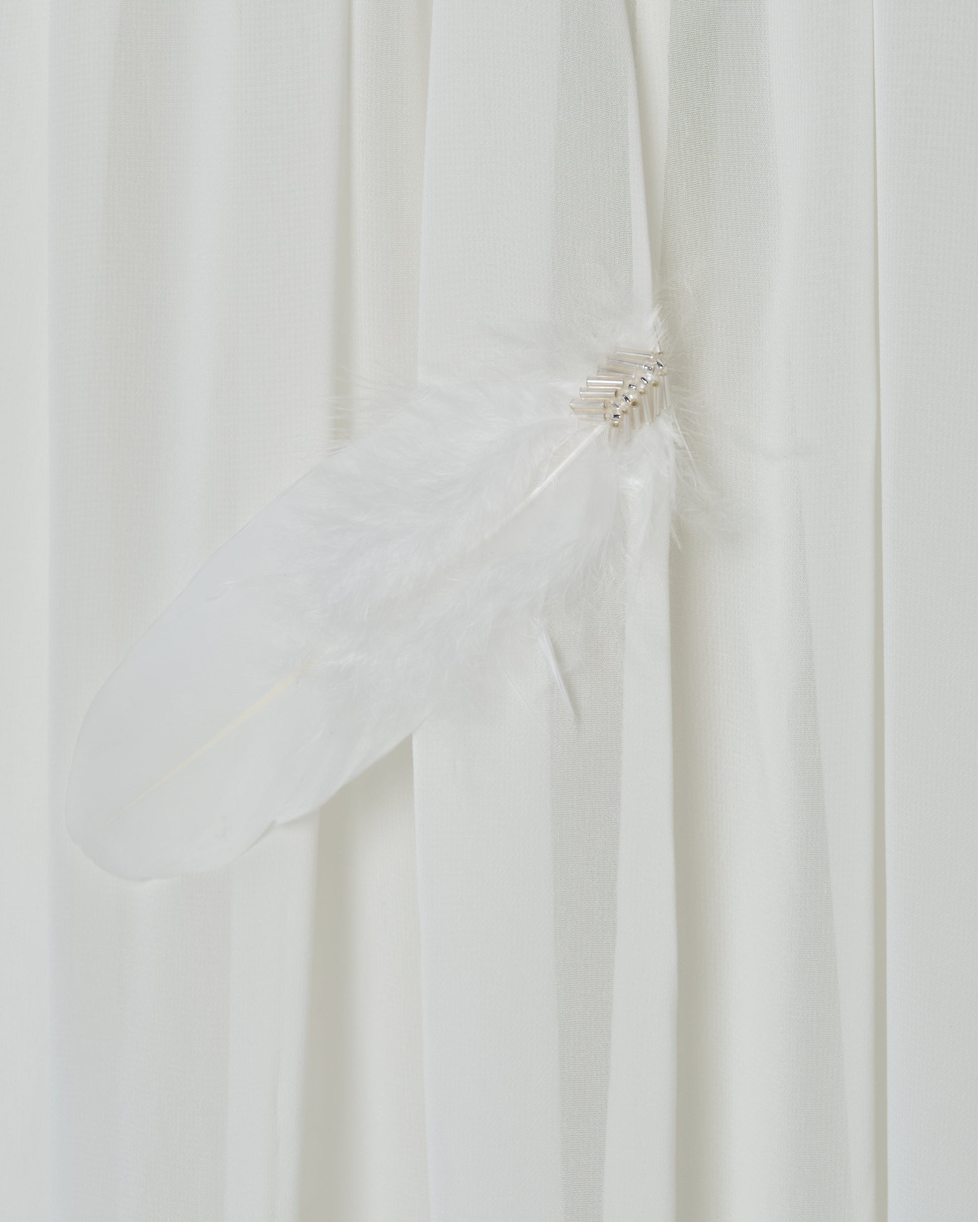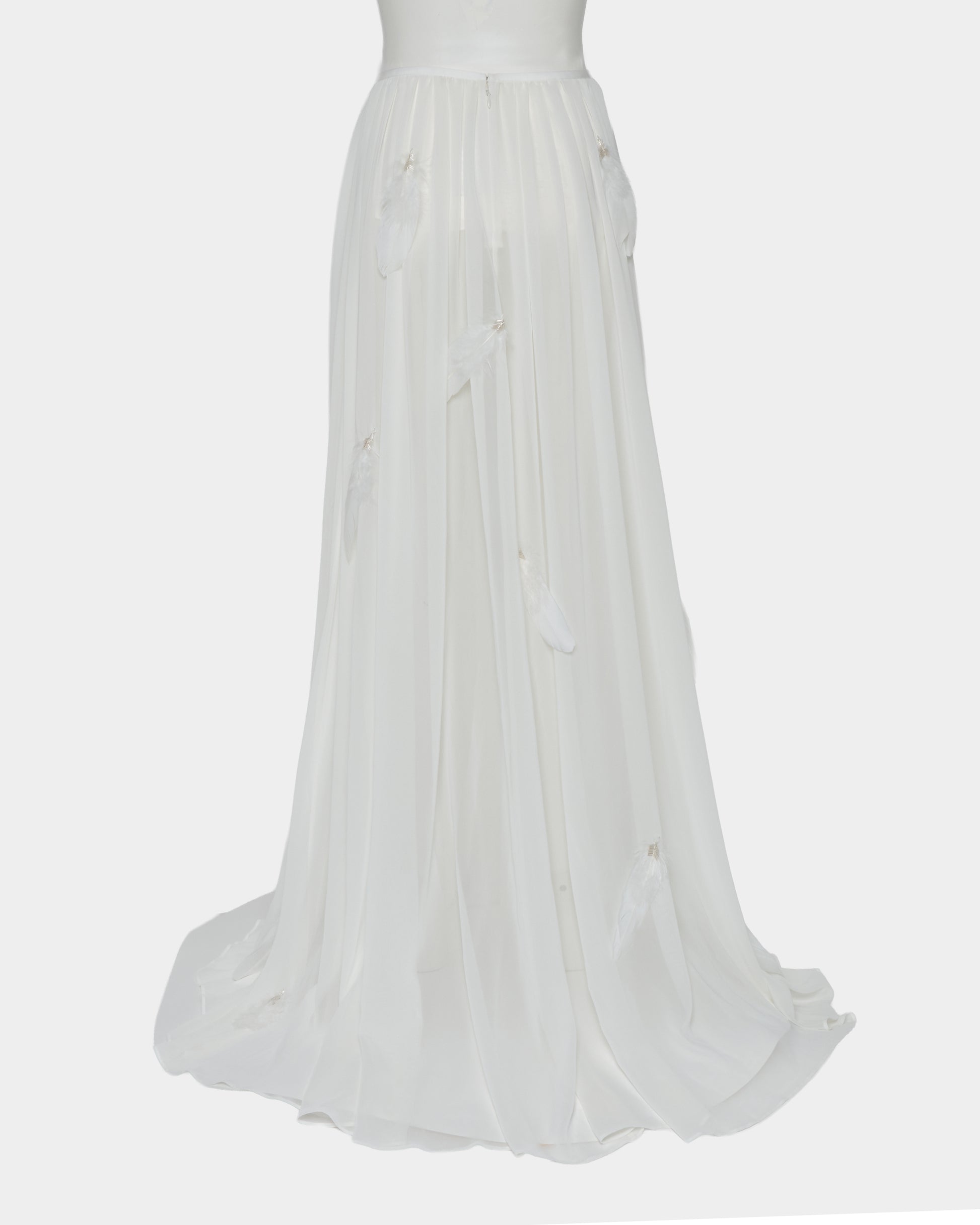 ・柔らかなシフォン生地にリアルフェザーをあしらったロングスカート。