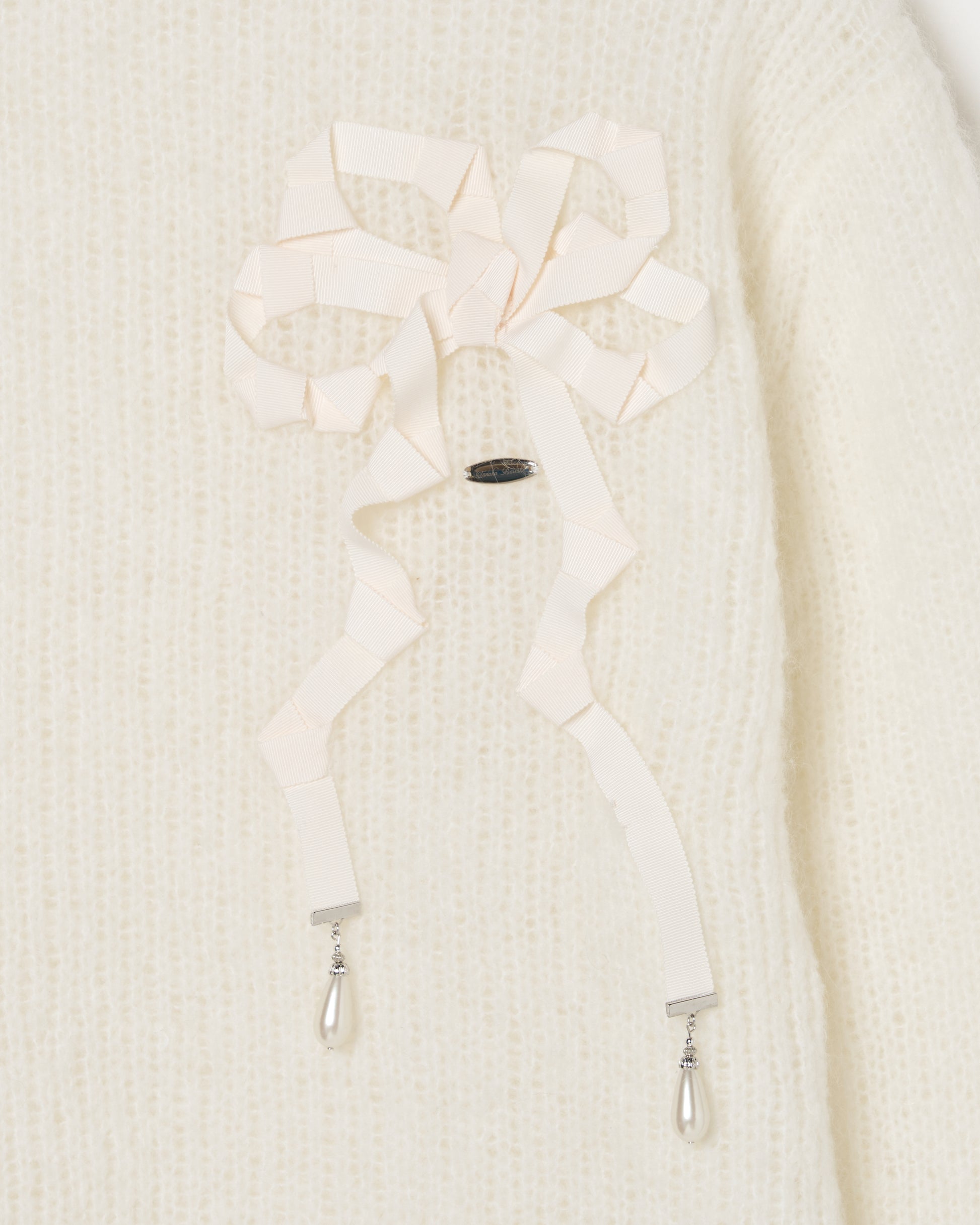 ・柔らかな風合いのモヘアニットに施された、くたびれたような歪なリボンが哀愁を感じさせます。
