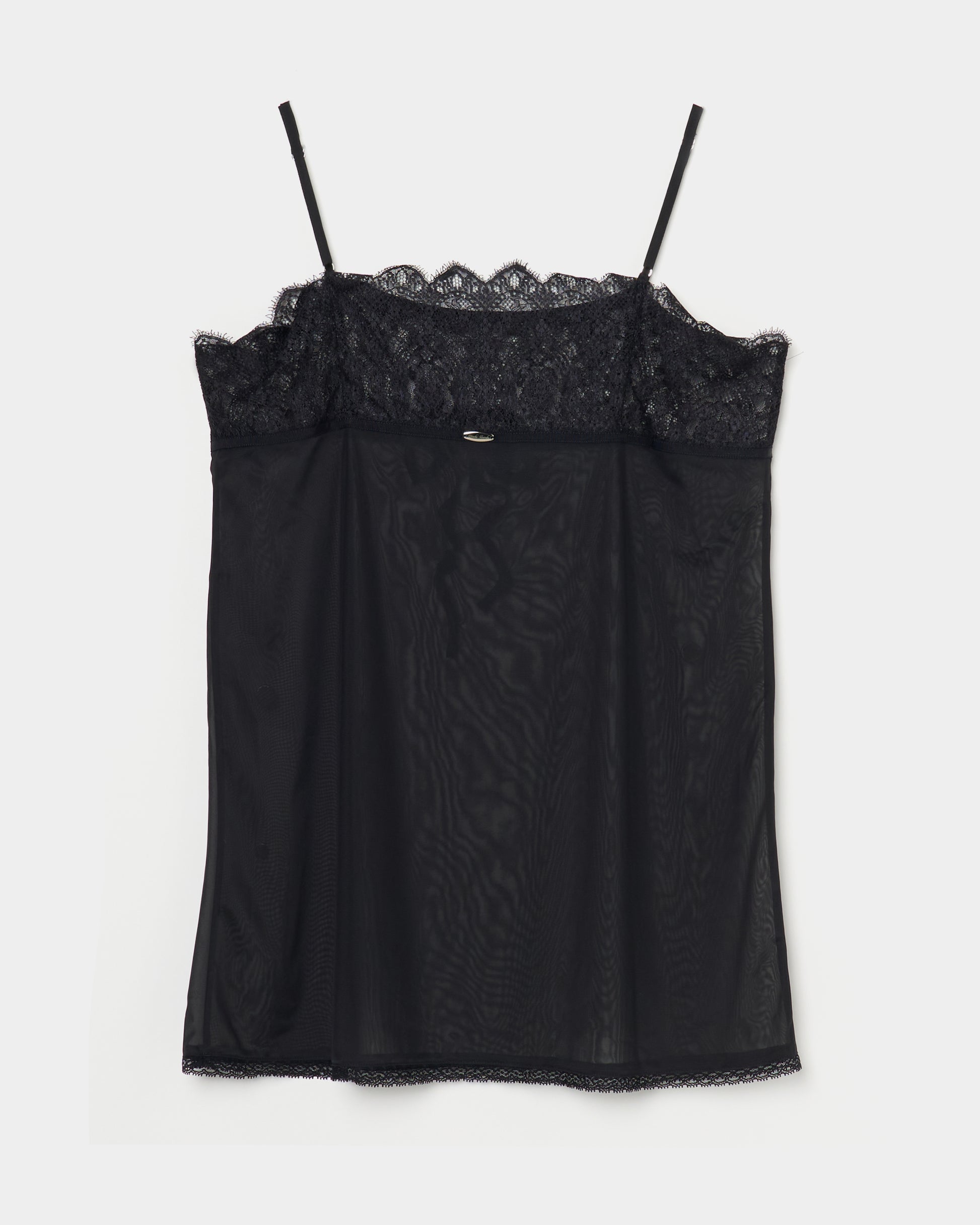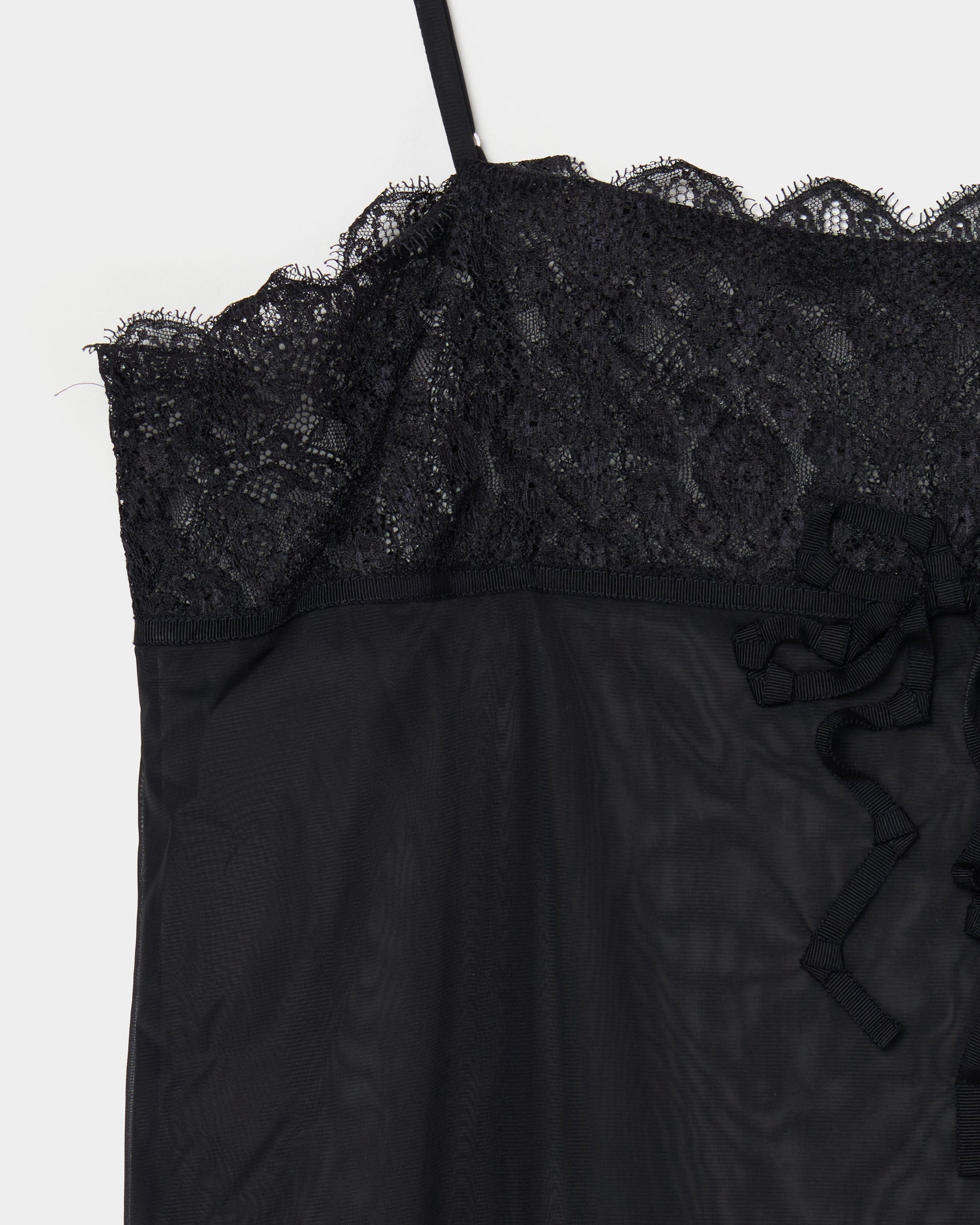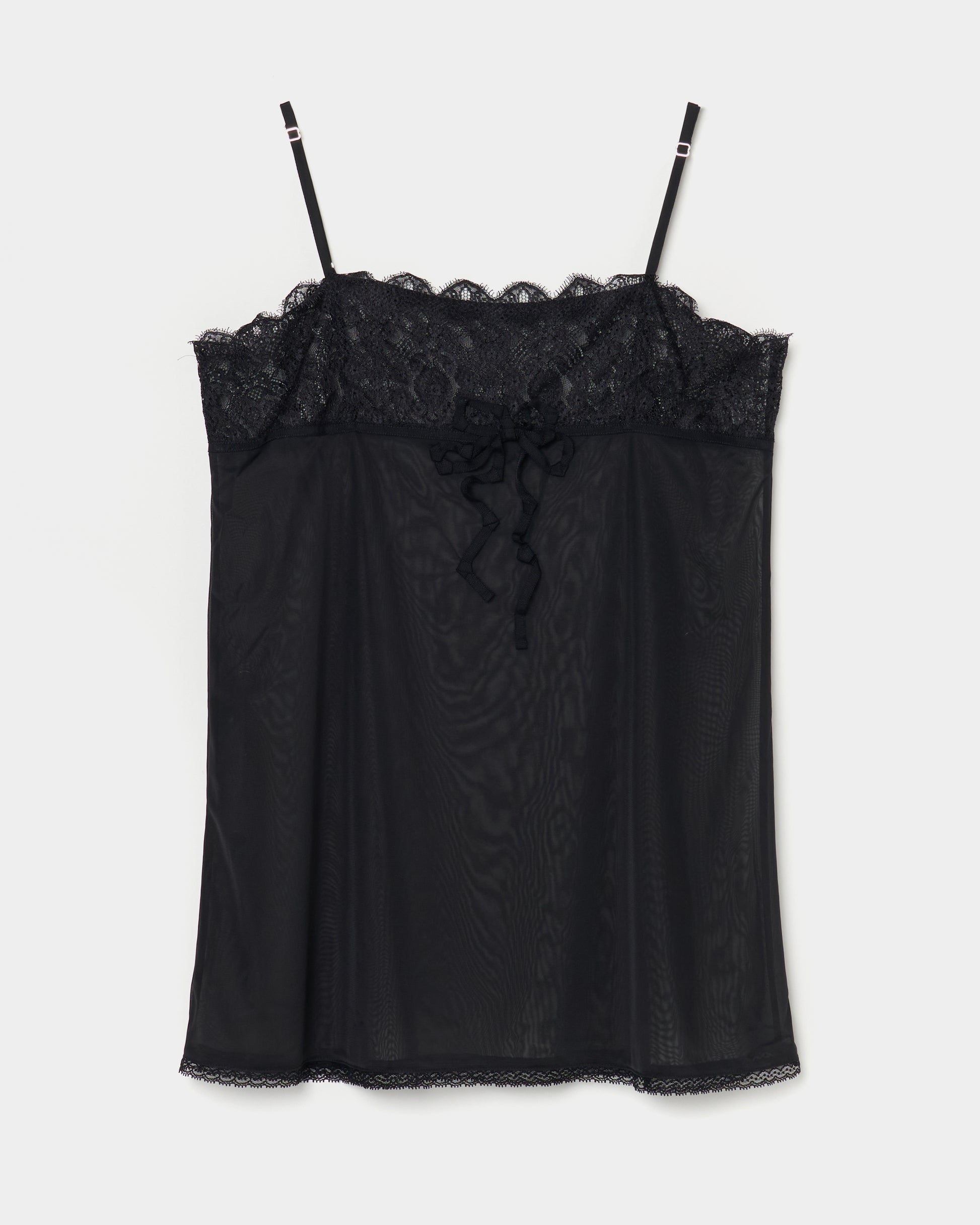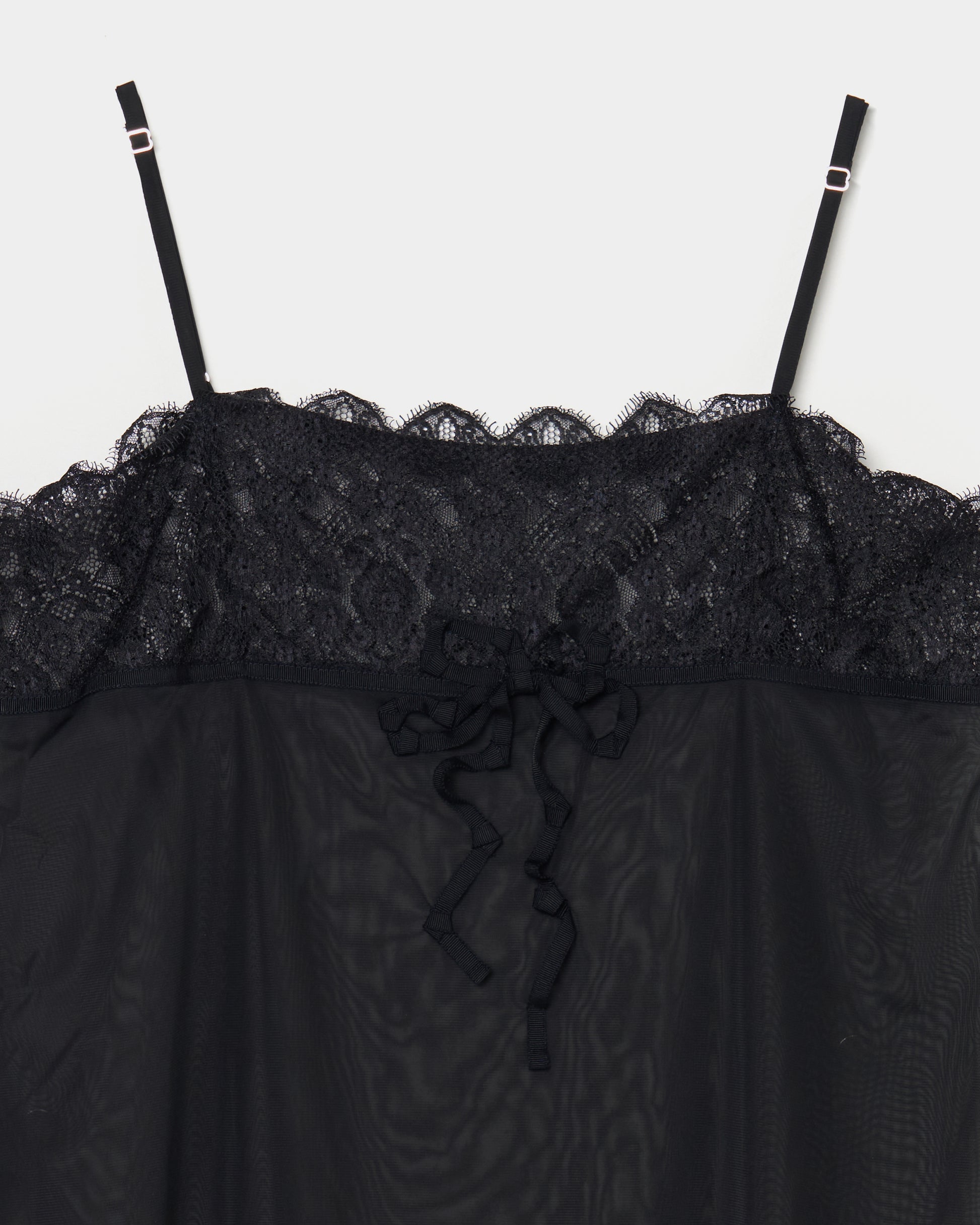 lazy ribbon sheer camisole Black【Delivery in February 2026】