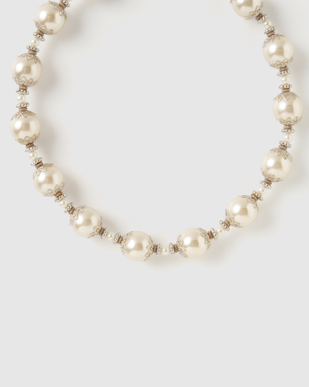 ・メタルパーツとビッグパールを施したネックレス。