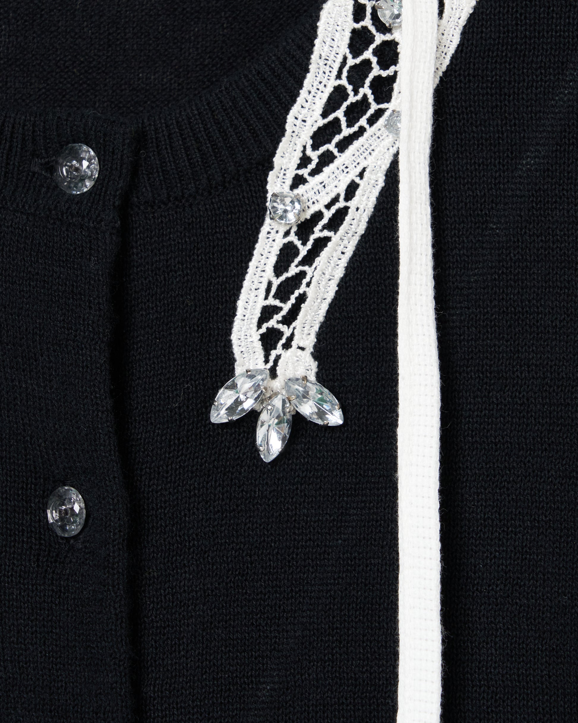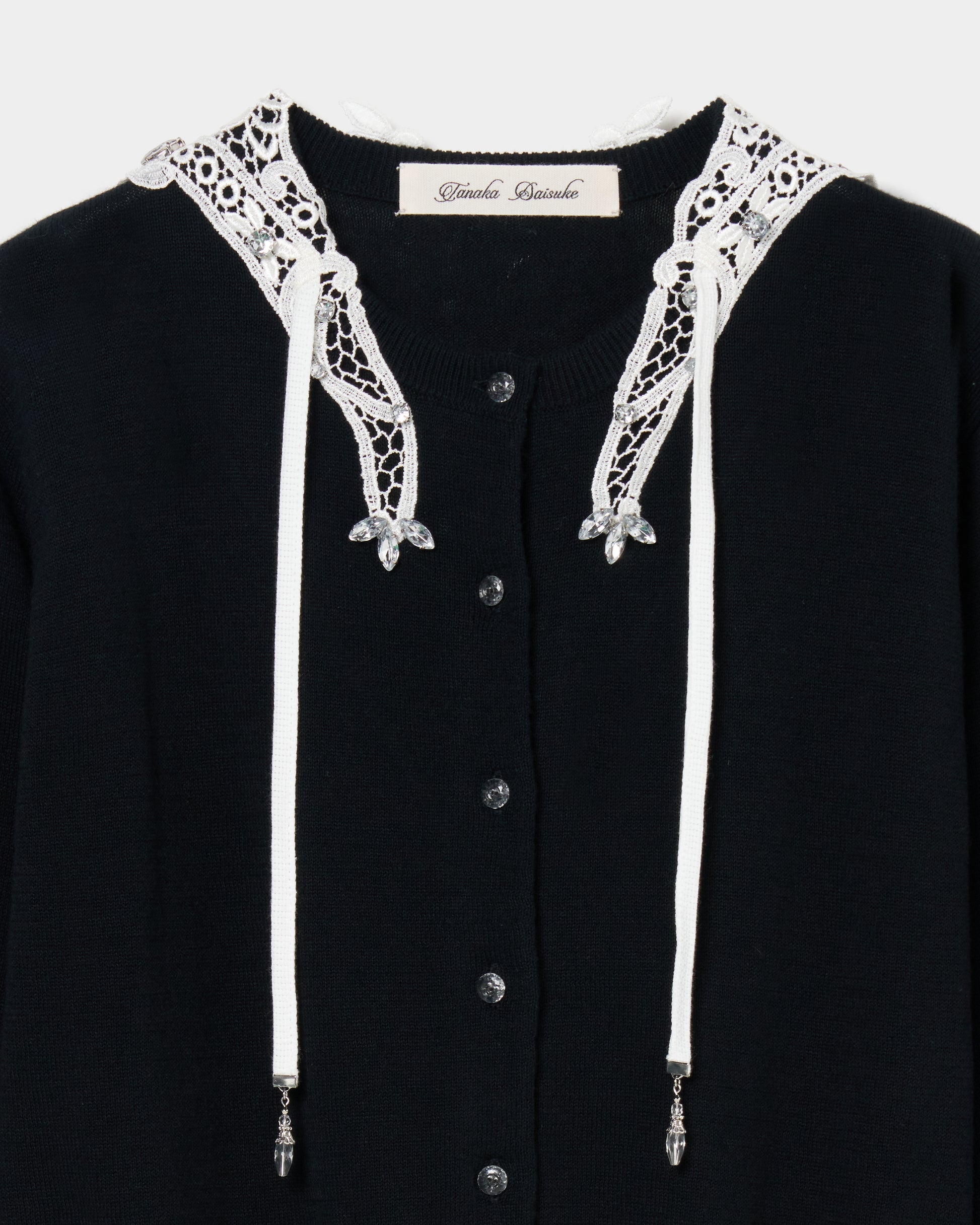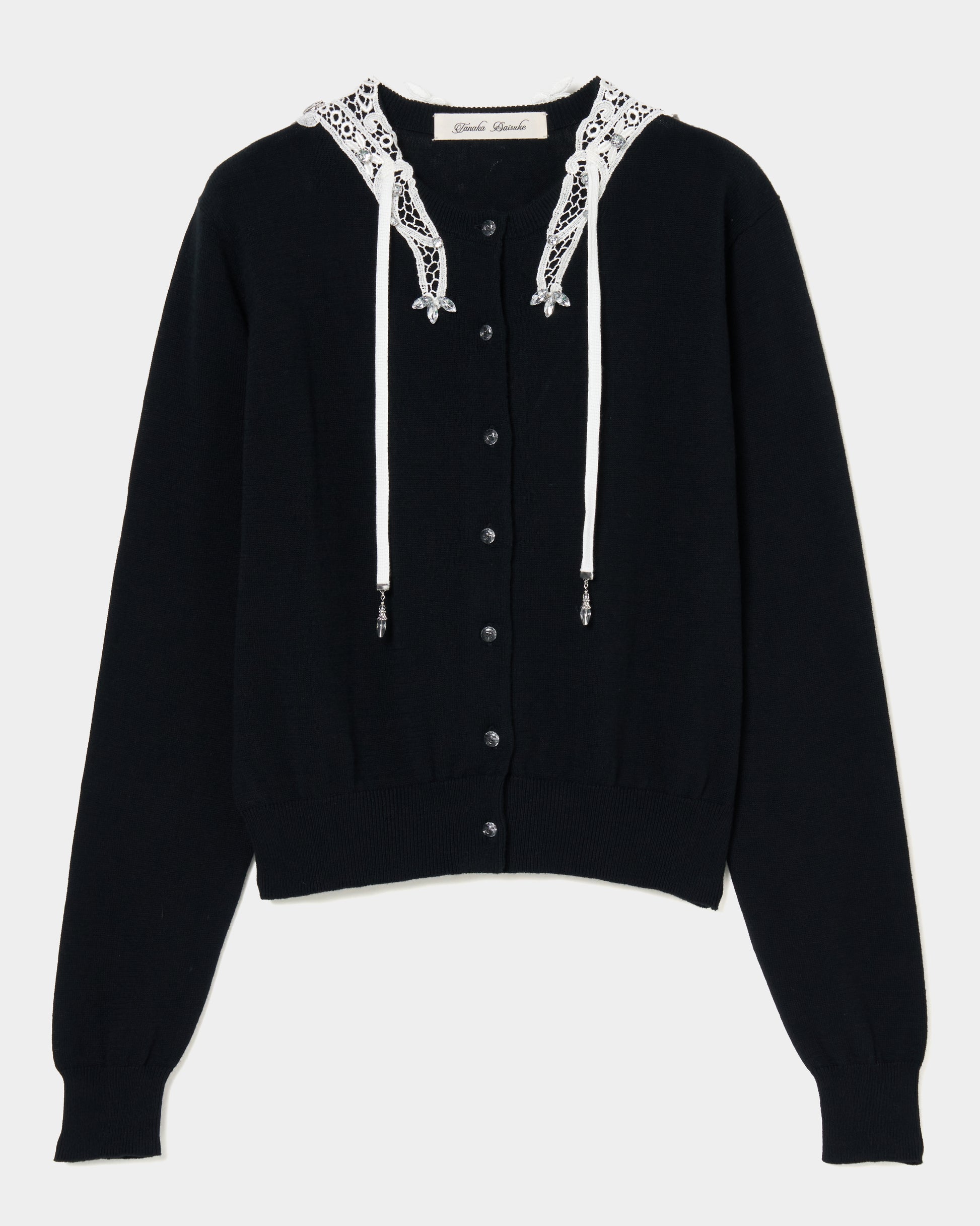 パリの街並みでインスピレーションを得た、繊細な レースをあしらったセーラー襟のカーディガン。