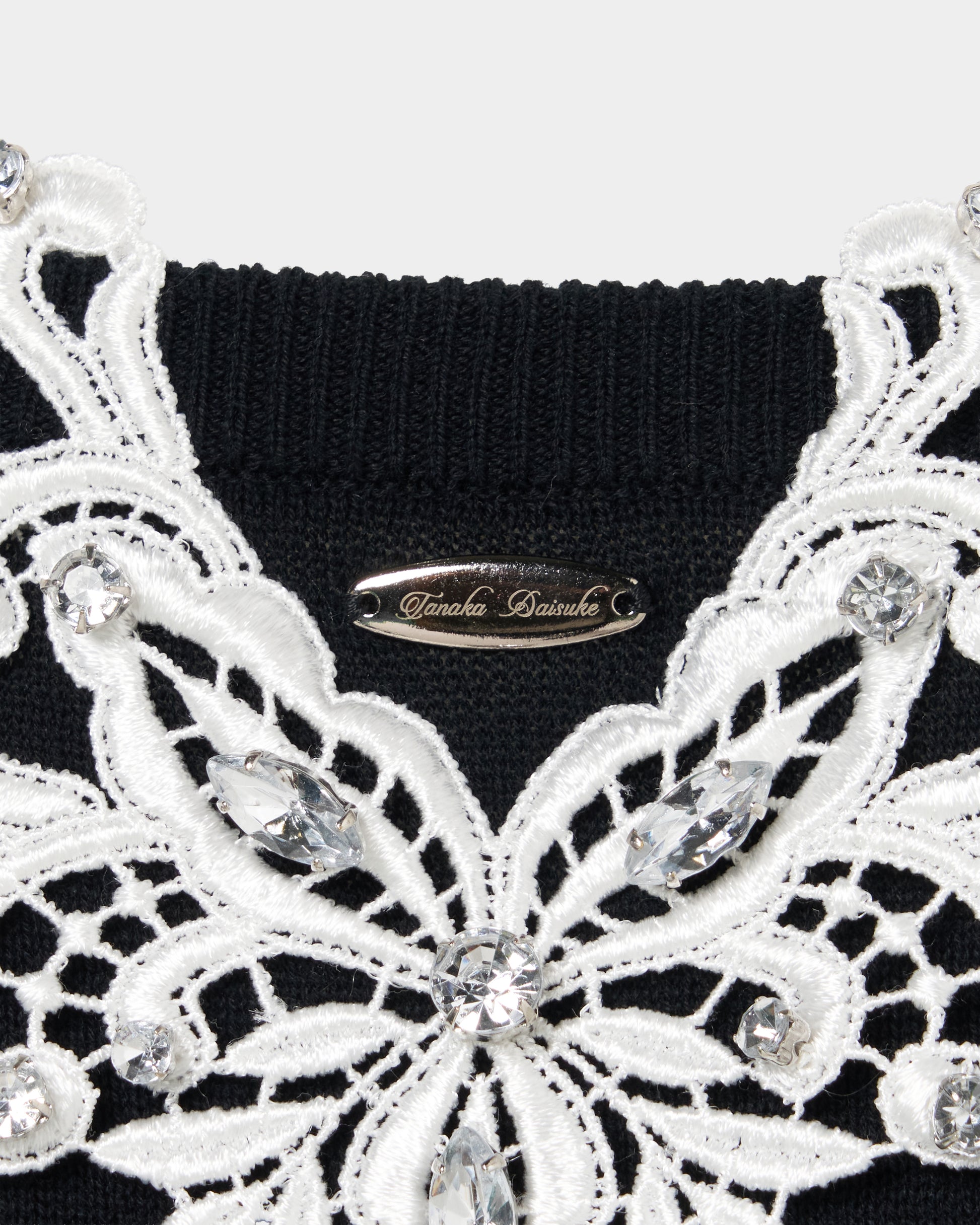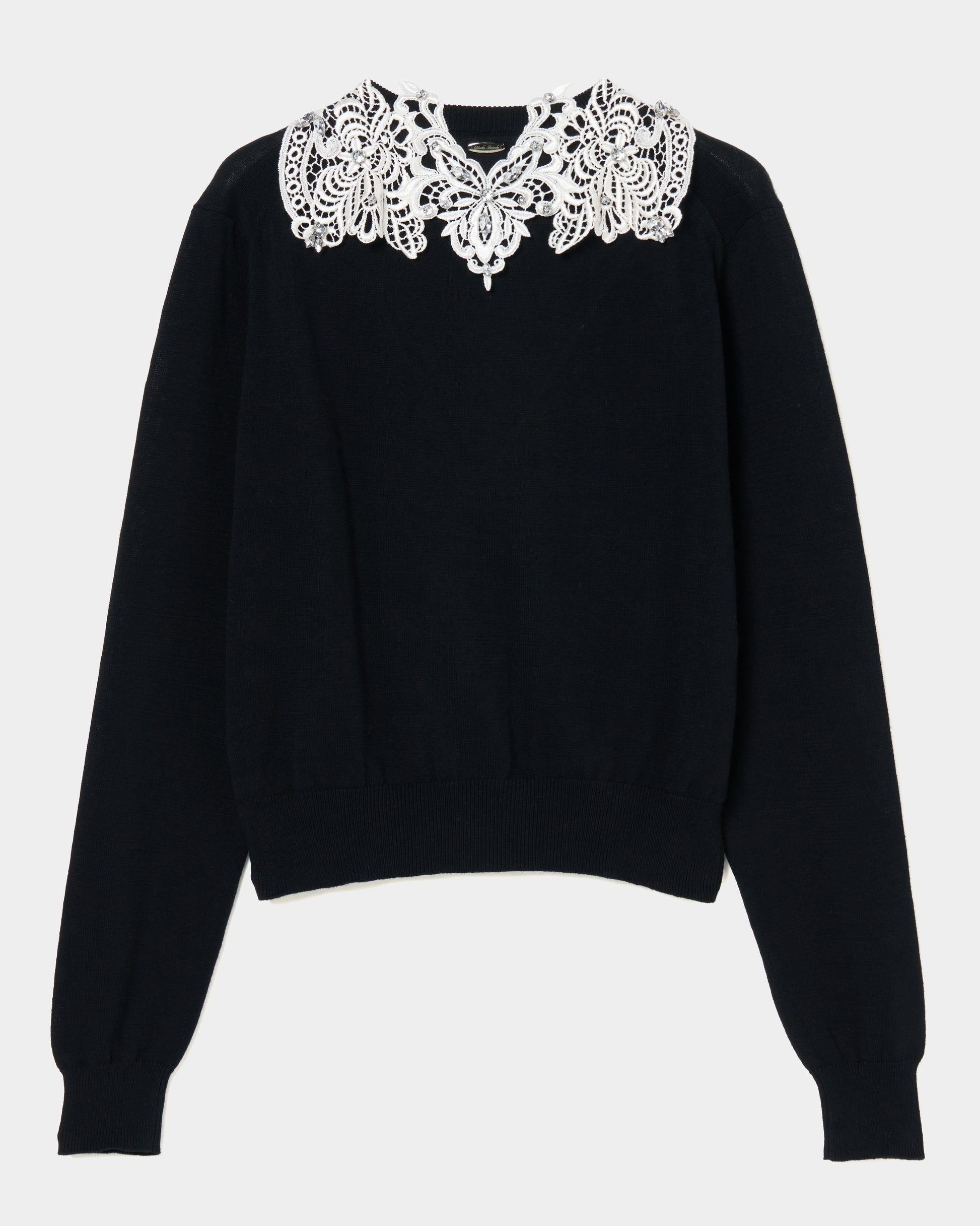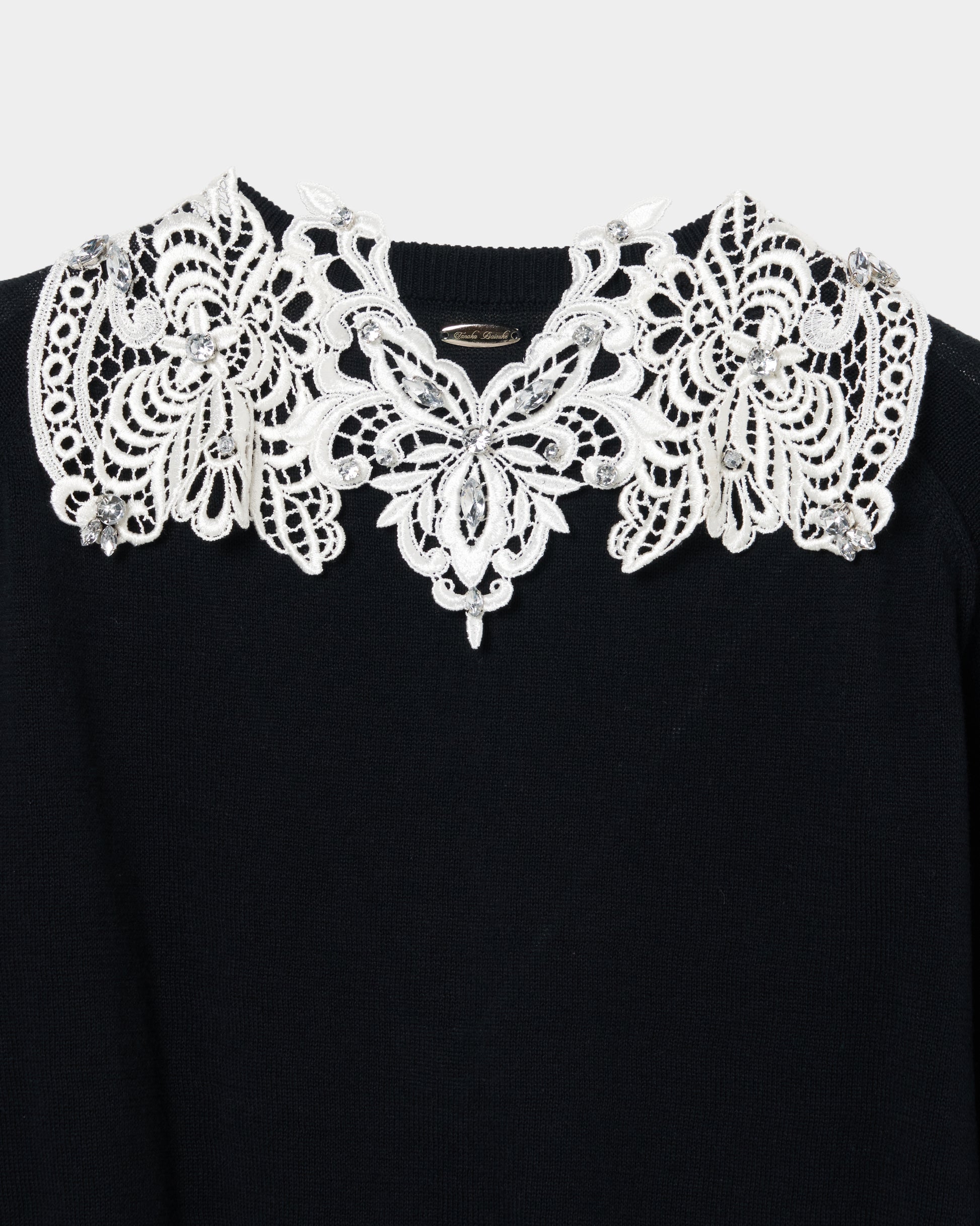 パリの街並みでインスピレーションを得た、繊細な レースをあしらったセーラー襟のカーディガン。