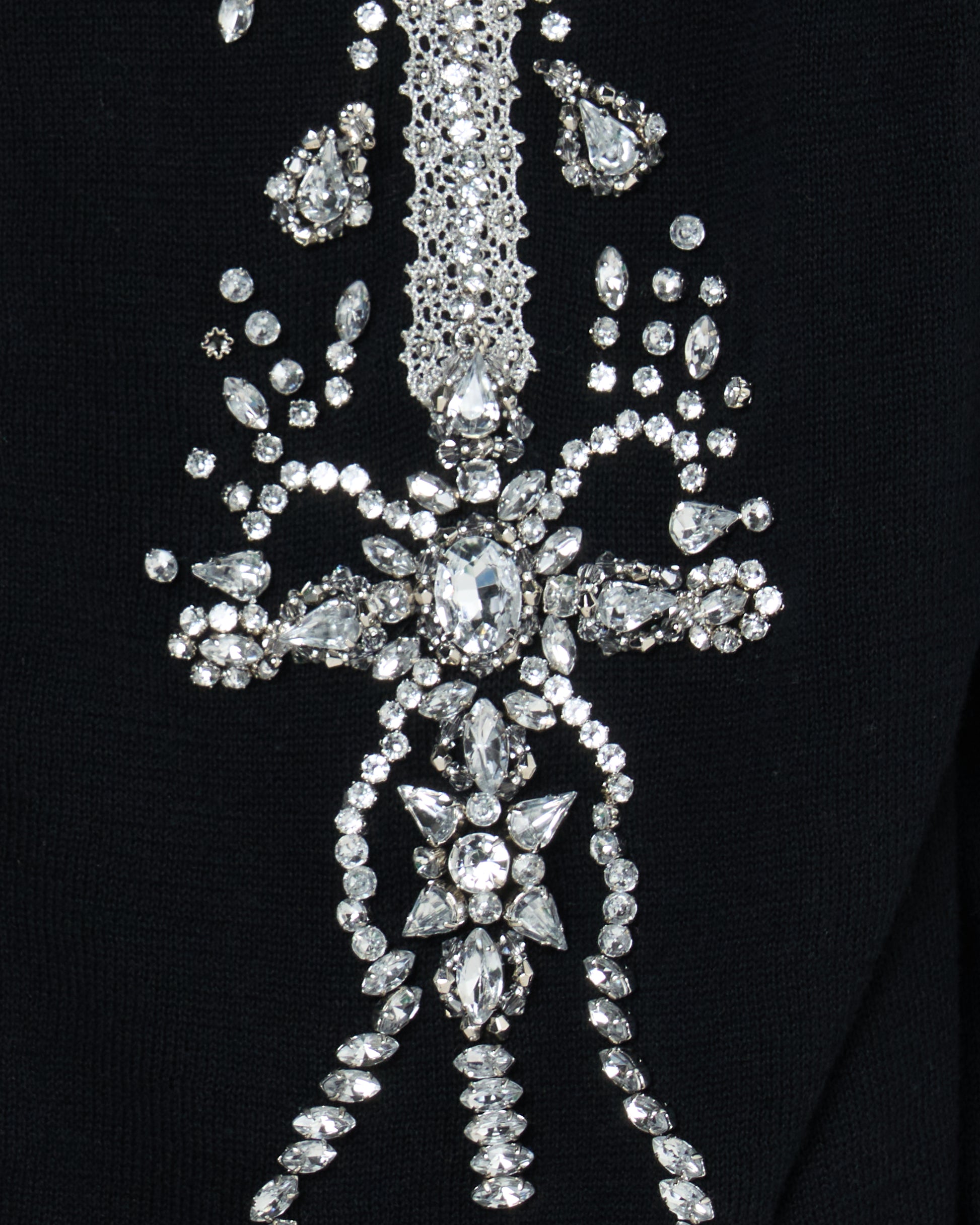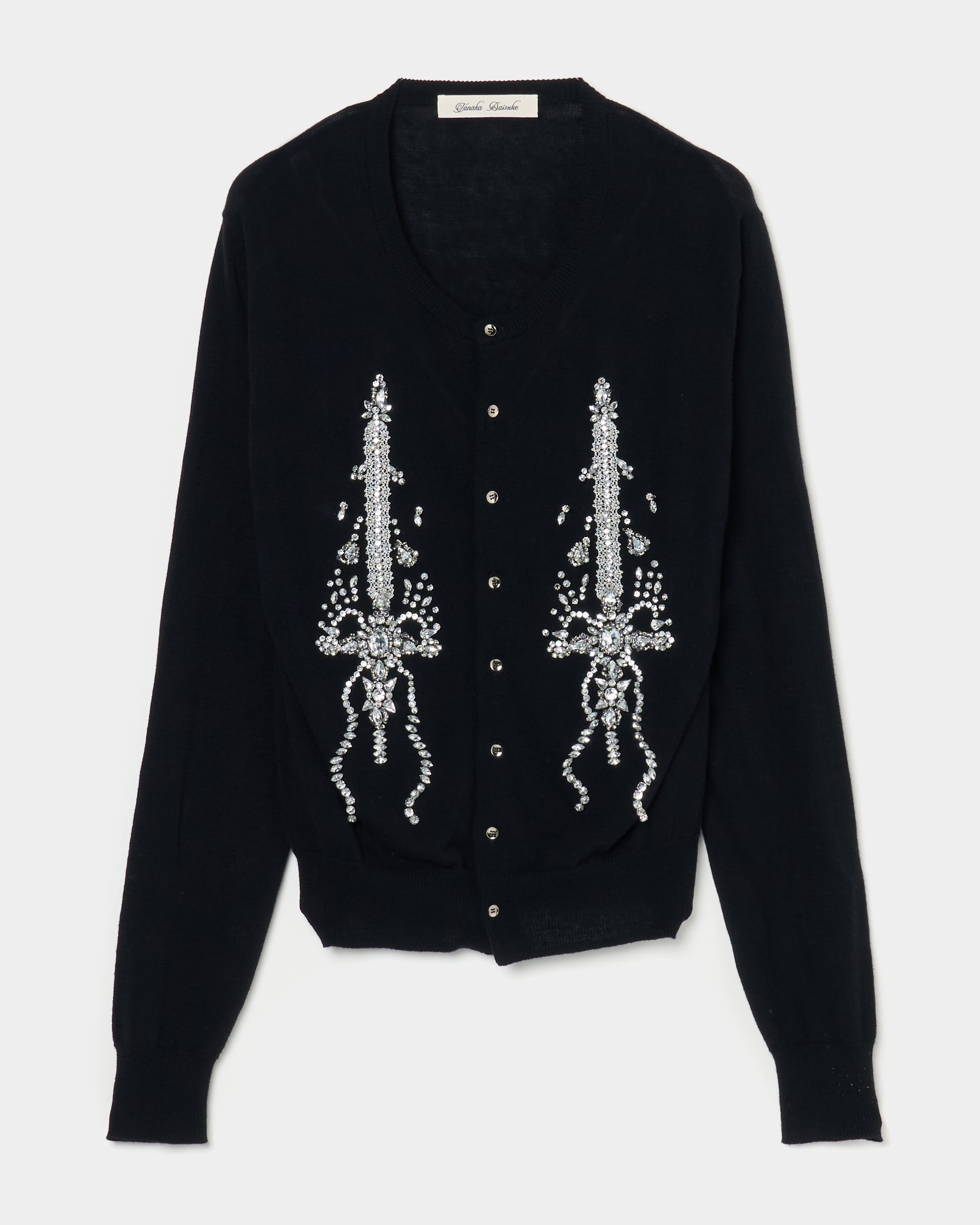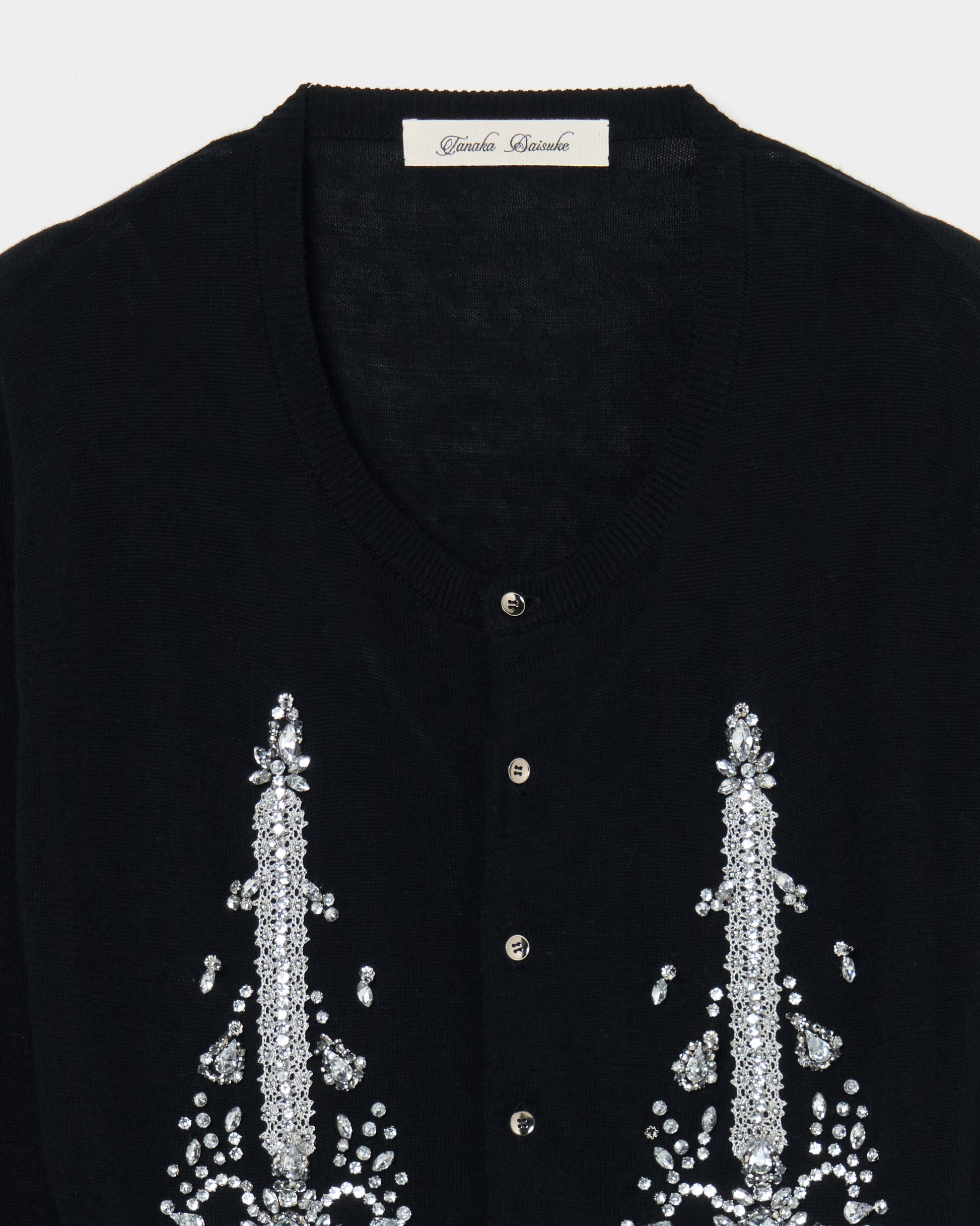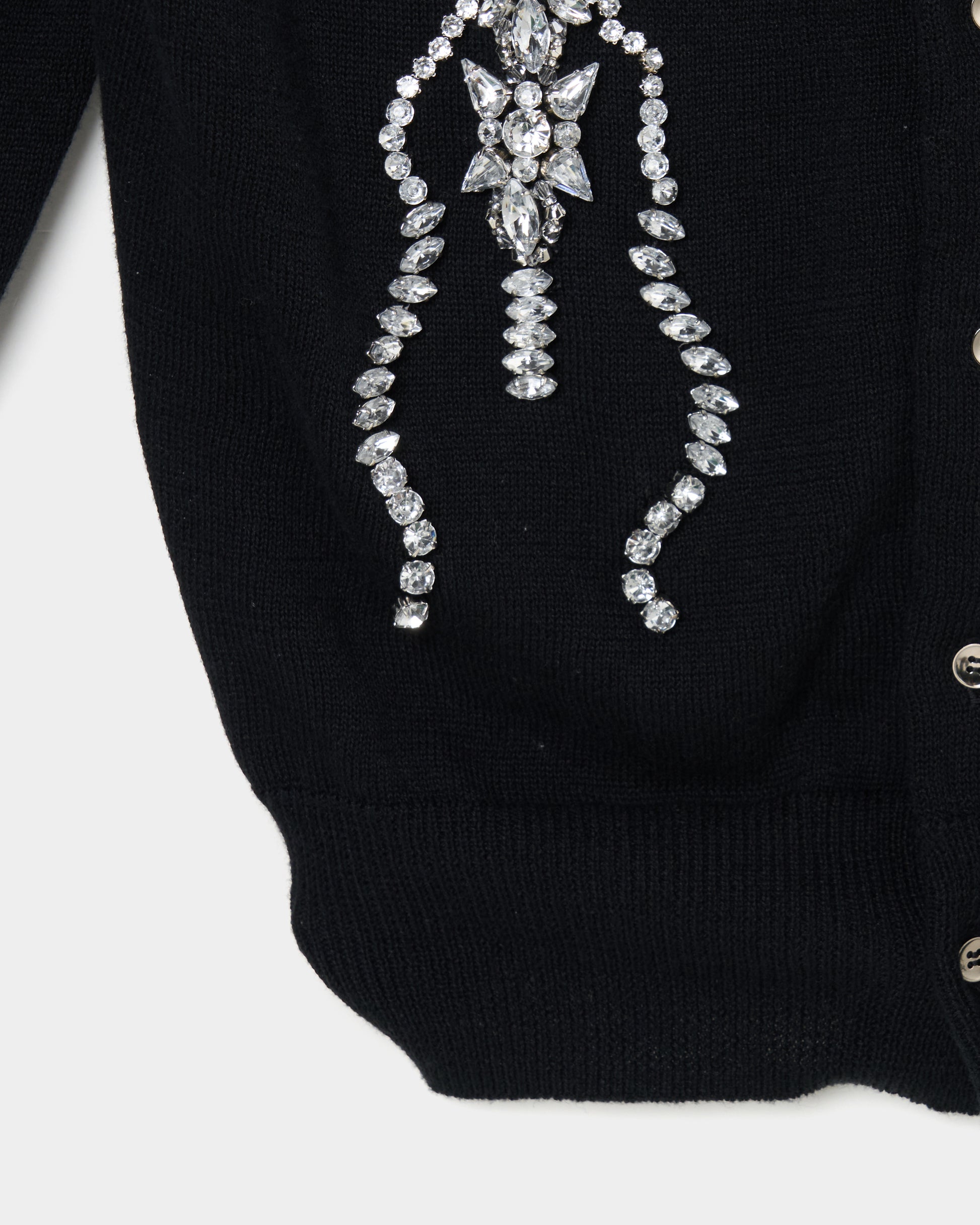 ribbon knight bijou embroidery cardigan Black【Delivery in February 2026】
