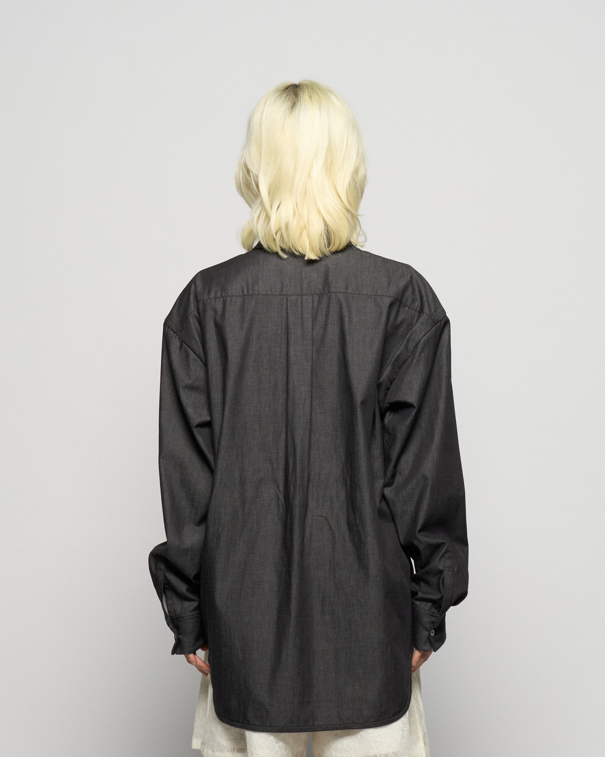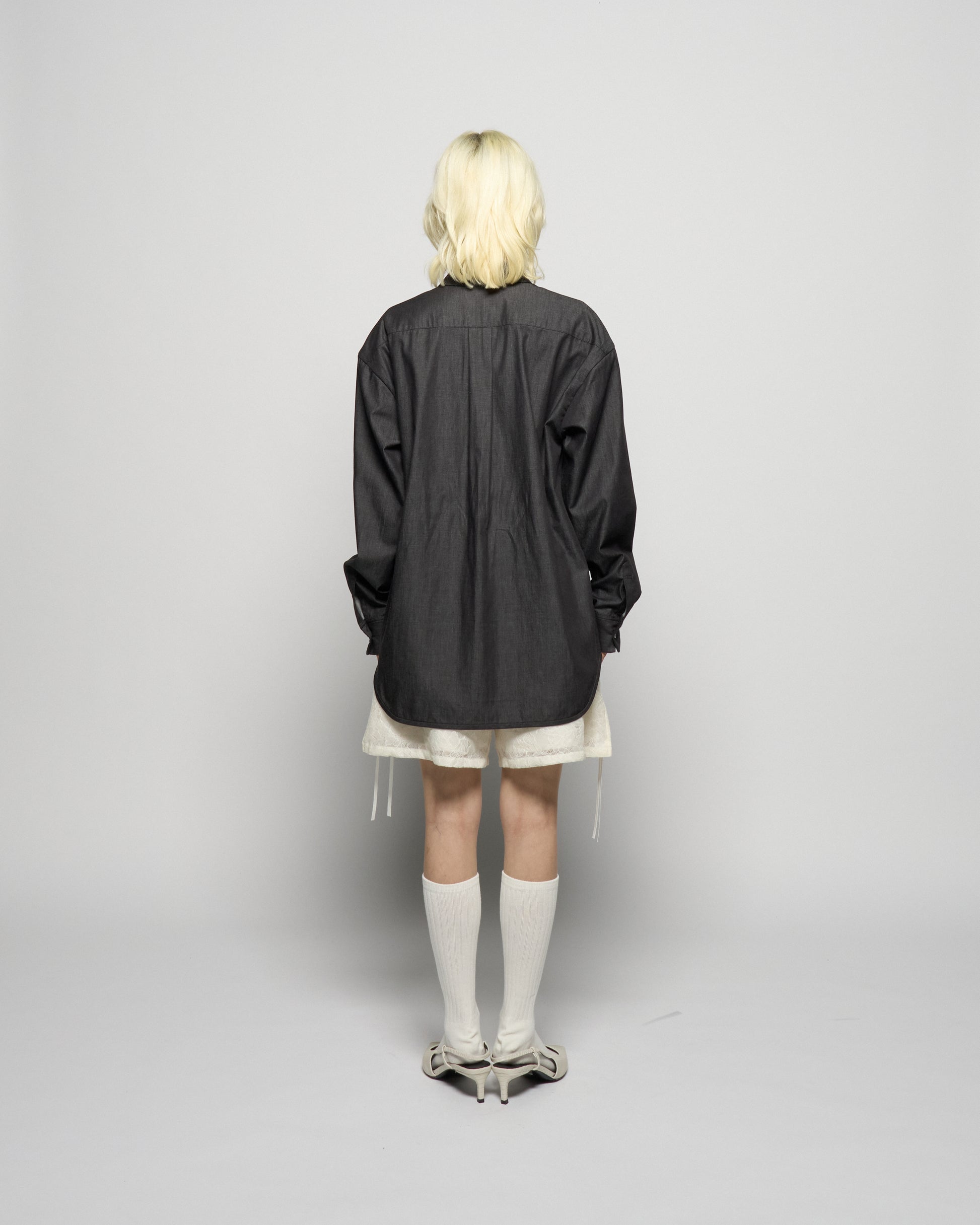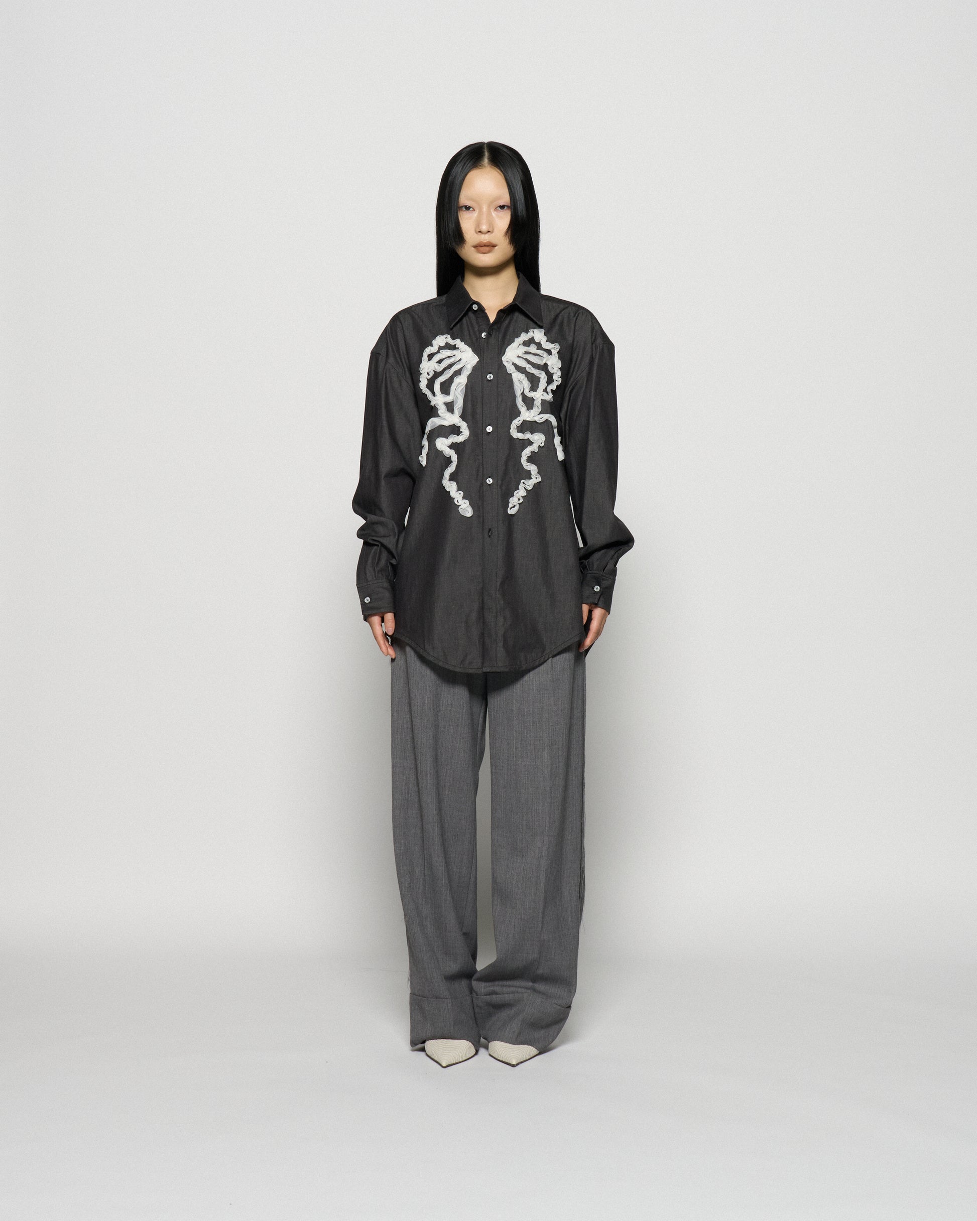 ・チュールのコード刺繍でリボンを模したコットン素材のシャツ。