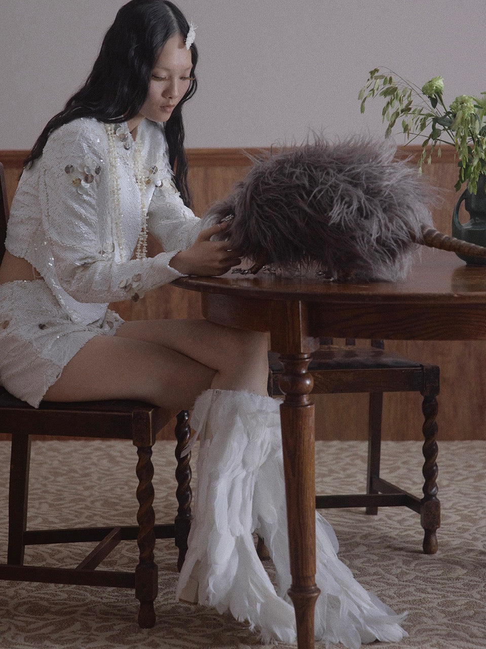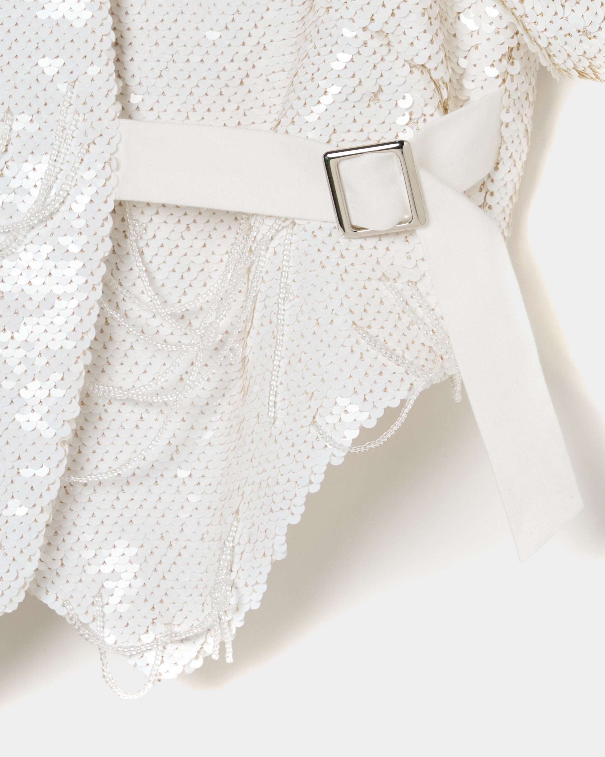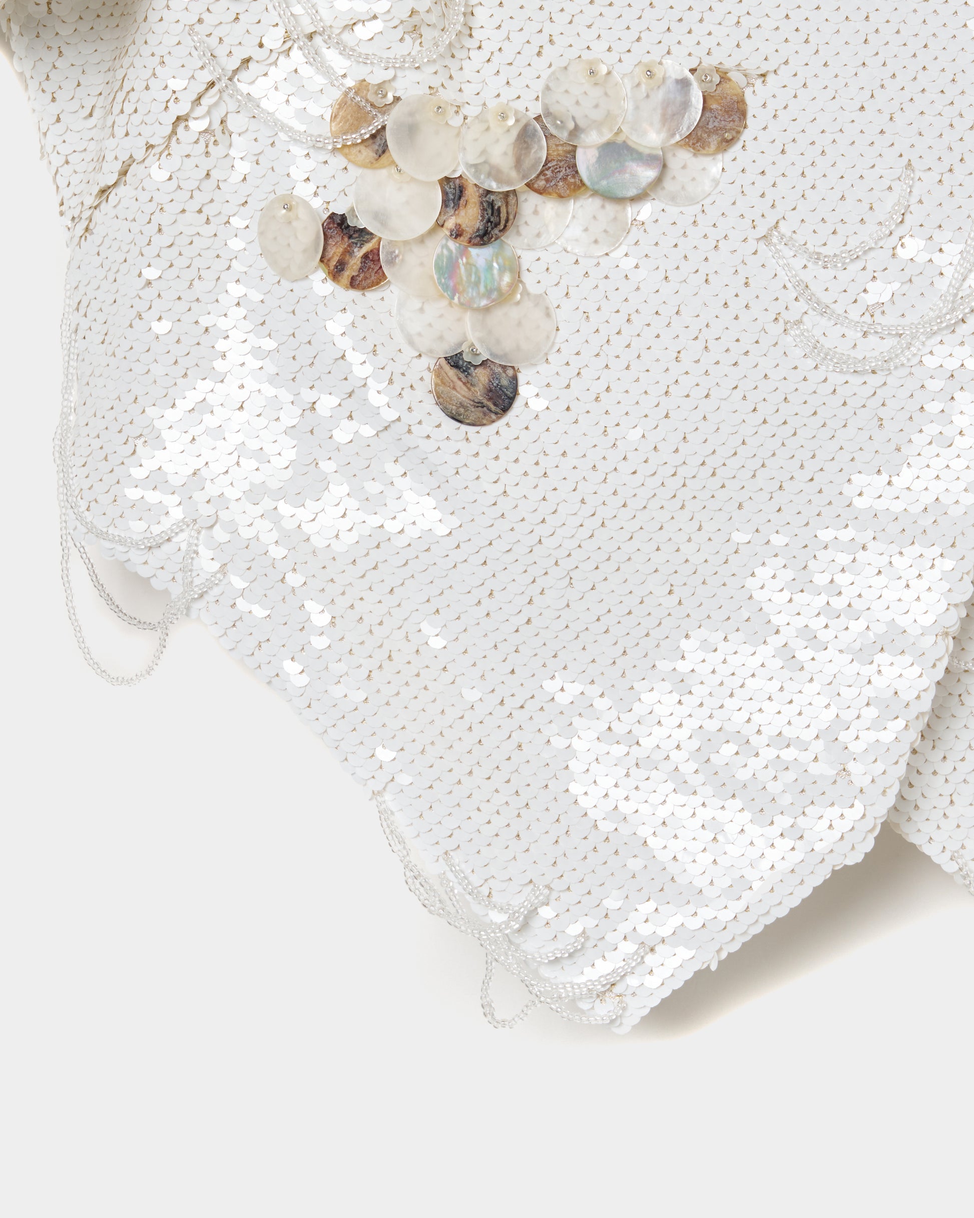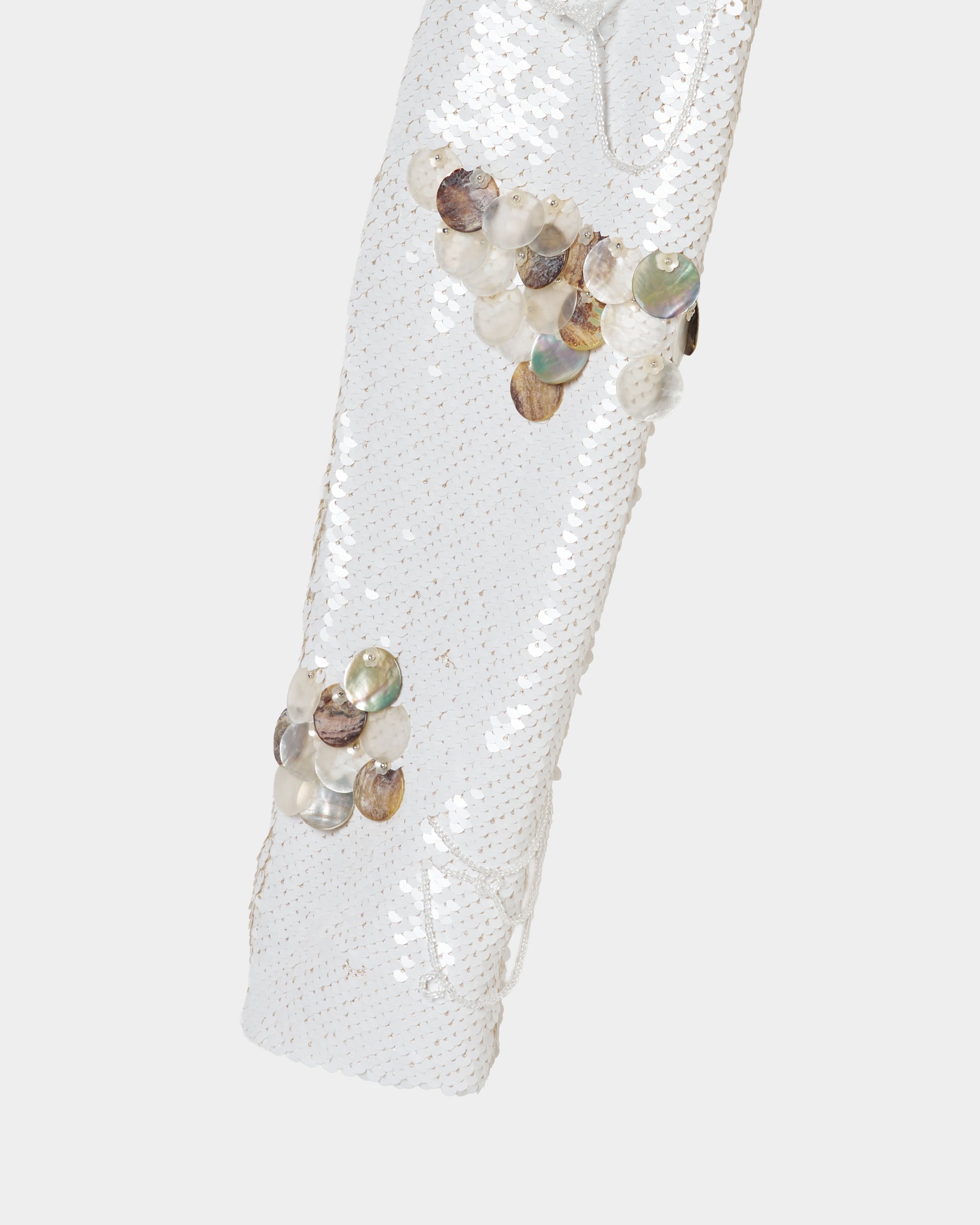 ・スパンコール生地から生える鱗のように散りばめたシェルビーズ。