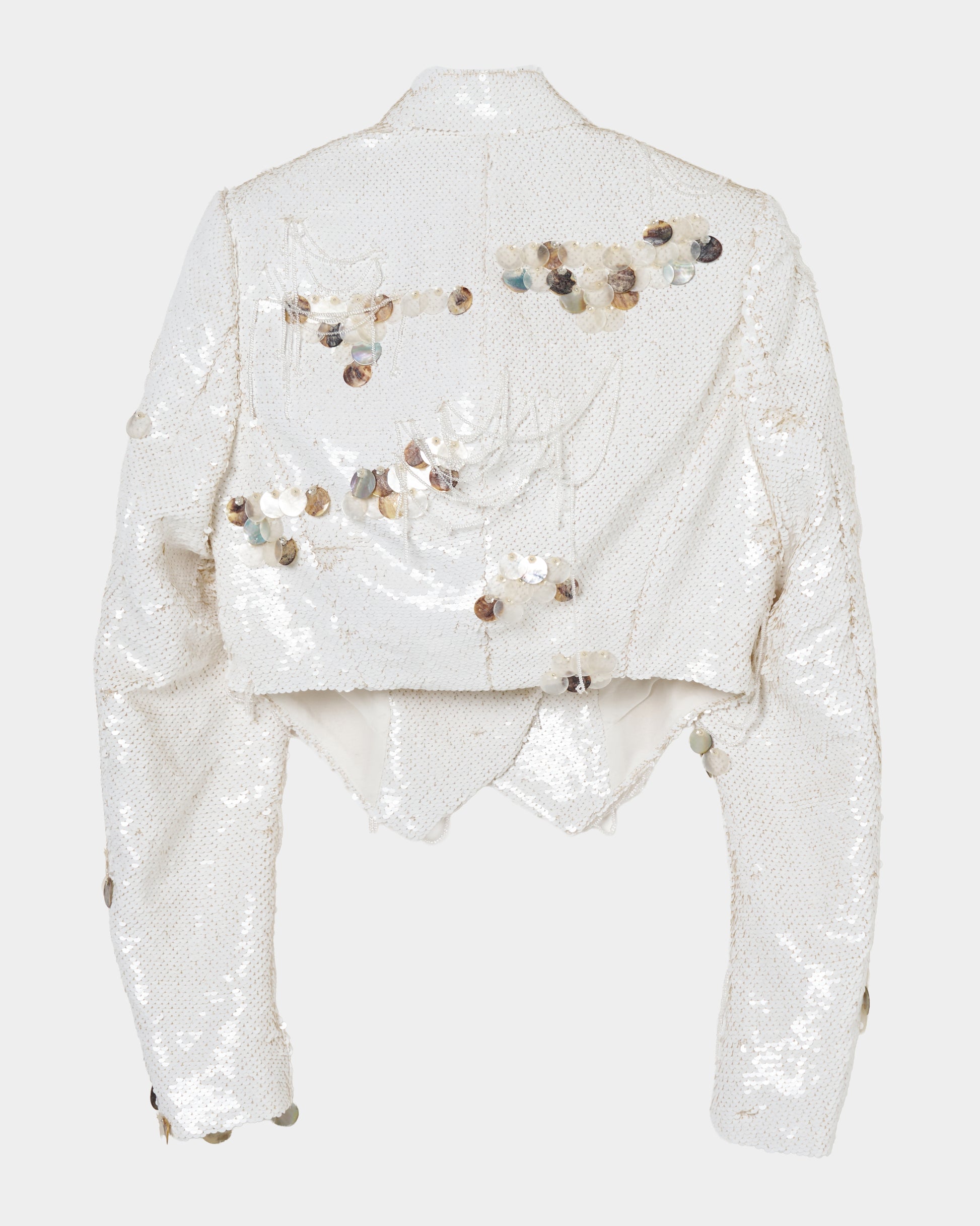 ・ビーズのフリンジも施し、謎の生物のような印象のショートジャケット。