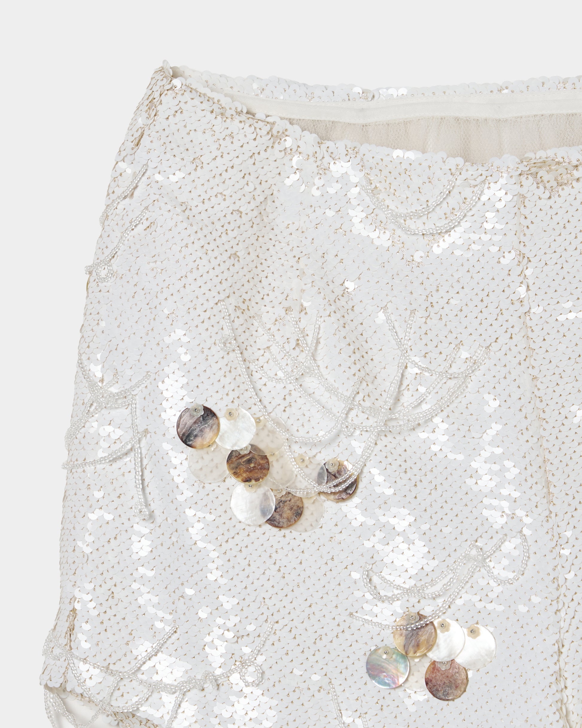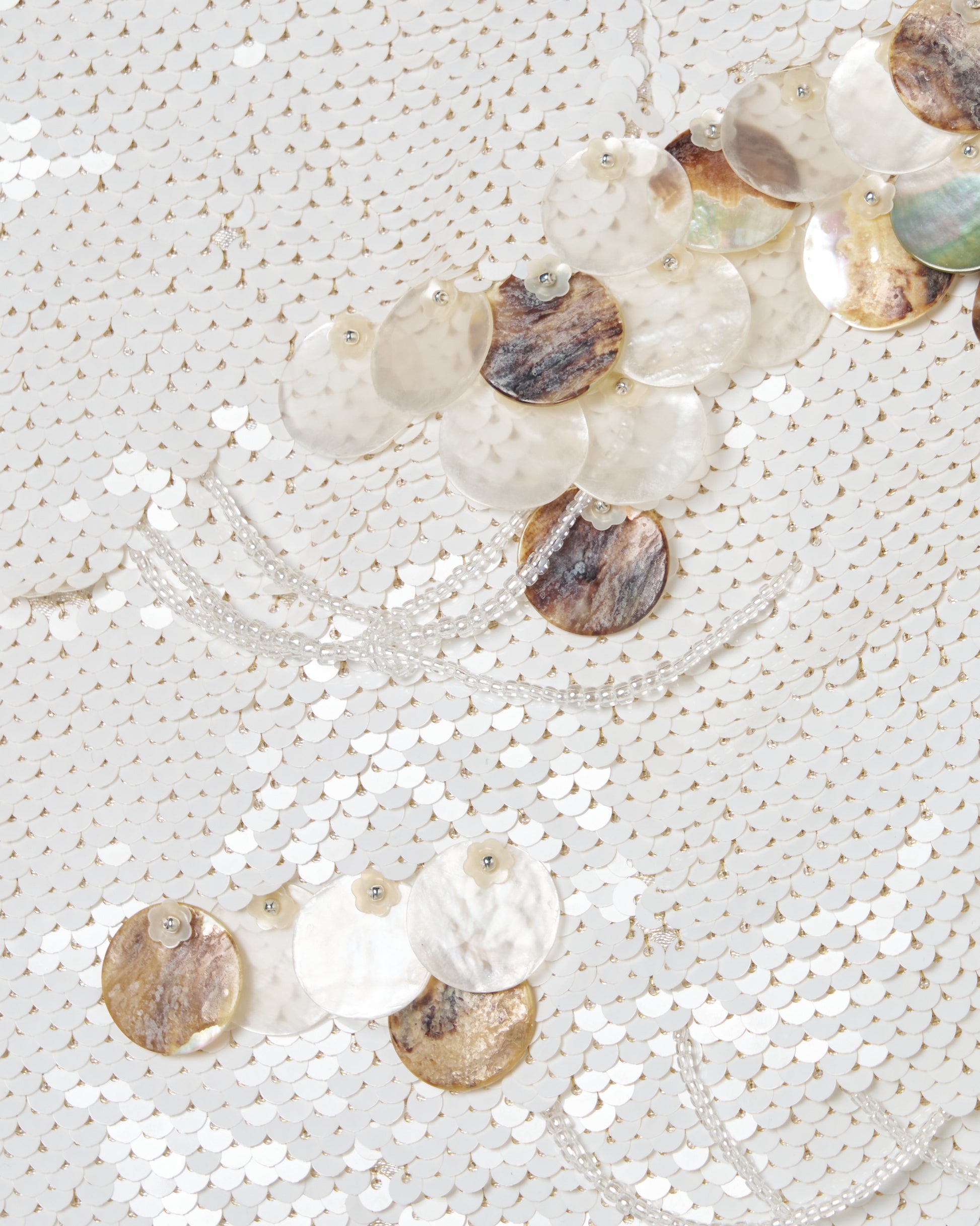 ・スパンコール生地から生える鱗のように散りばめたシェルビーズ。