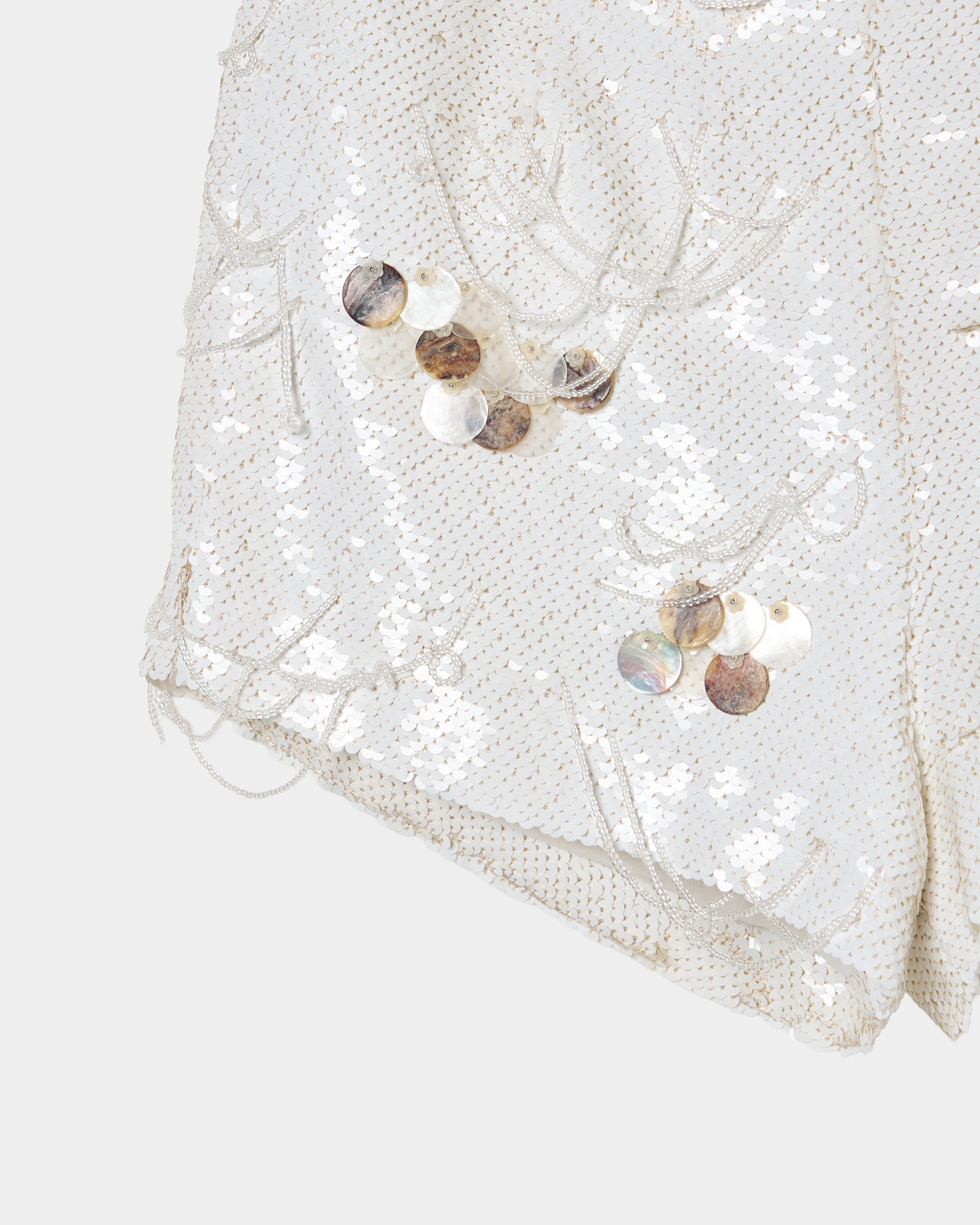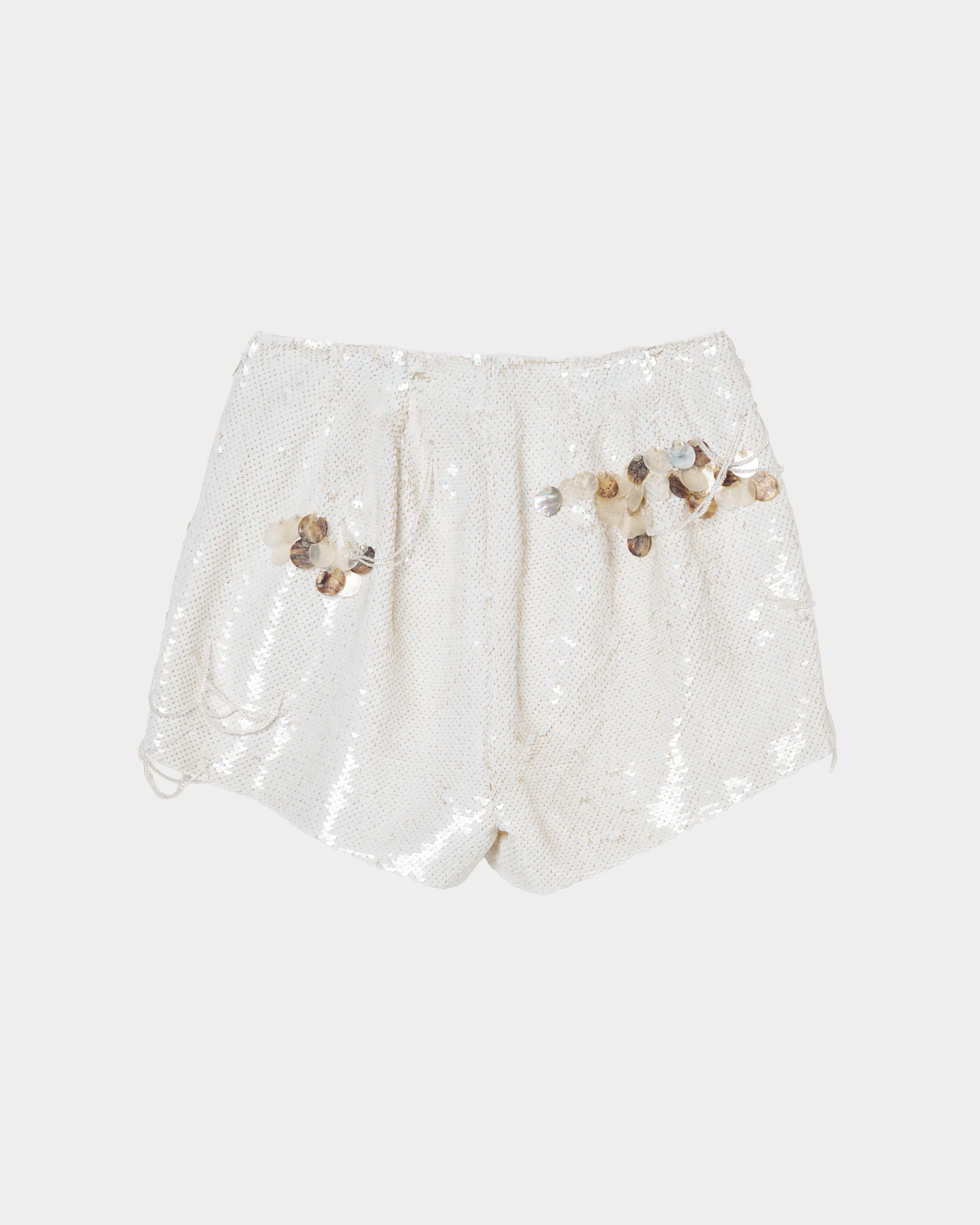 ・ビーズのフリンジも施し、謎の生物のような印象のショートパンツ。
