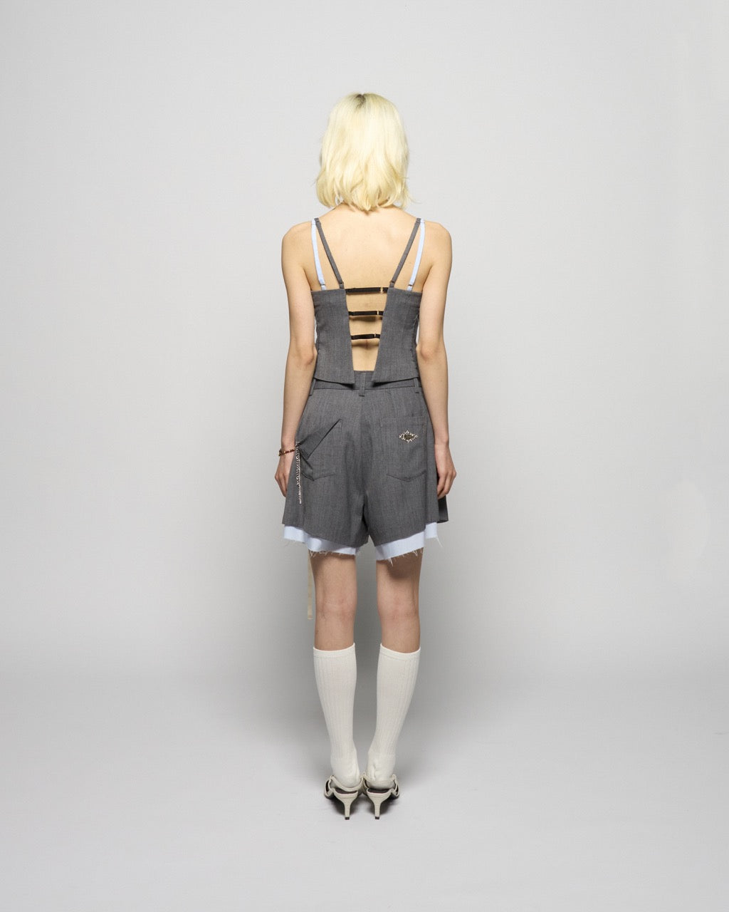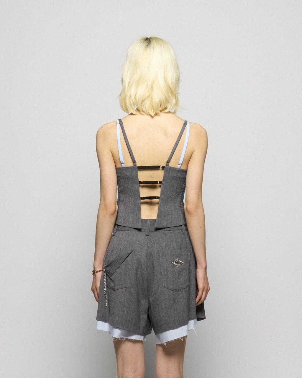 seam frayed bustier tops Gray【Delivery in February 2026】