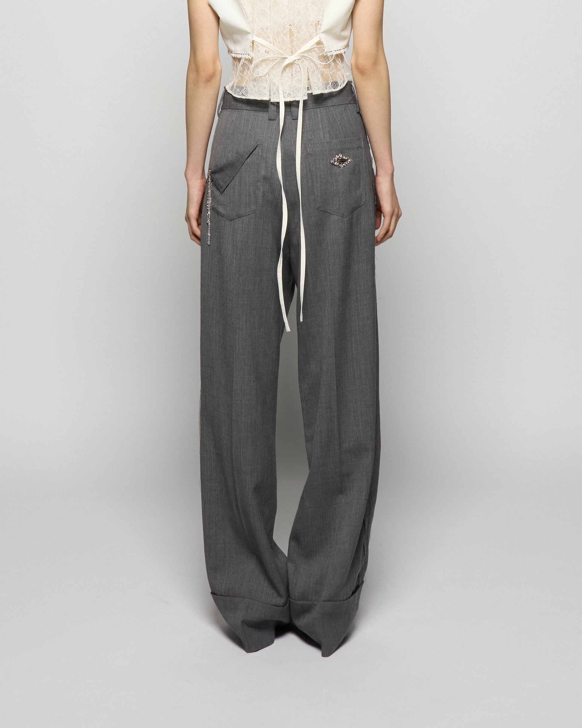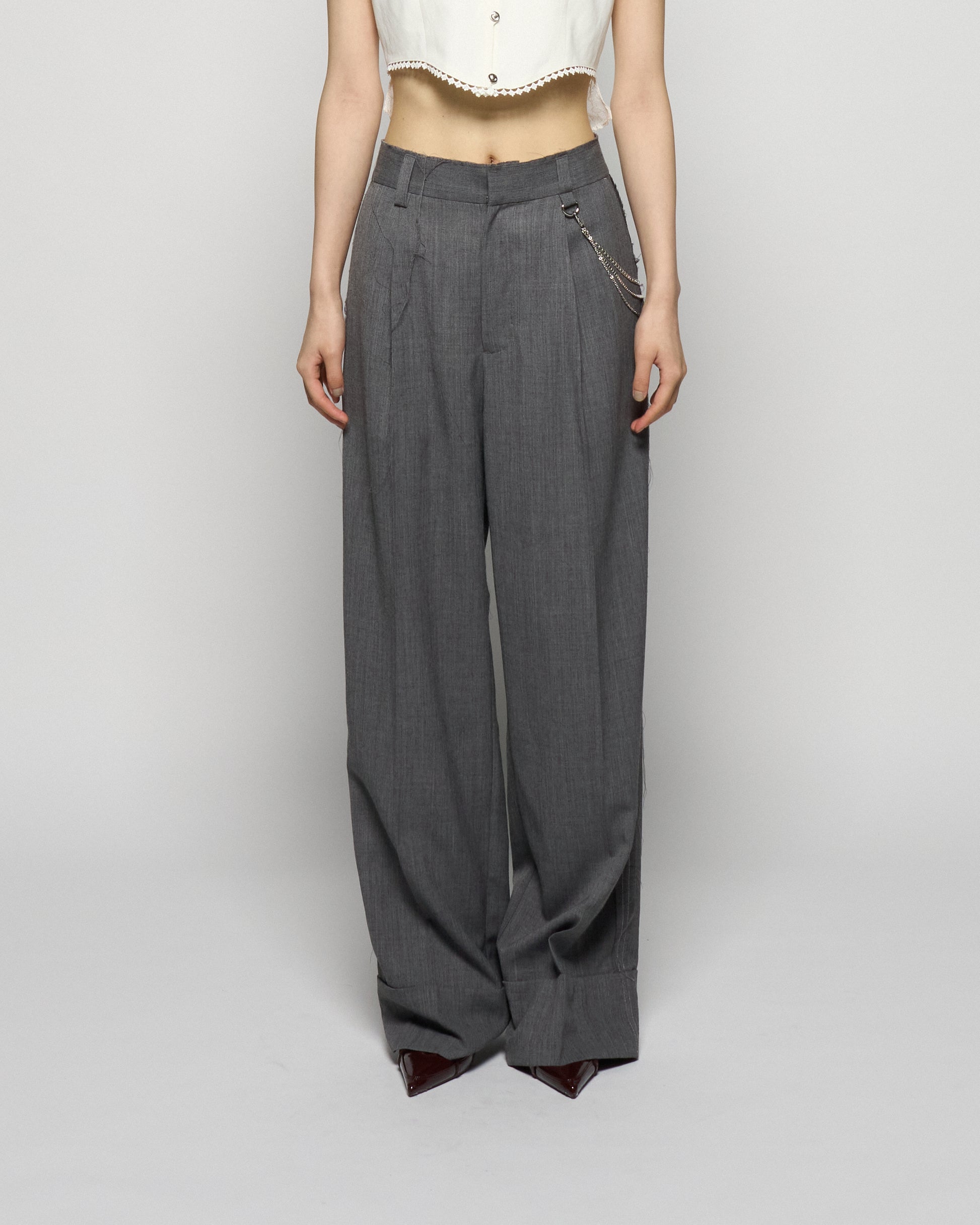 seam frayed dropped chain pants Gray【Delivery in February 2026】