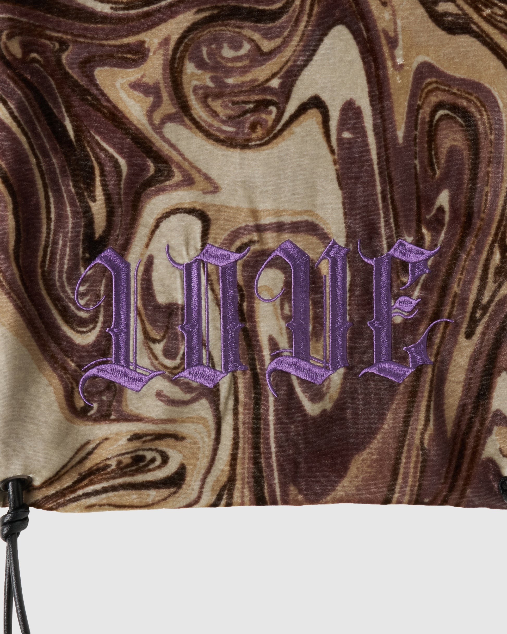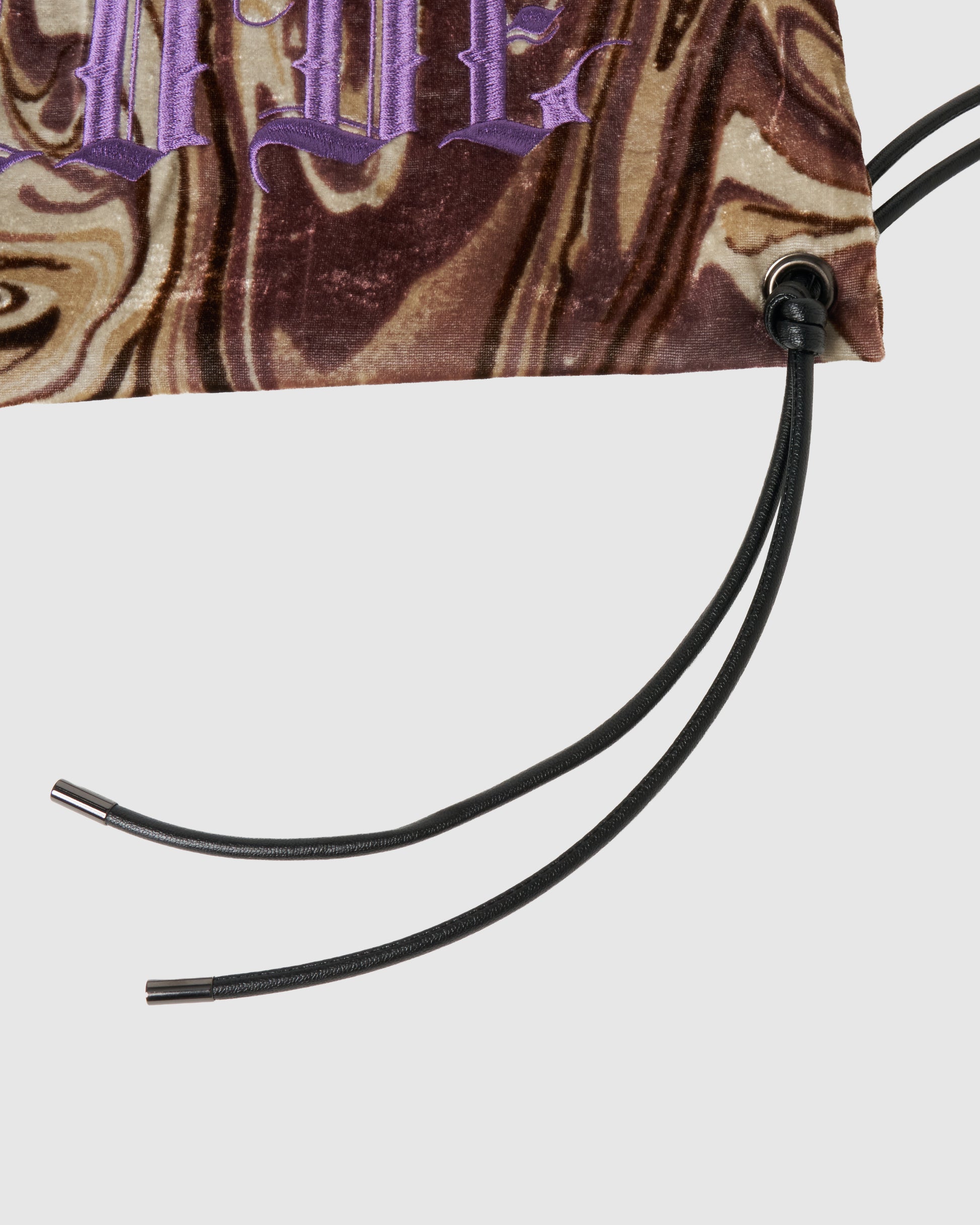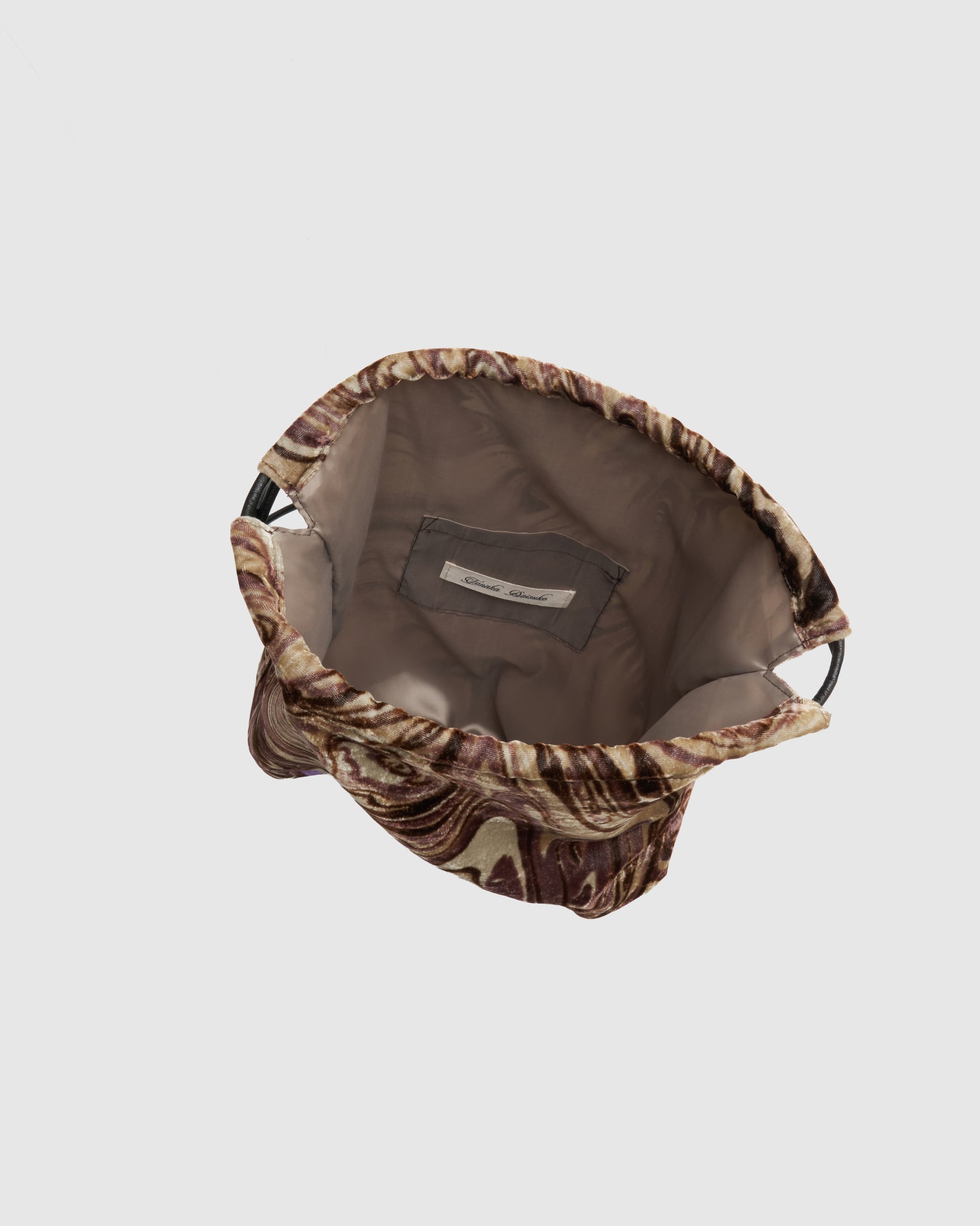 ・職人によるハンドプリントのベルベット生地をナップザックに。日常に取り入れやすいアイテムに落とし込みました。
