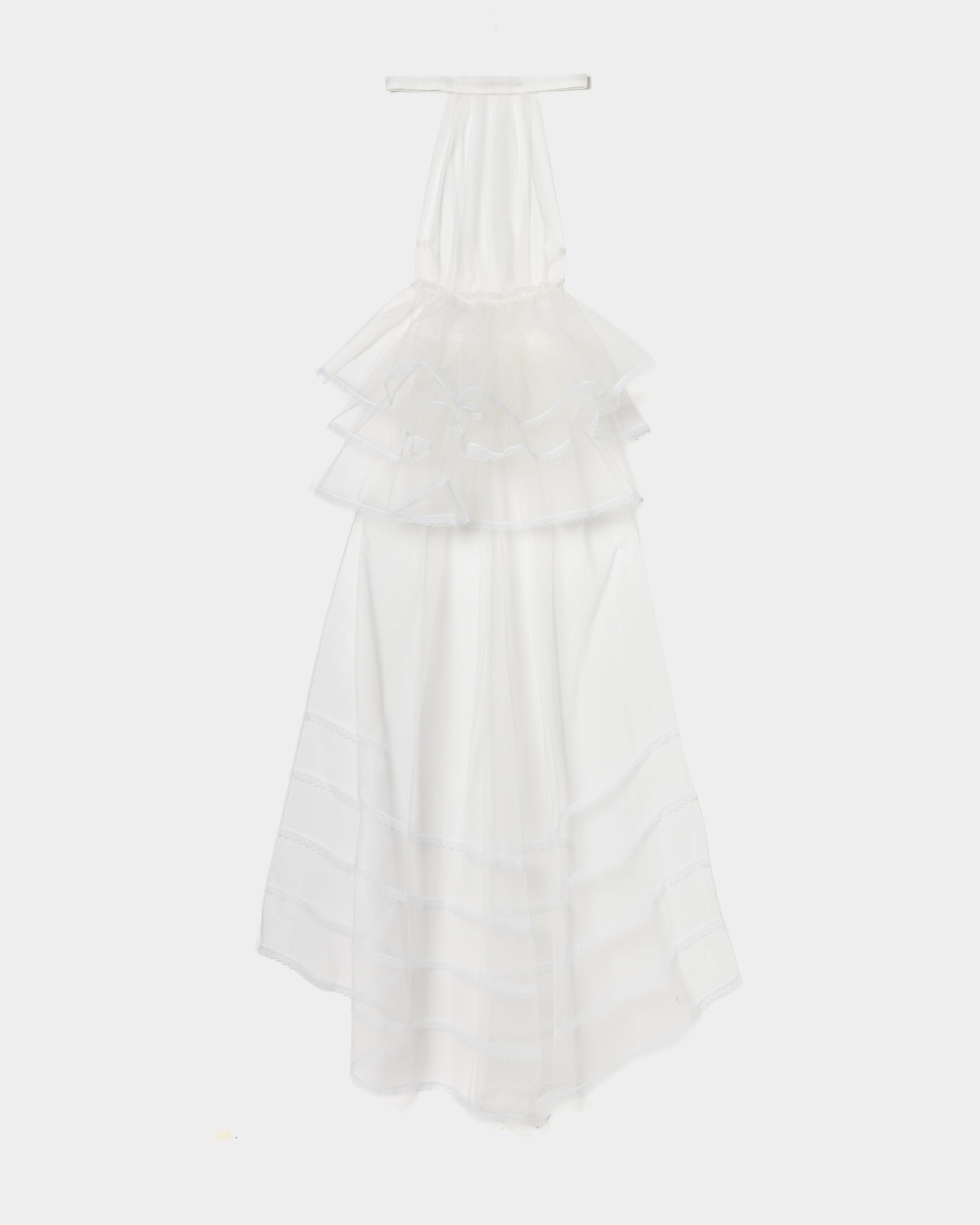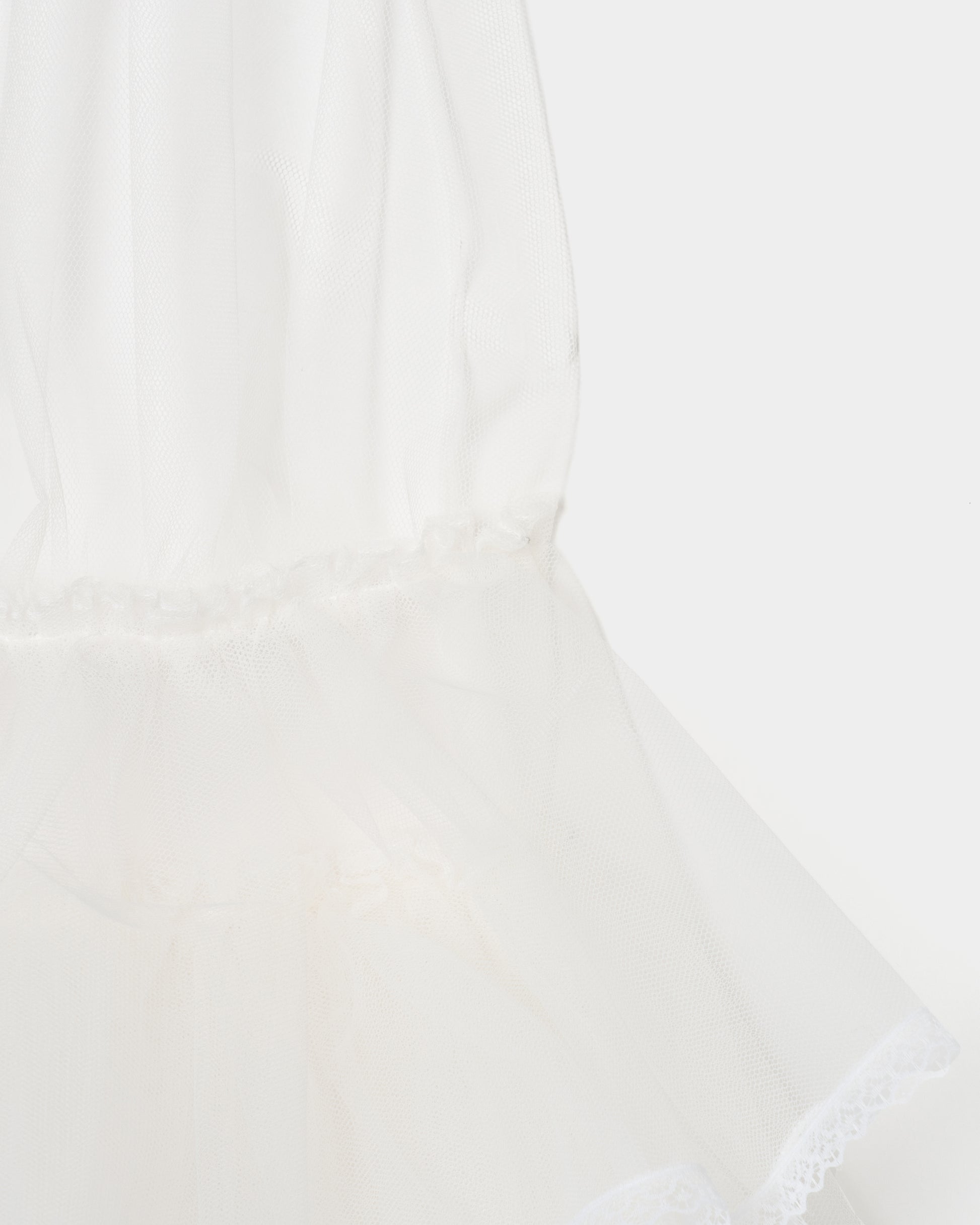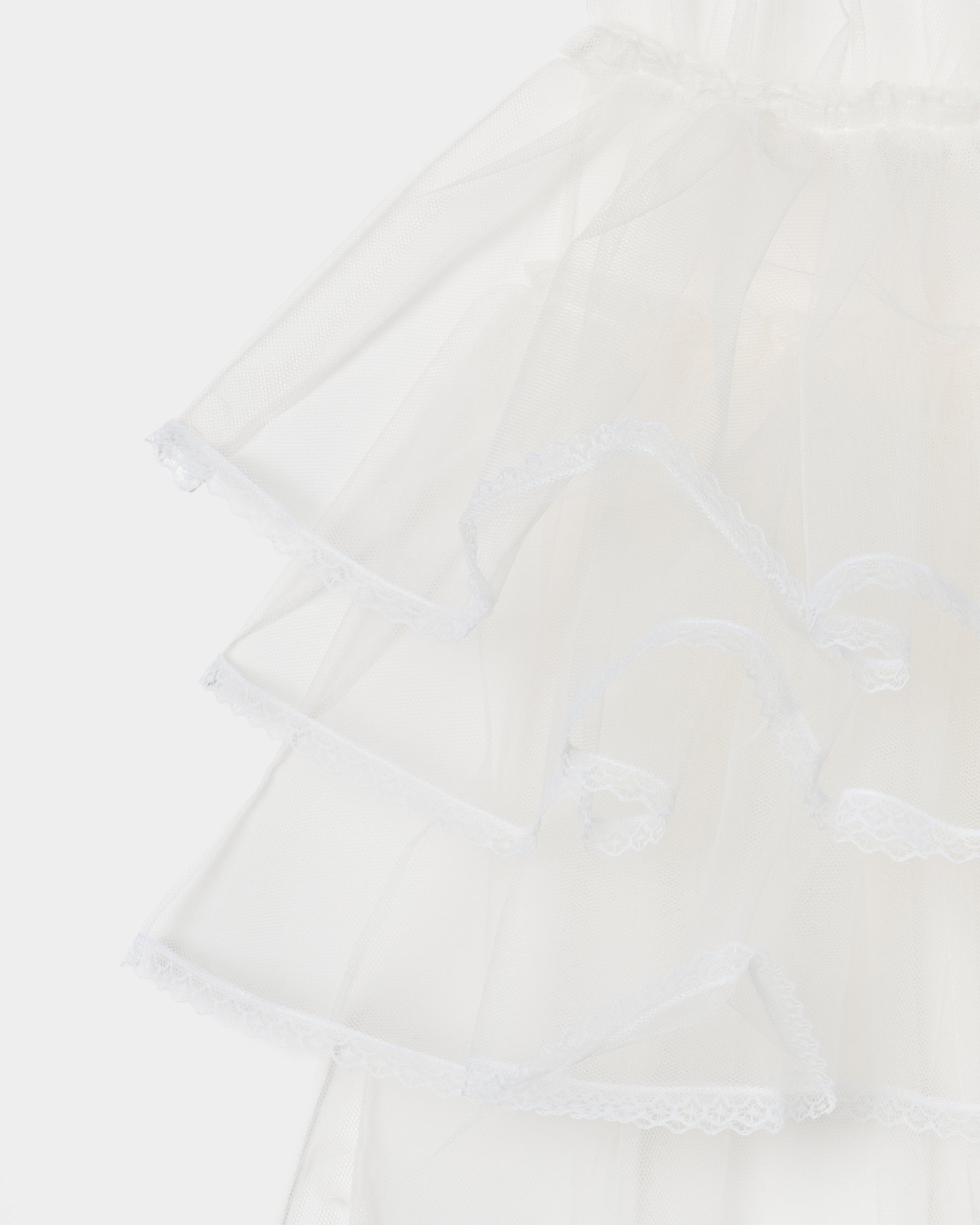 ・後に長く伸びるトレーンを模したチュールのベルトスカートです。
