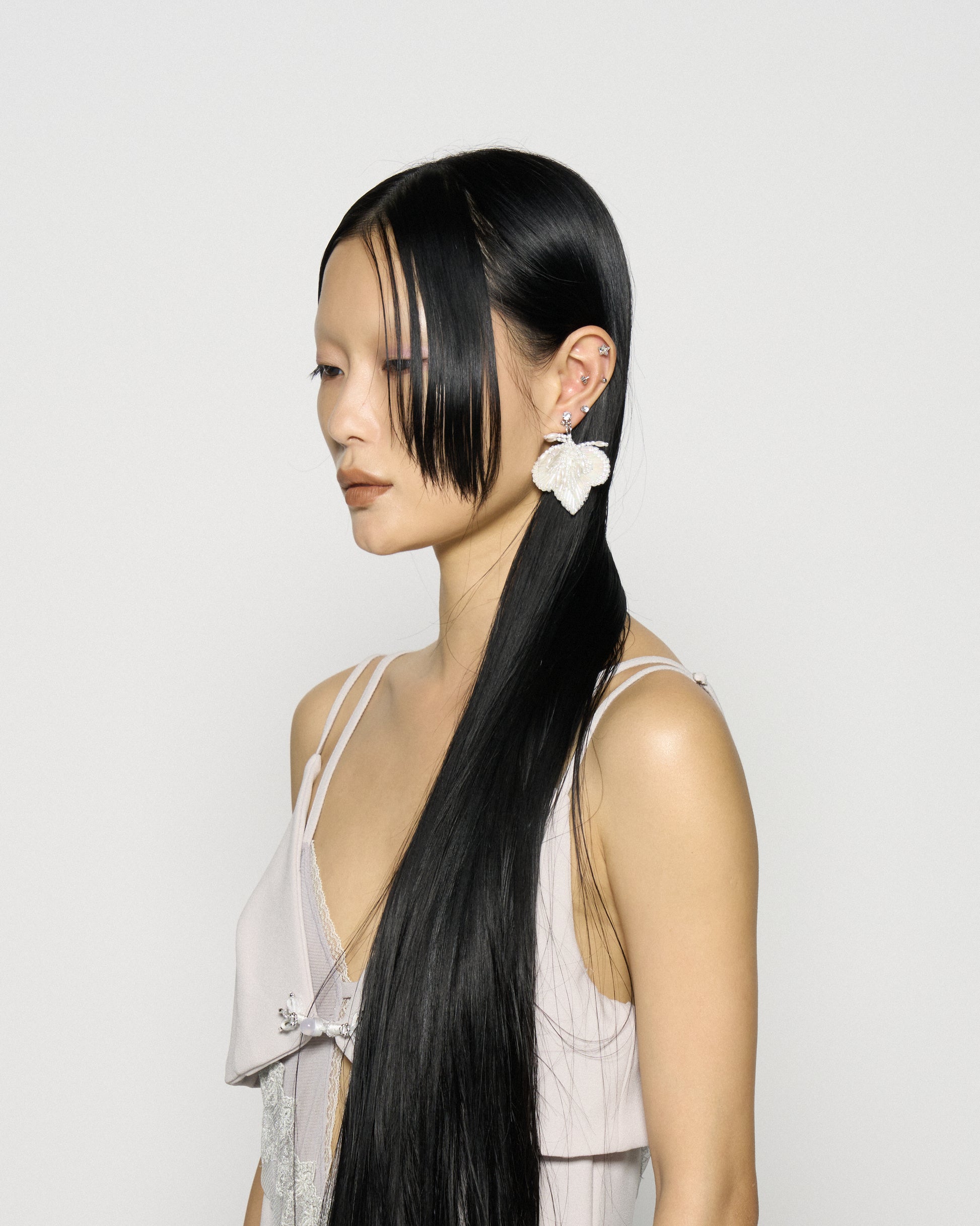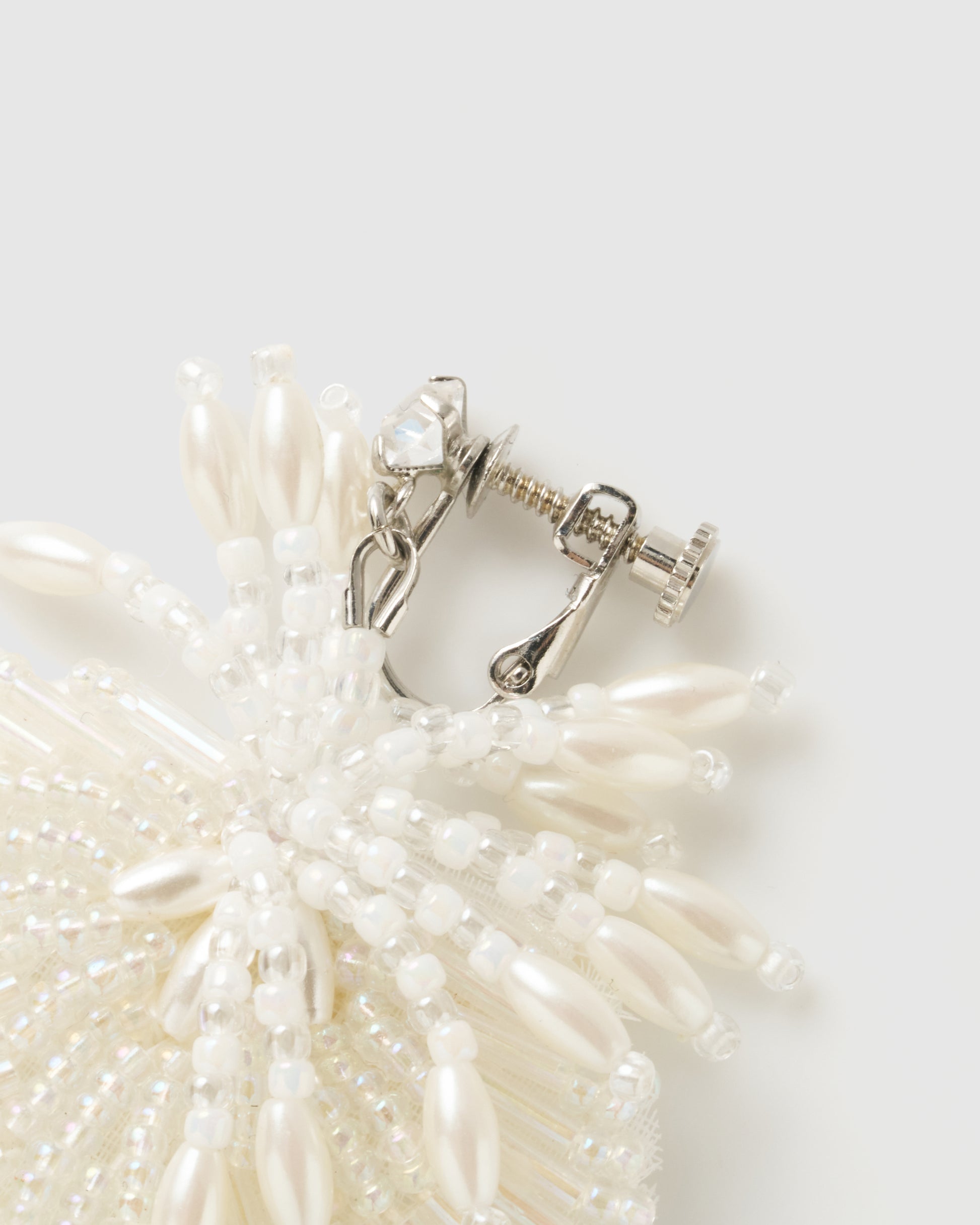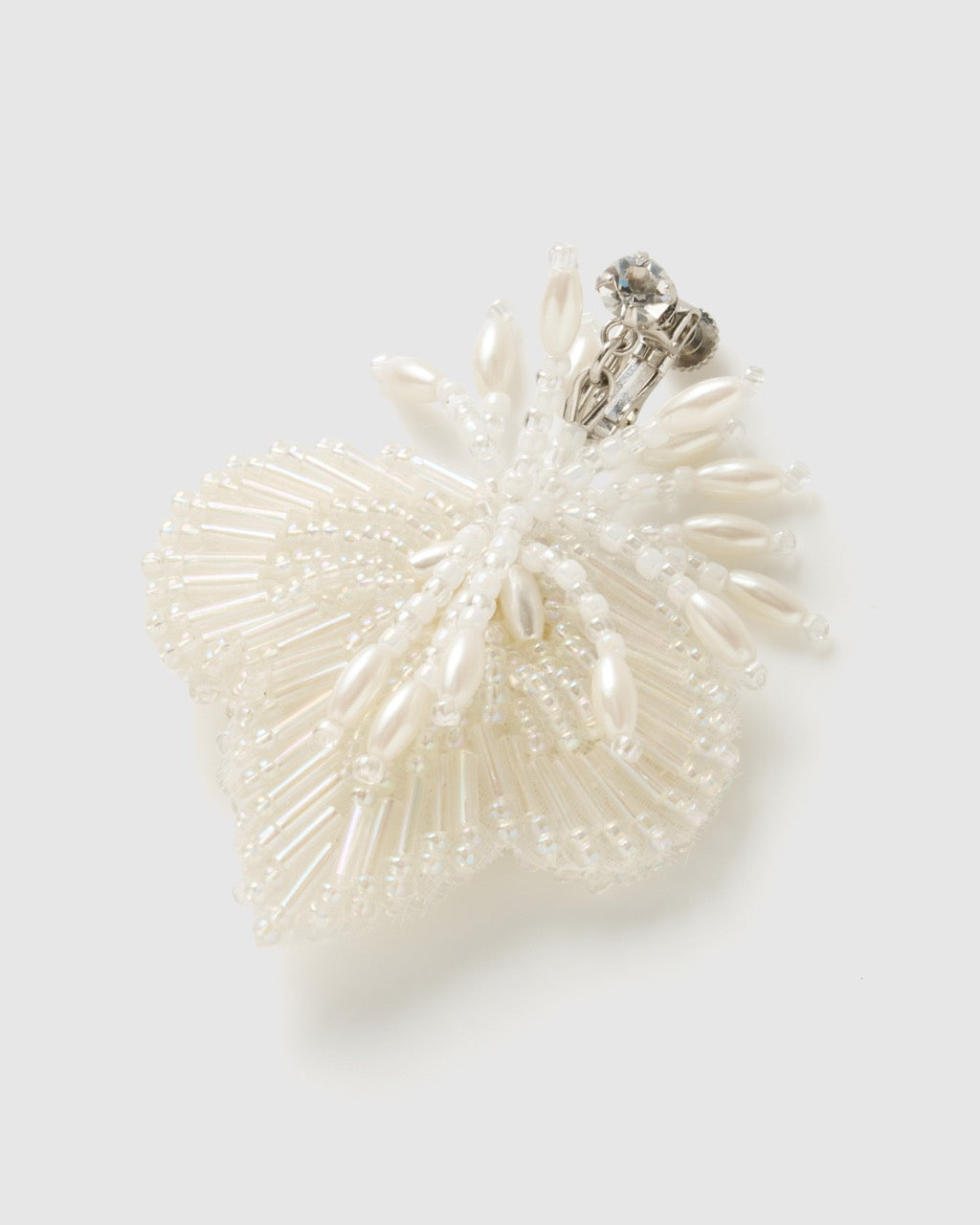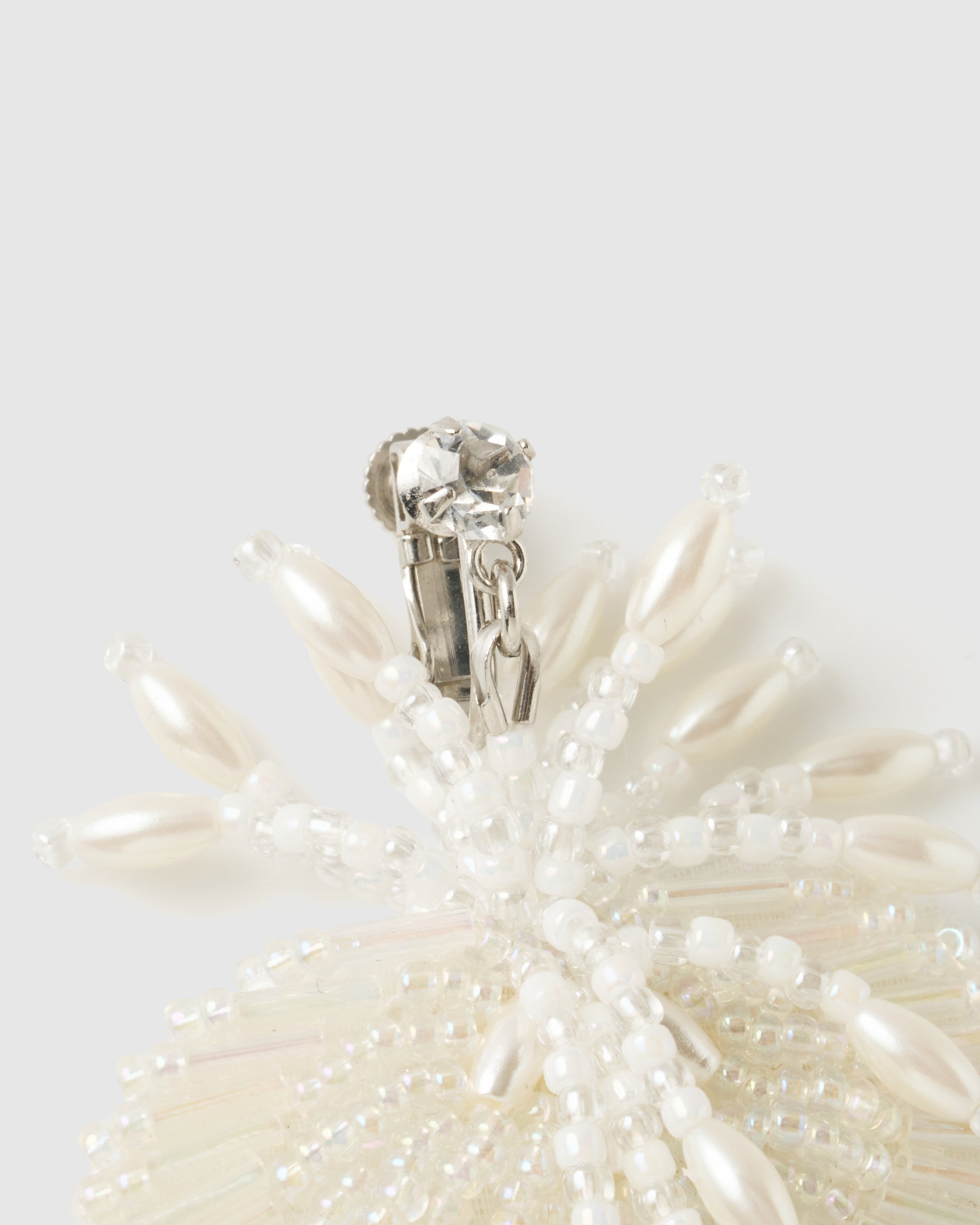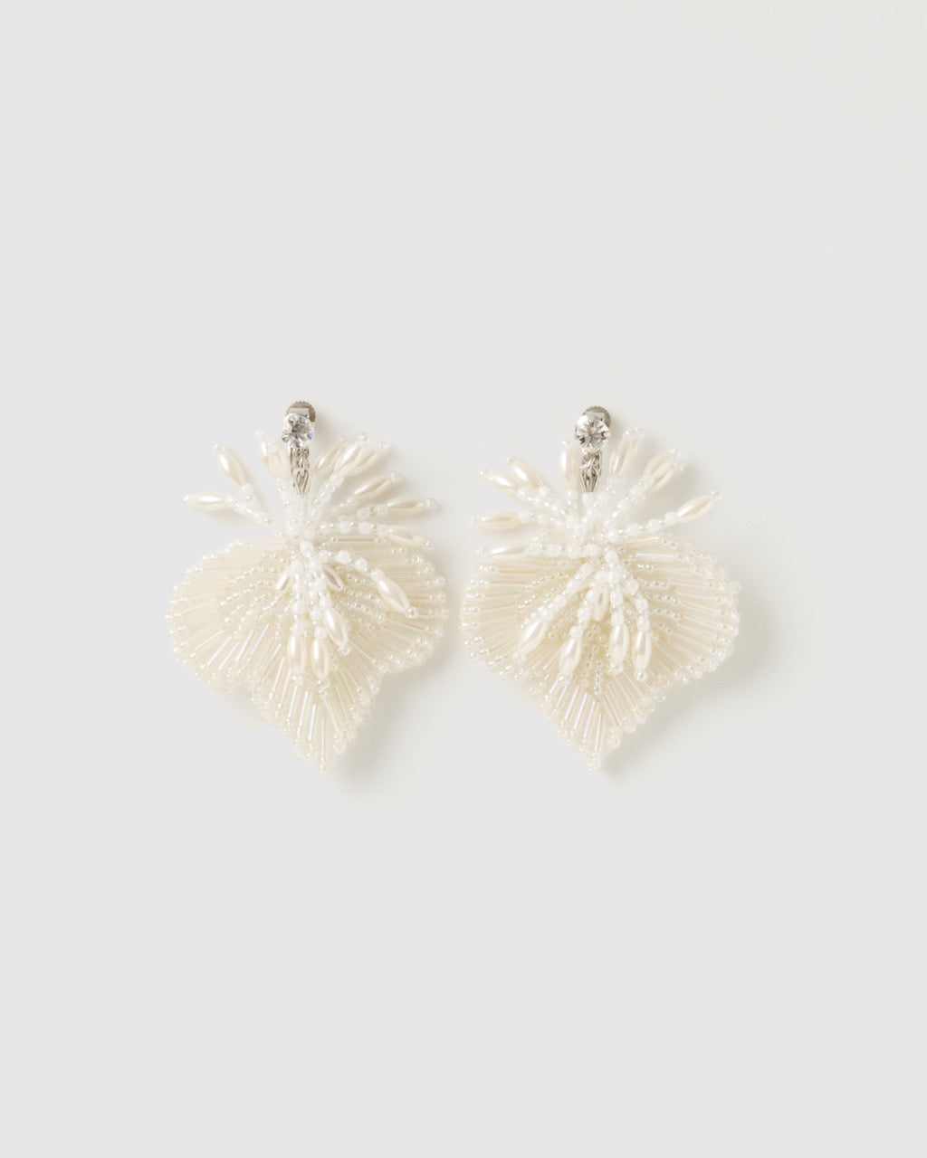 ・クローバー型のビーズモチーフを組み合わせ、立体的なビジュー刺繍を施したイヤリング。