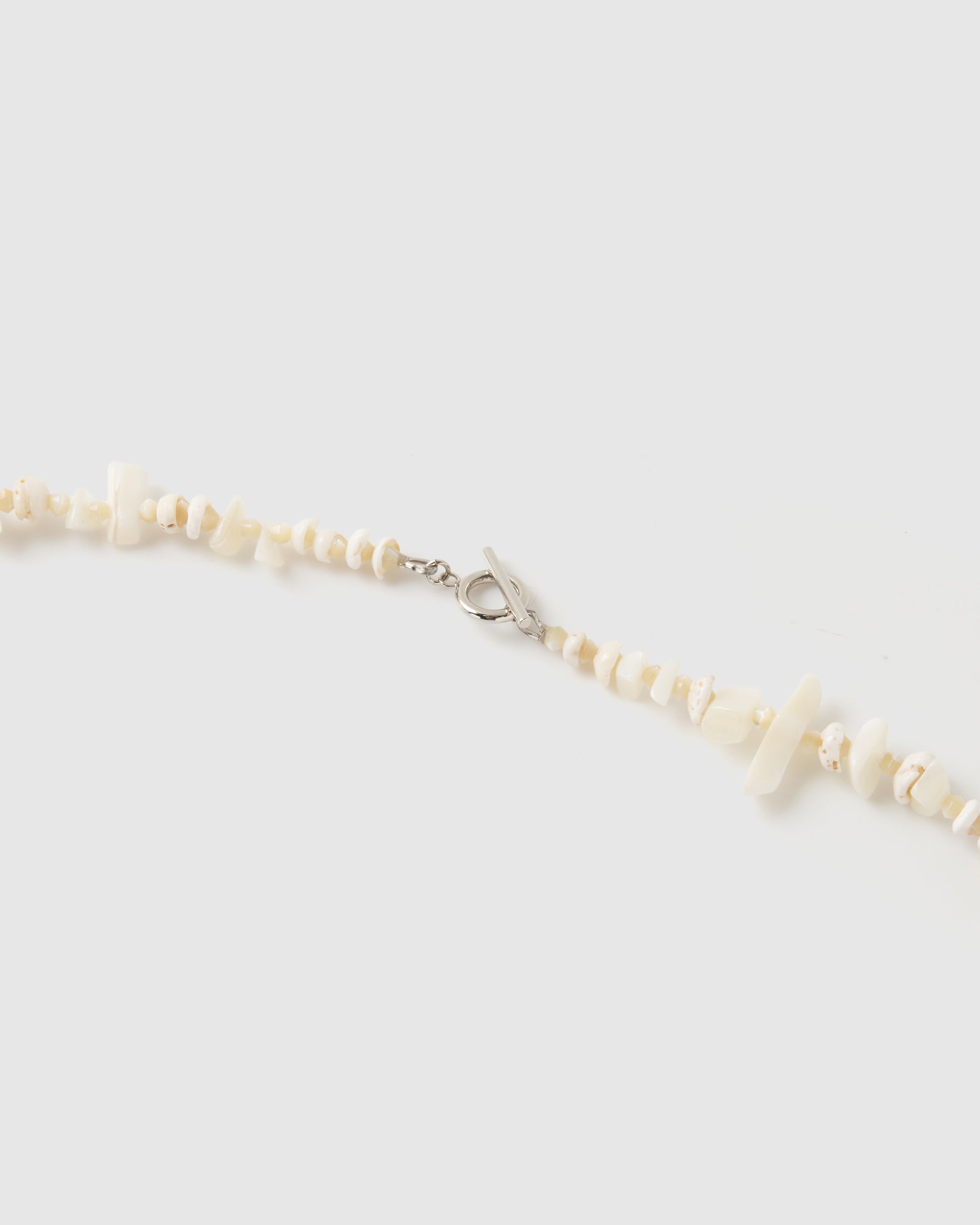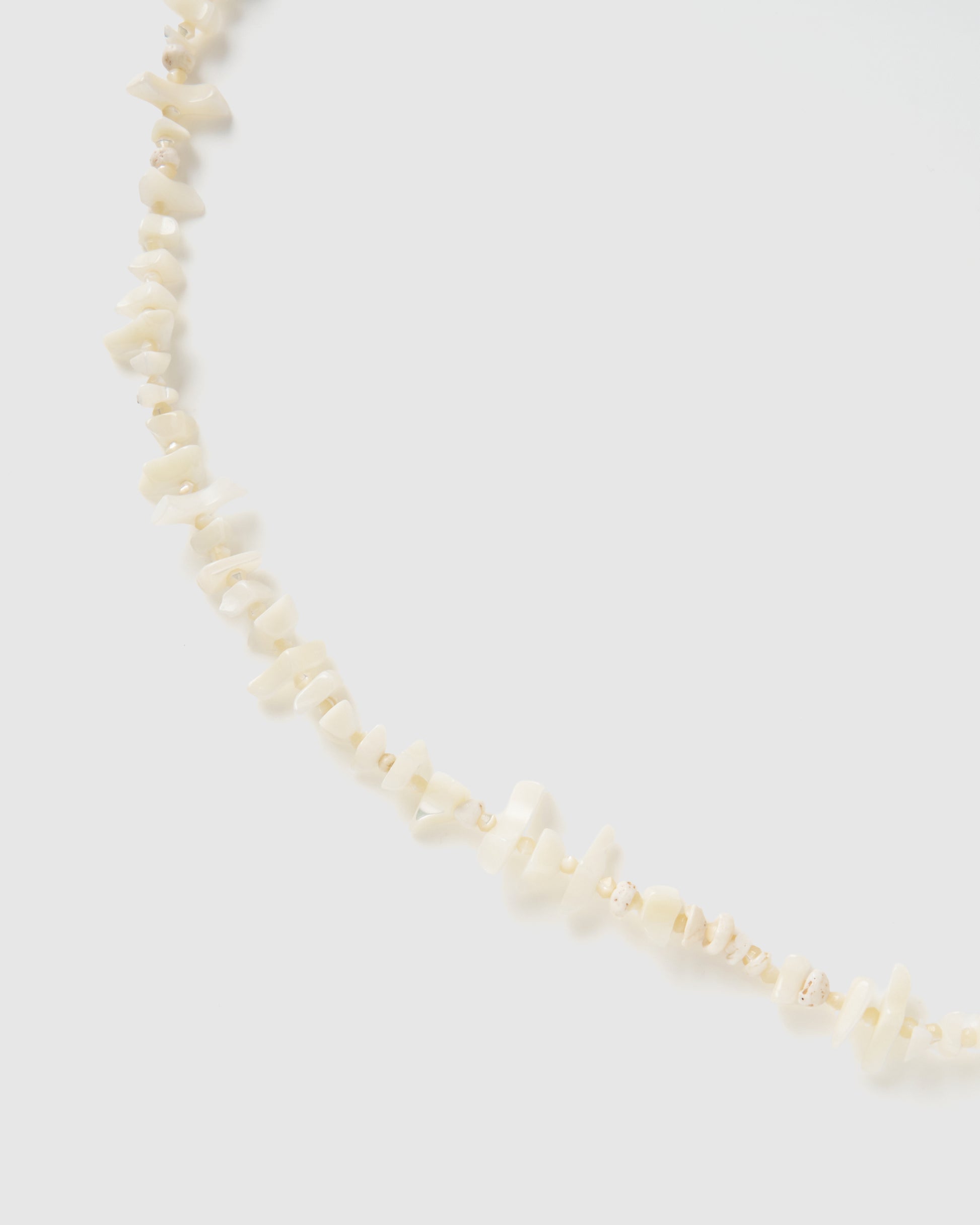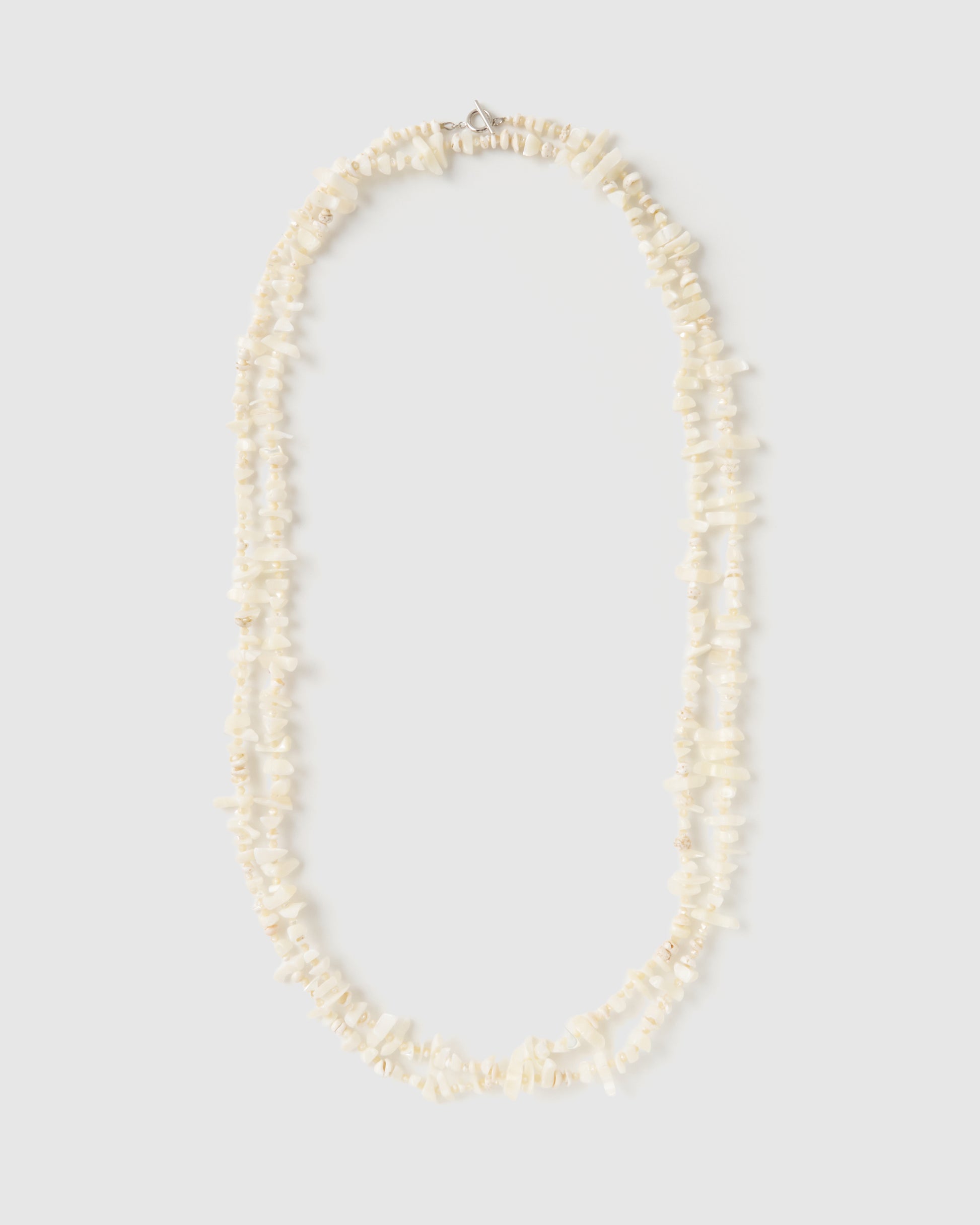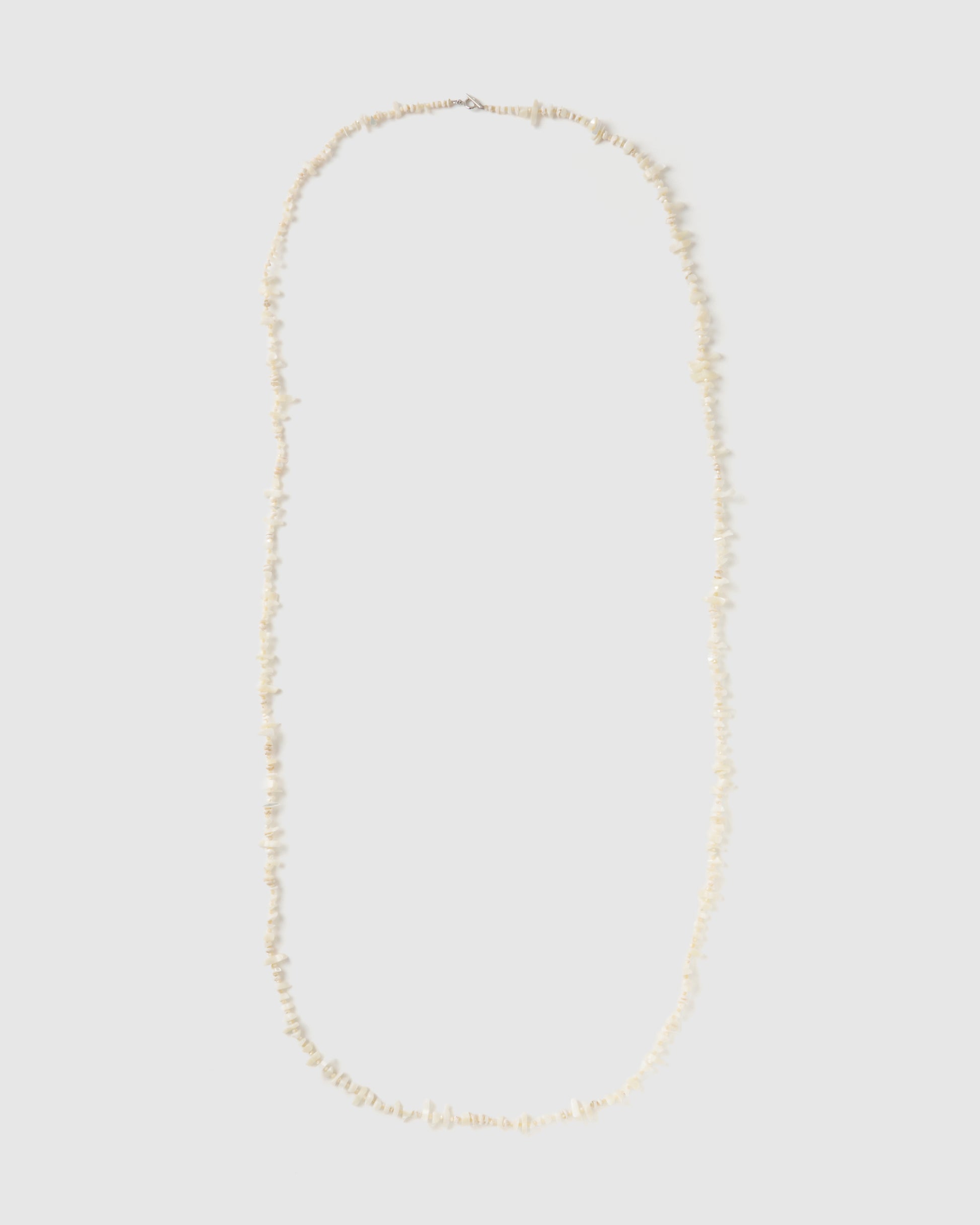 ・ホワイトの貝や珊瑚を連ねたロングネックレス。