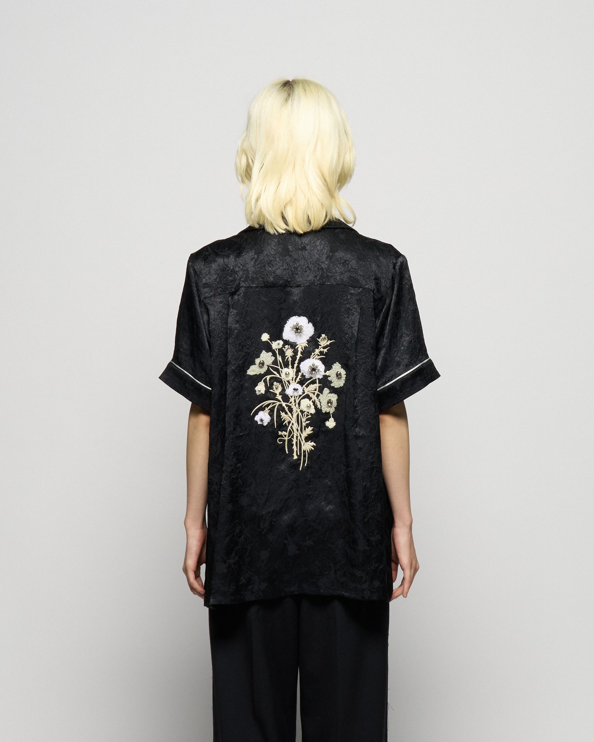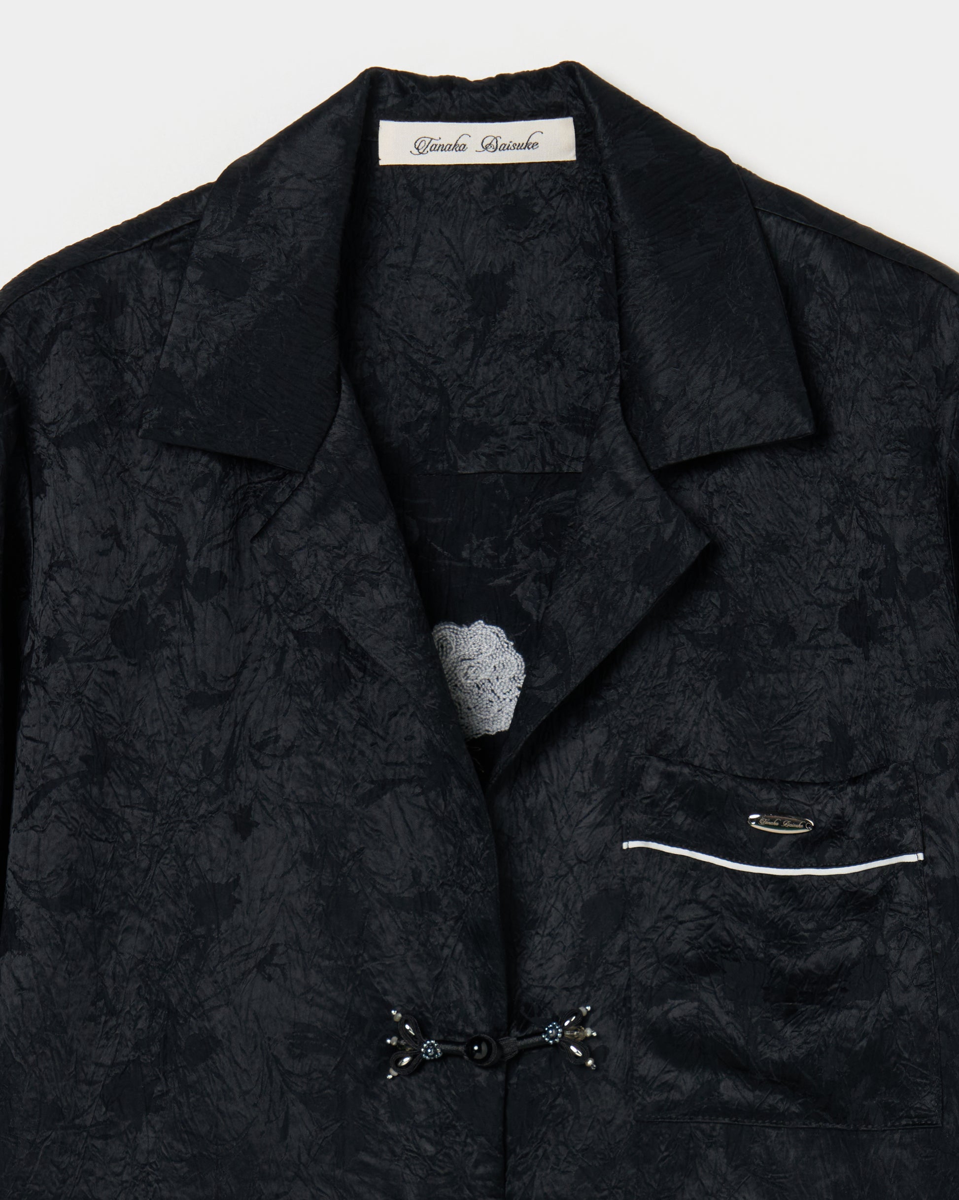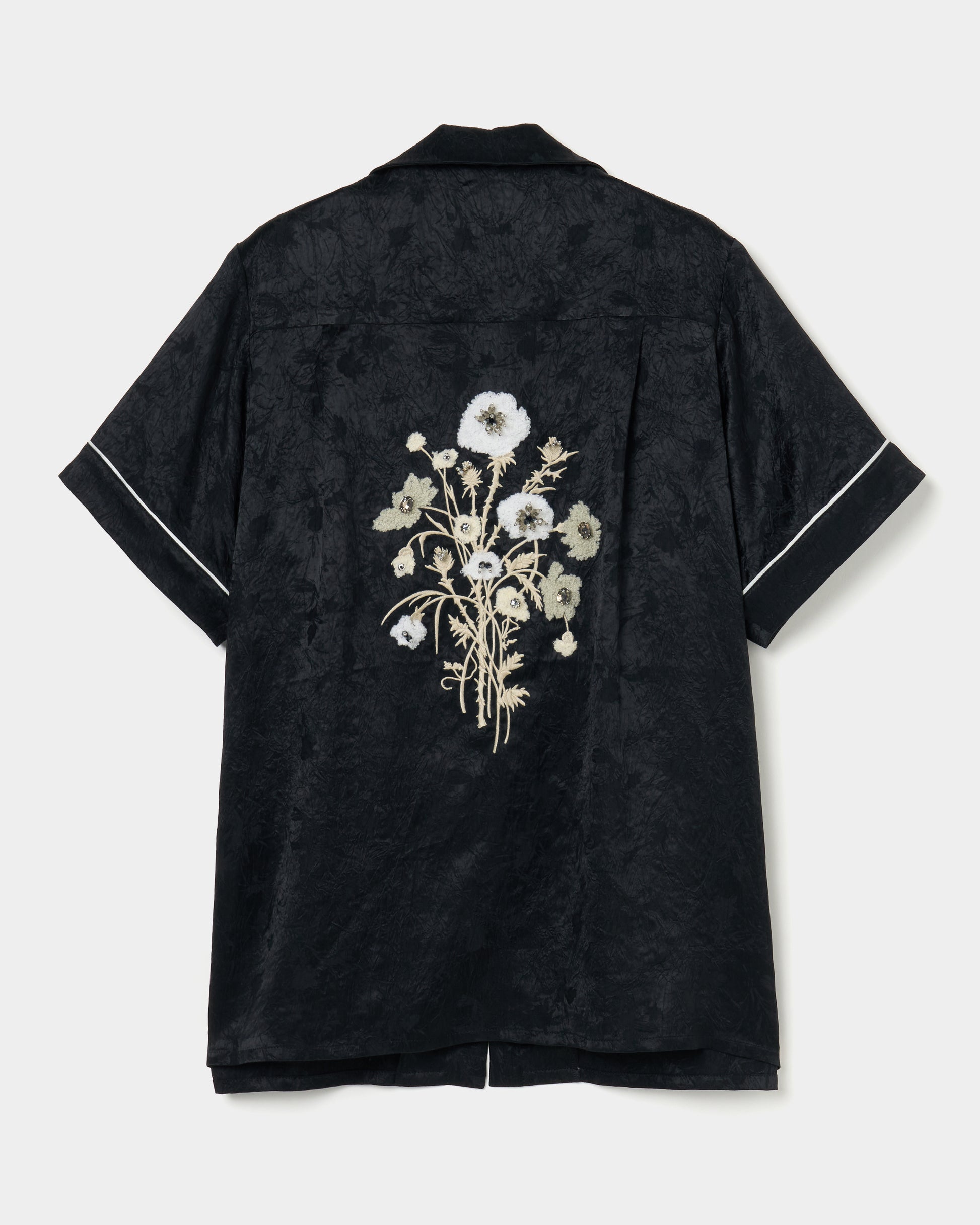 Wild bloom beads embroidery open collar shirt Black【Delivery in March 2026】
